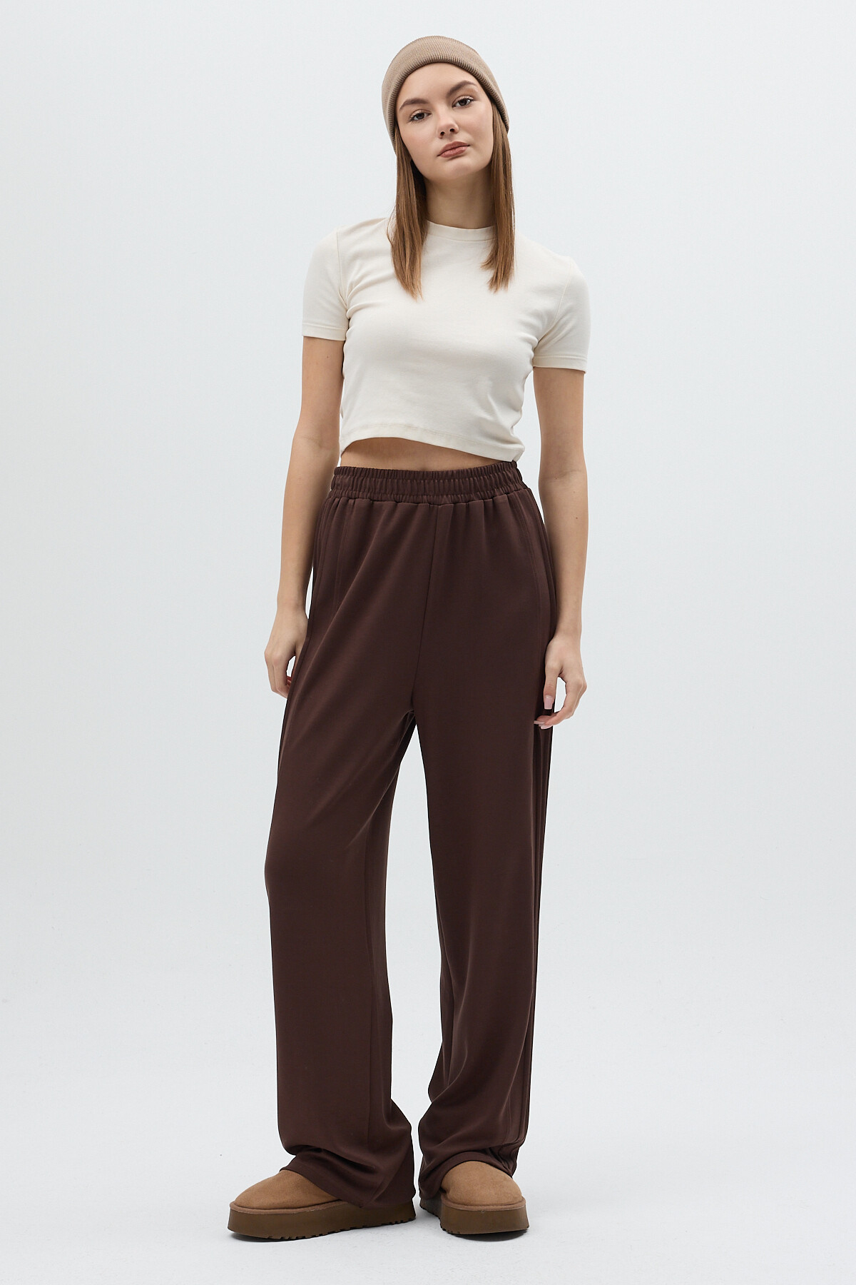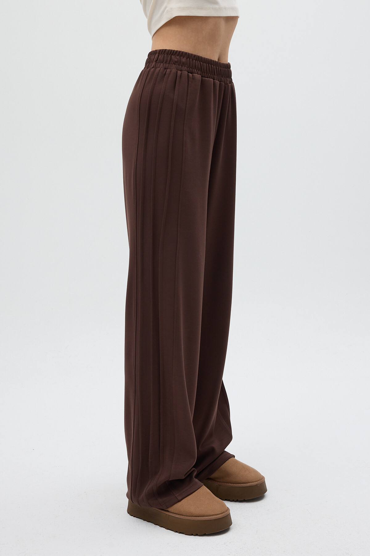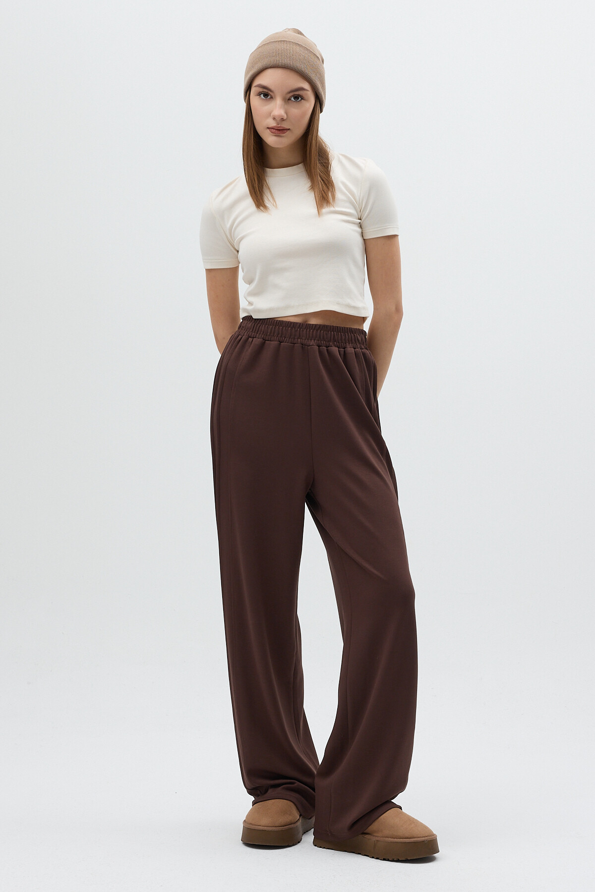 Kahverengi Yan Çimalı Dikiş Detaylı Yüksek Bel Kadın Eşofman Altı 8296A