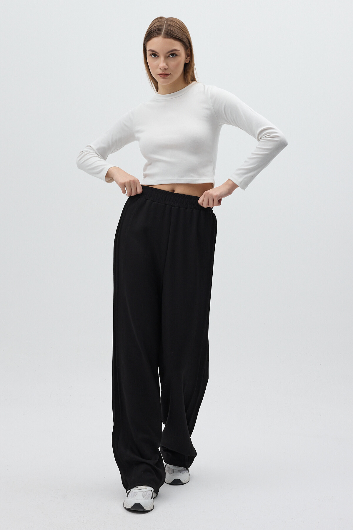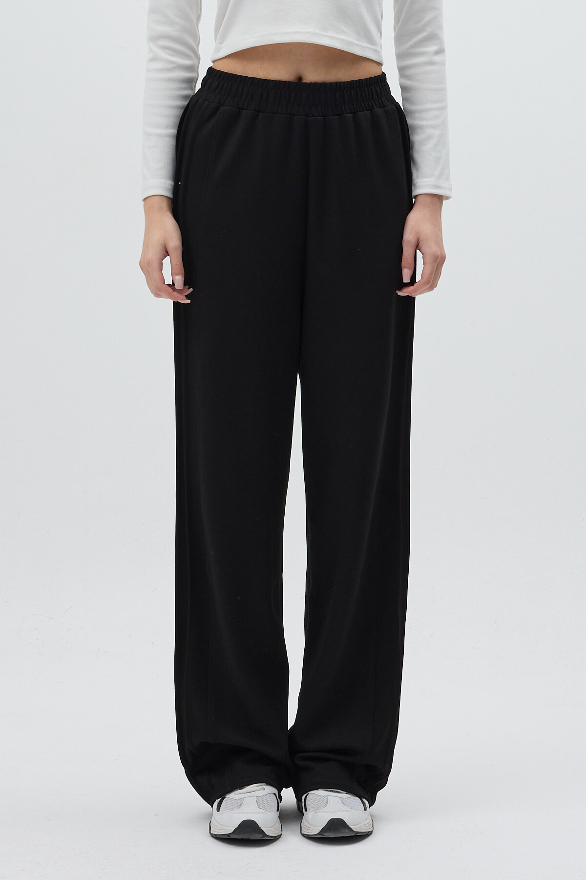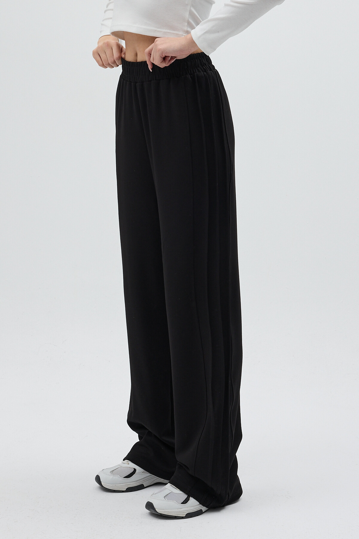 Siyah Yan Çimalı Dikiş Detaylı Yüksek Bel Kadın Eşofman Altı 8296A