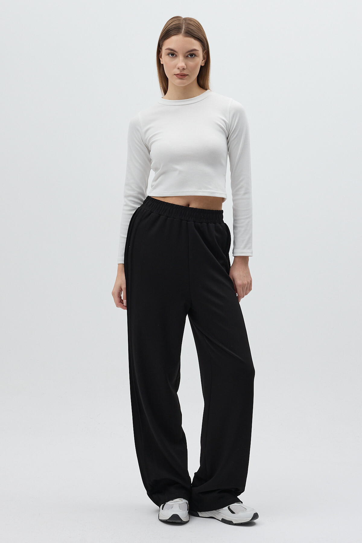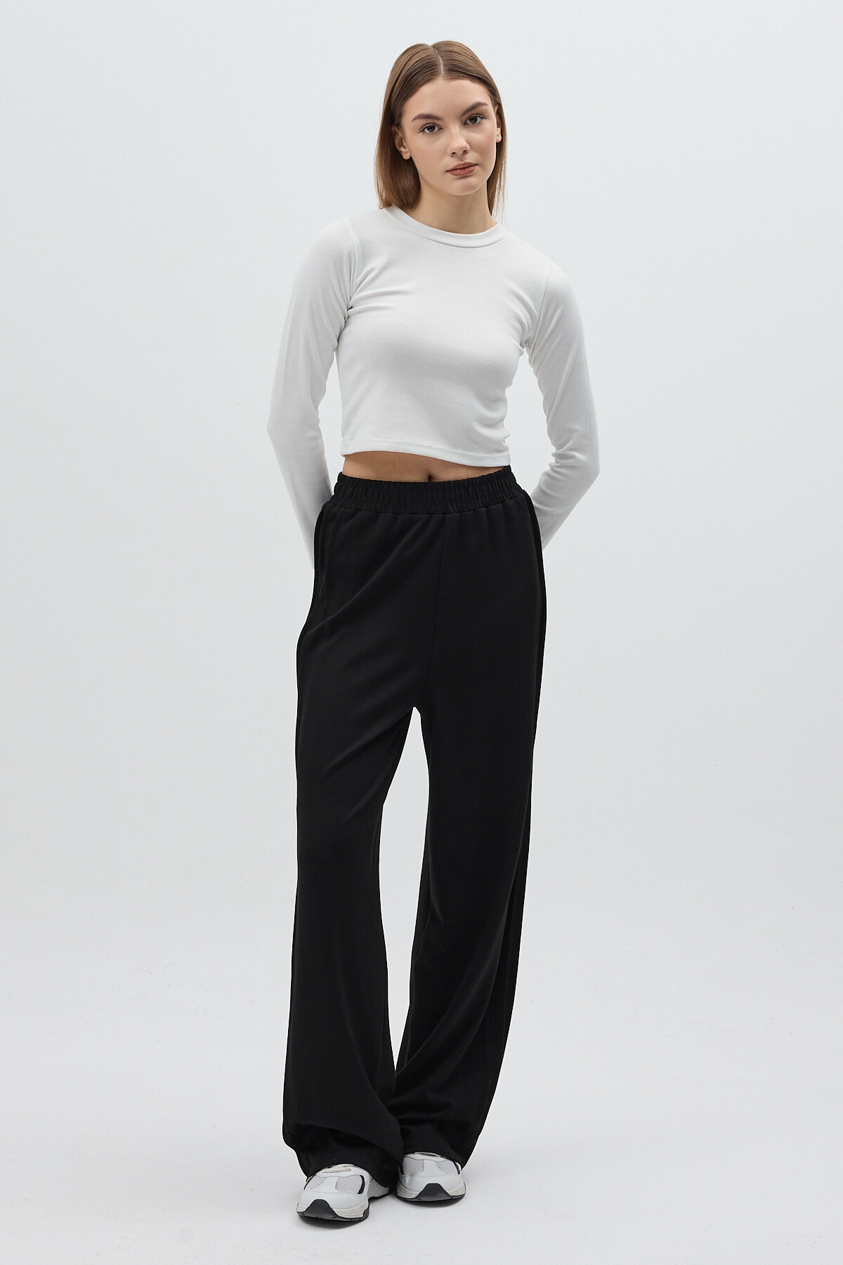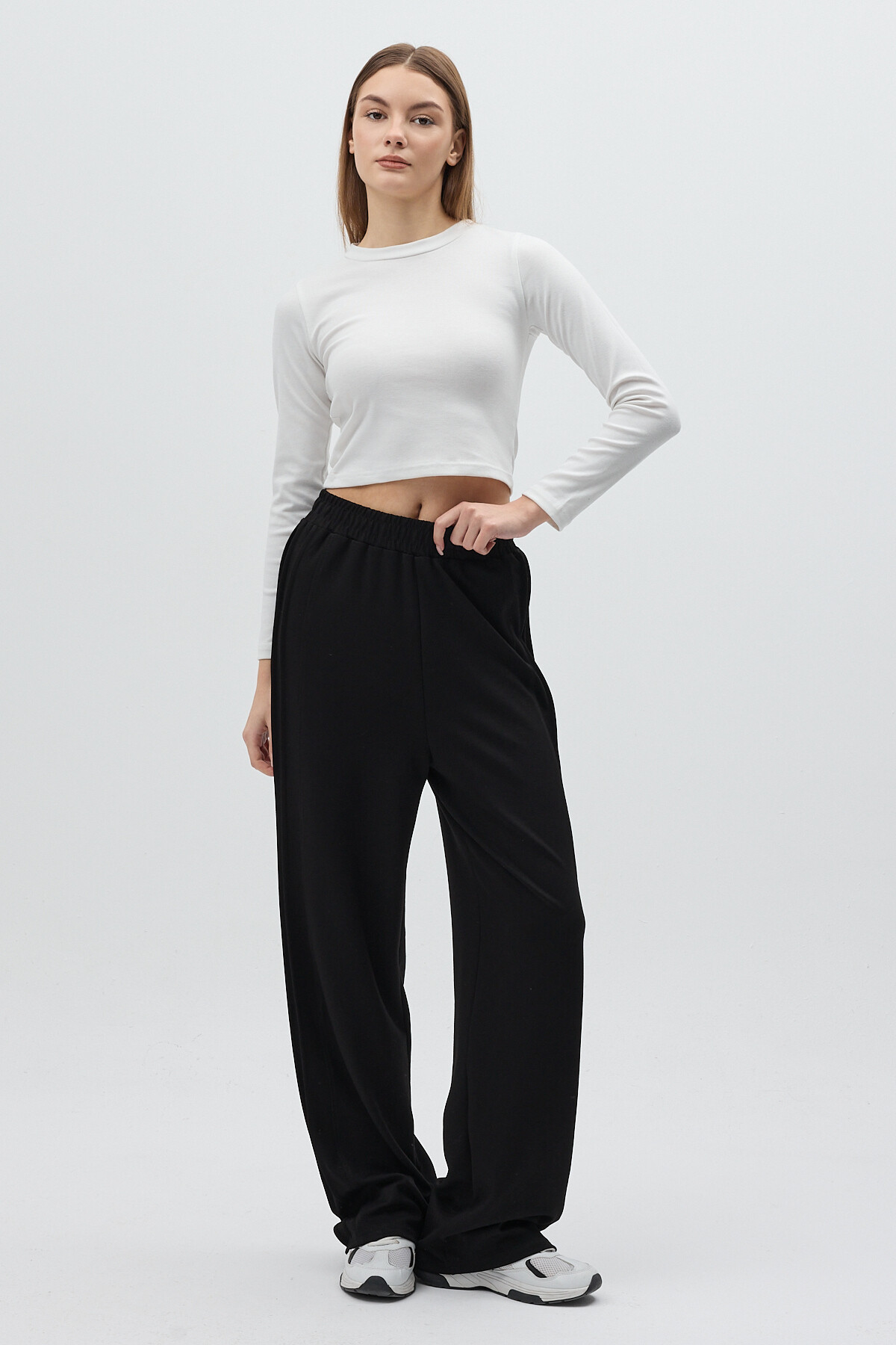Siyah Yan Çimalı Dikiş Detaylı Yüksek Bel Kadın Eşofman Altı 8296A