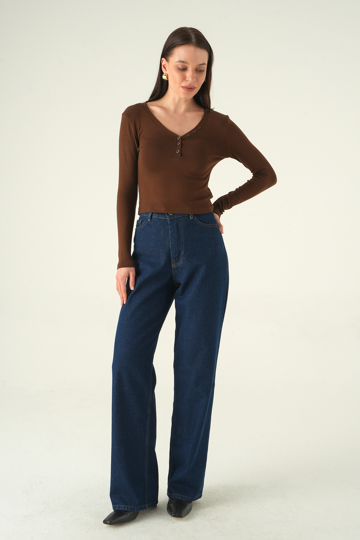 Kahve V Yaka Düğmeli Badi 8299A