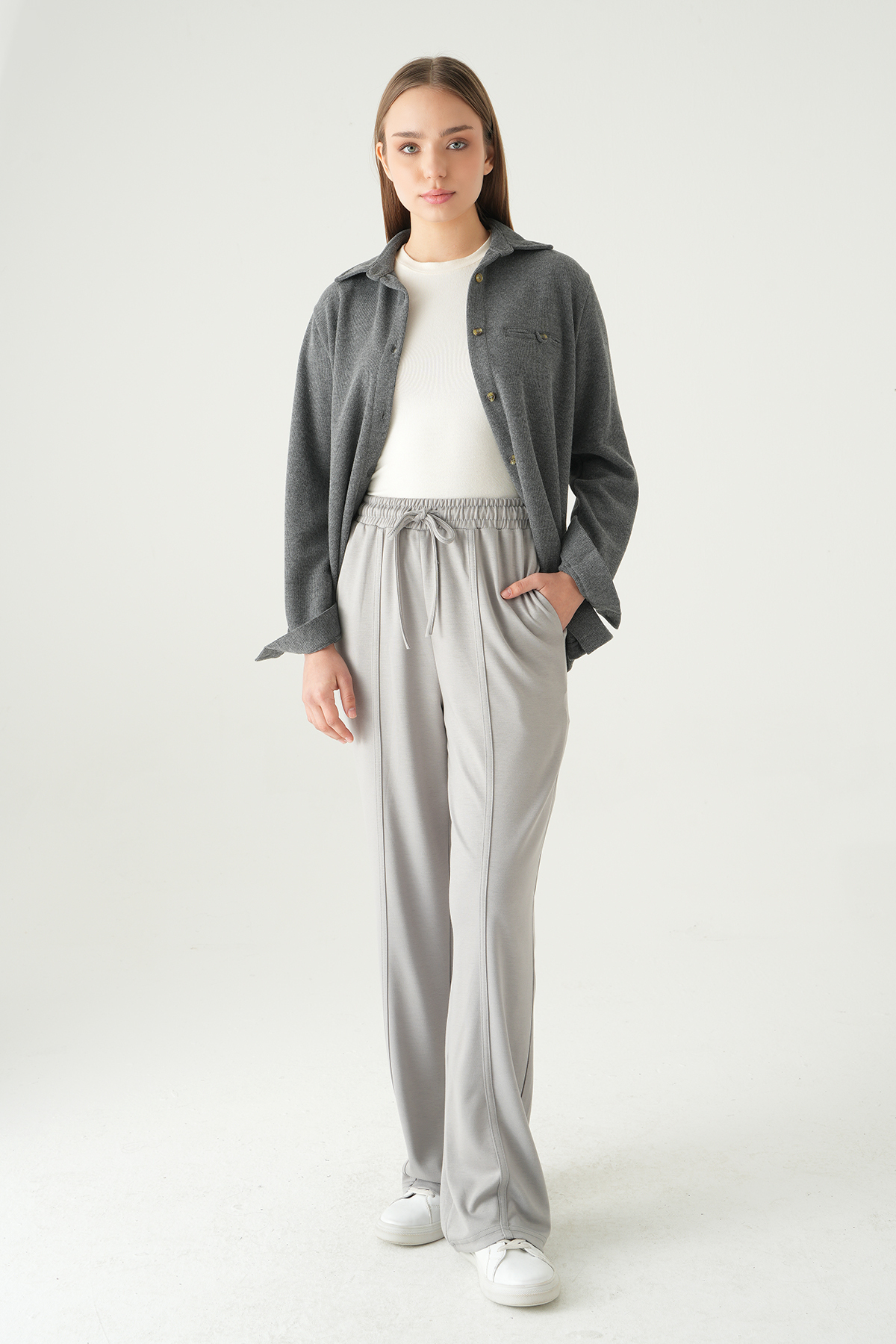 Gri Ön Çima Detay Eşofman 8302A