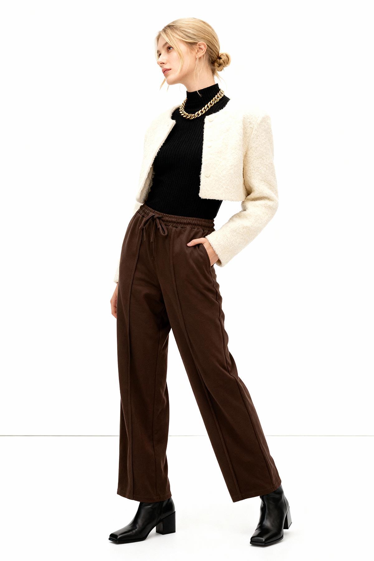 Kahverengi Yanları Şeritli Bel Lastikli Geniş Paça Kadın Eşofman Altı 9226M