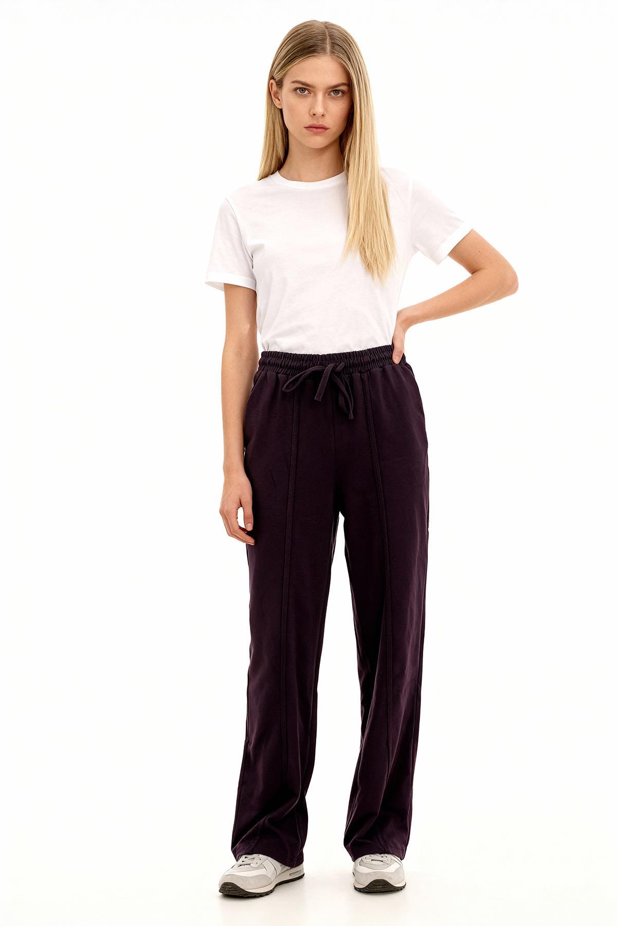 Mürdüm Yanları Şeritli Bel Lastikli Geniş Paça Kadın Eşofman Altı 9226M