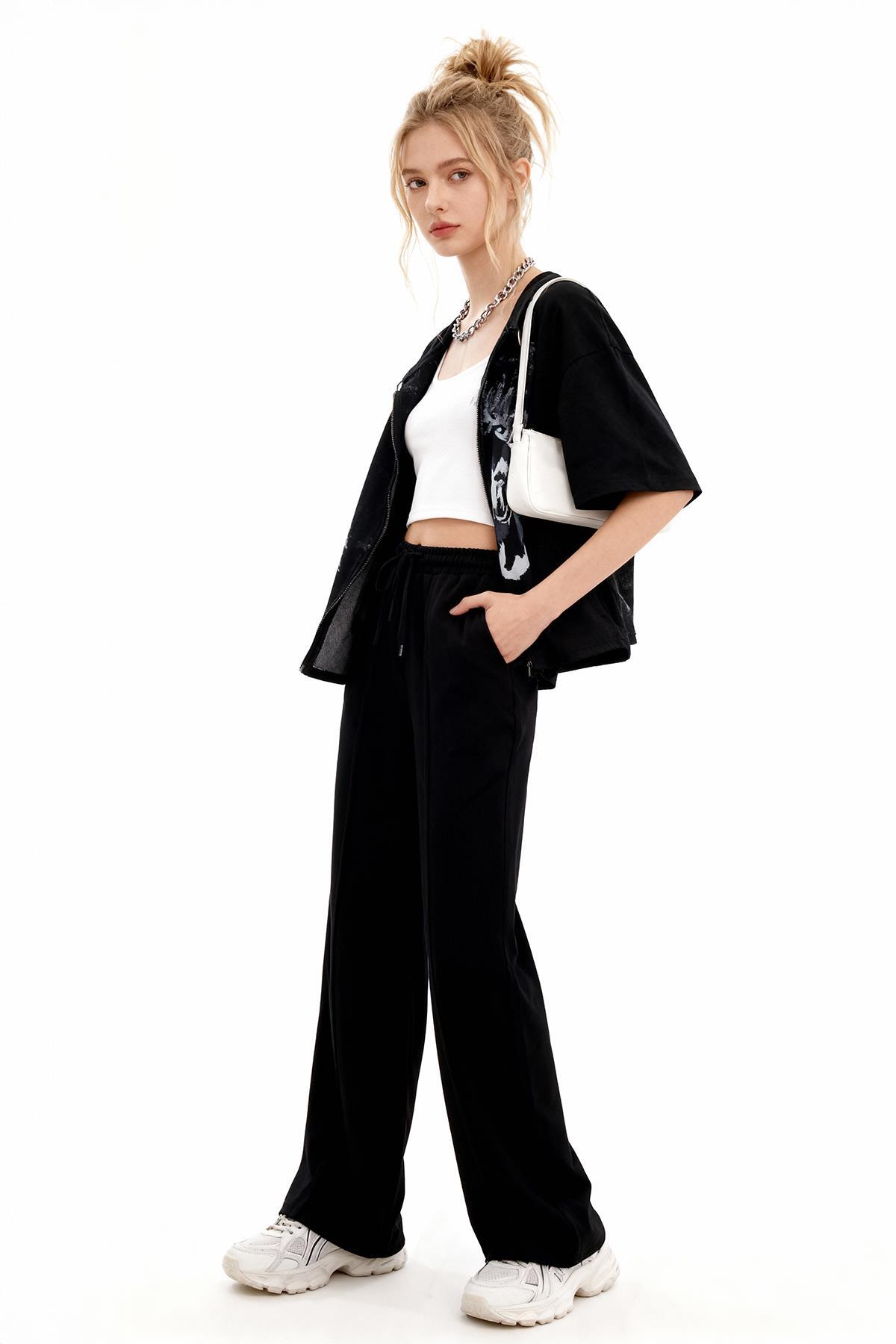 Siyah Baskılı Bel Lastikli Eşofman 8367A