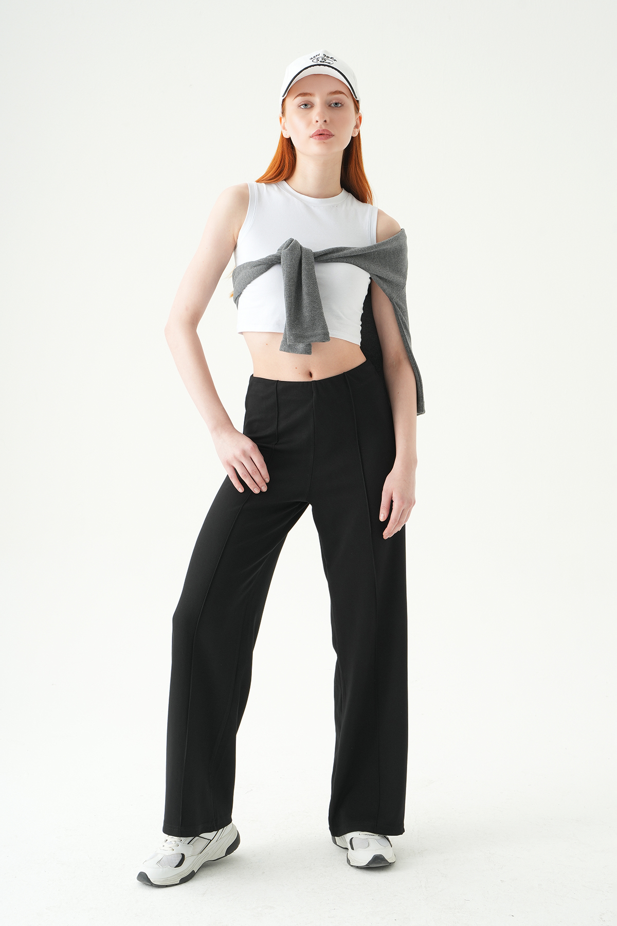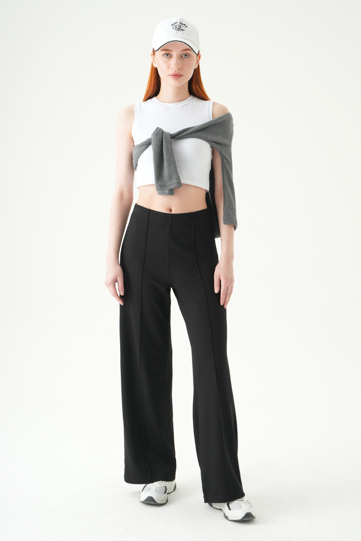 Siyah Ön Çimalı Yüksek Bel Pantolon 8303A