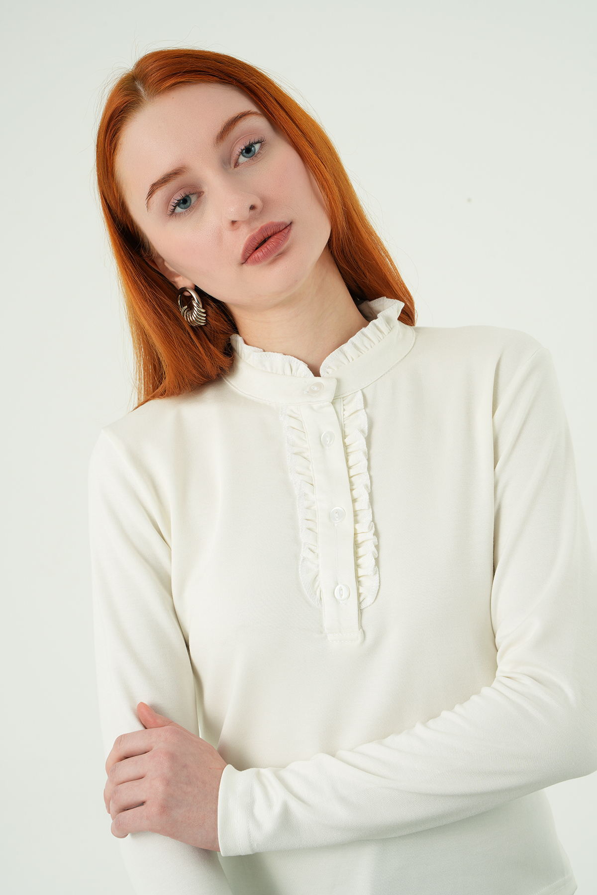 Ekru Ön Düğmeli Bluz 8311A