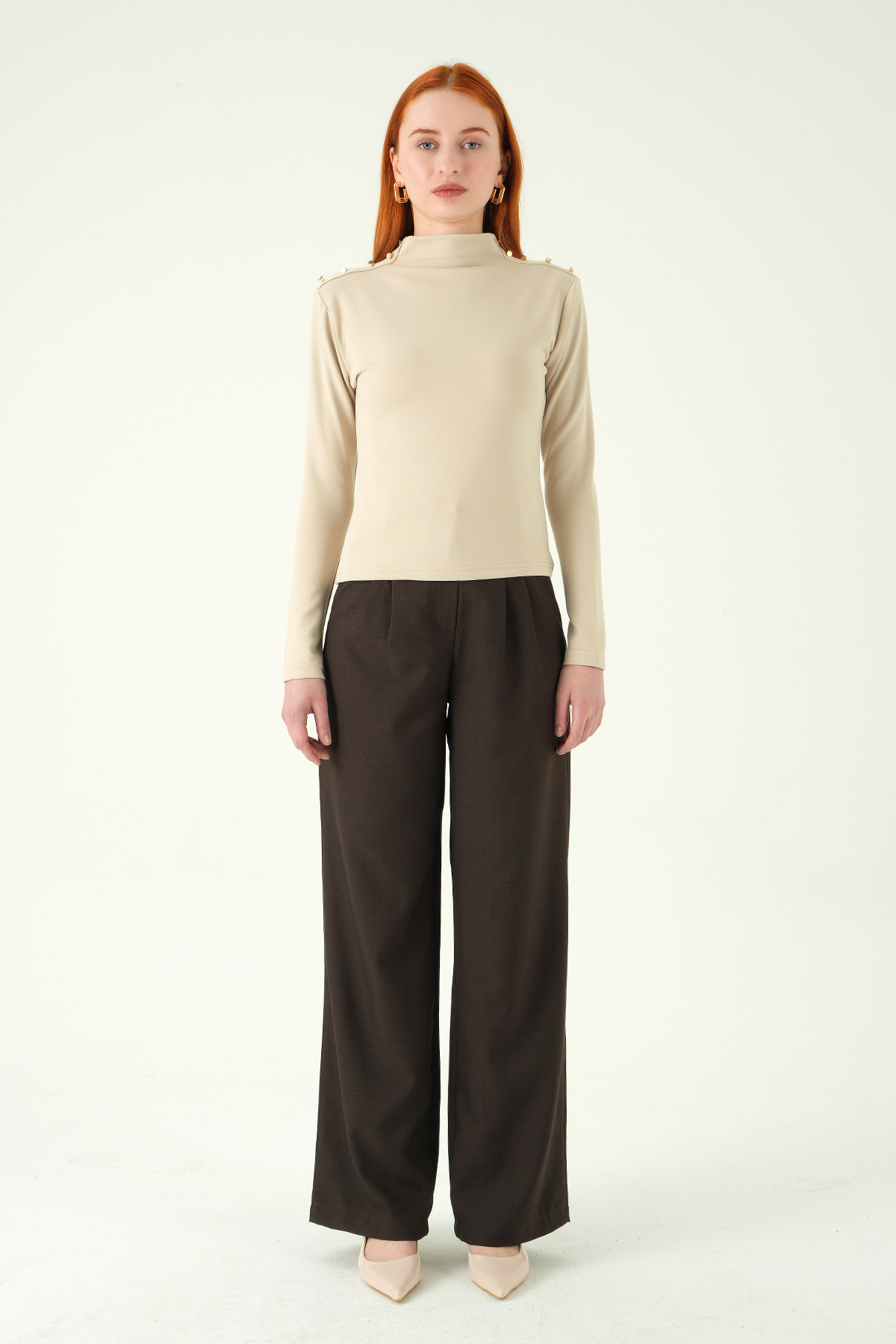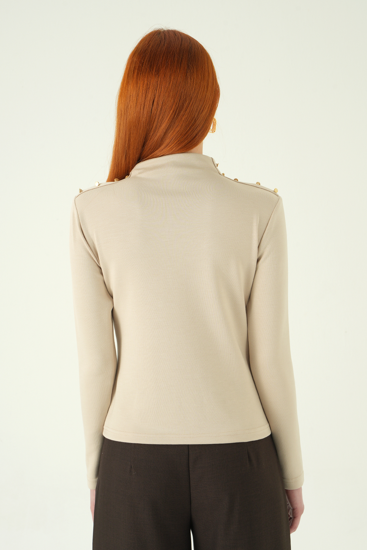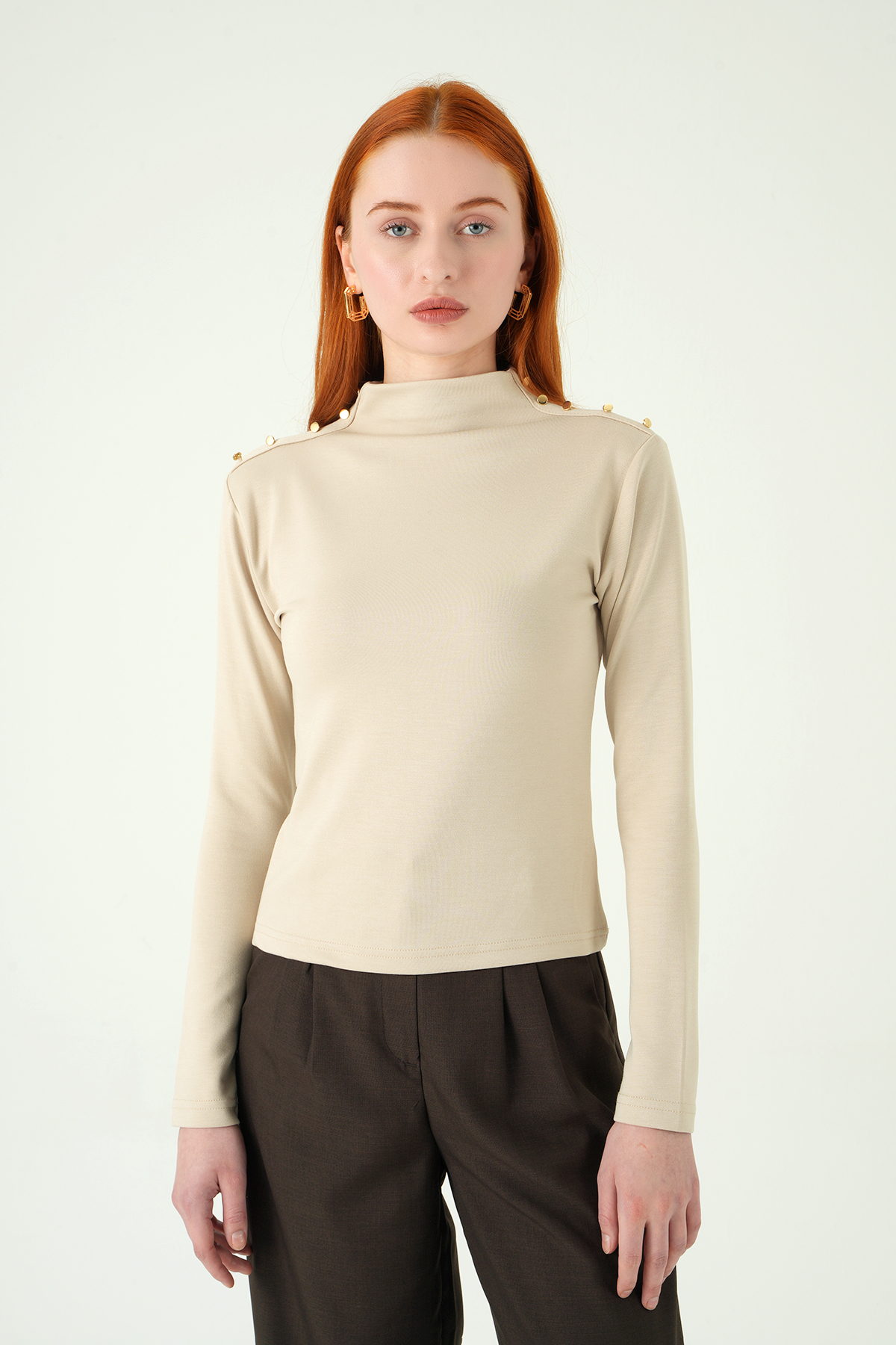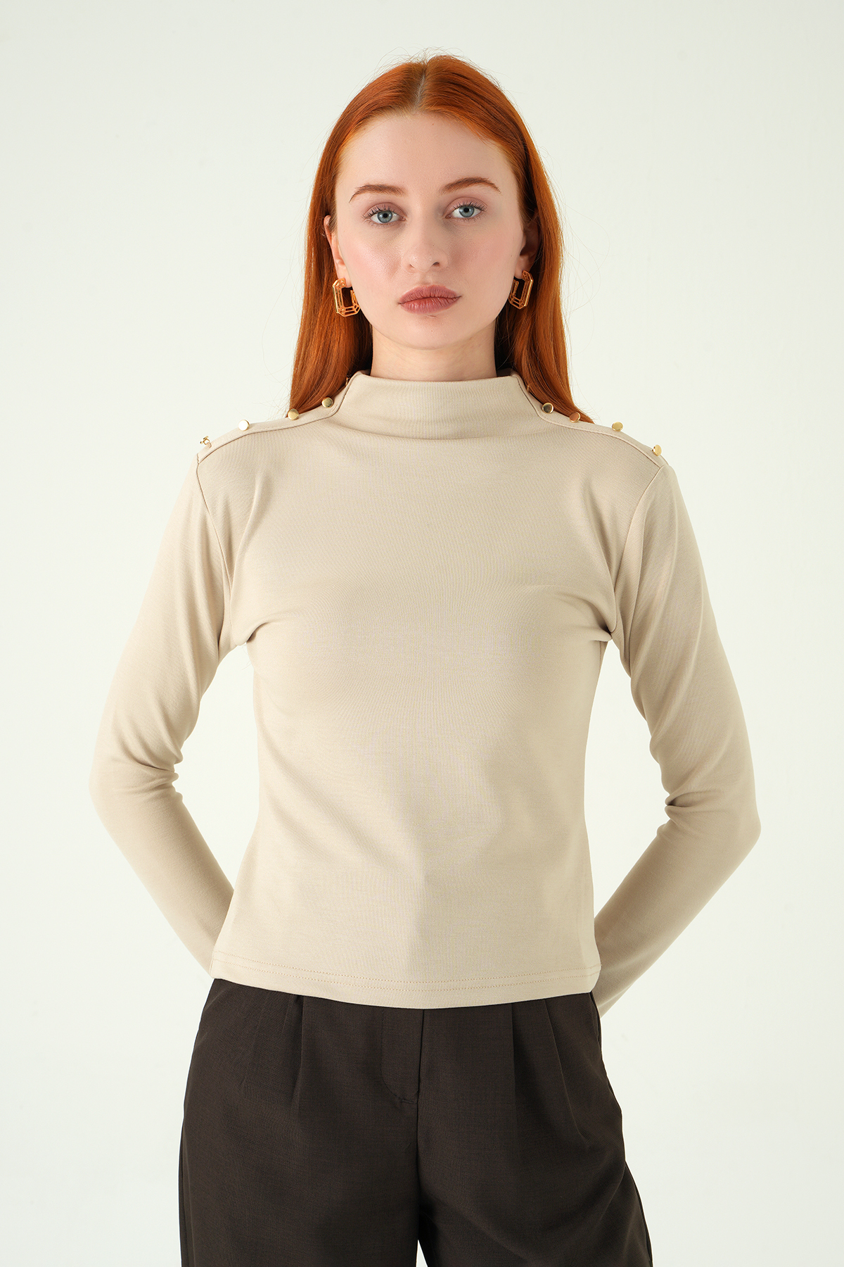 8312A Omuz Dümeli Bluz Bej
