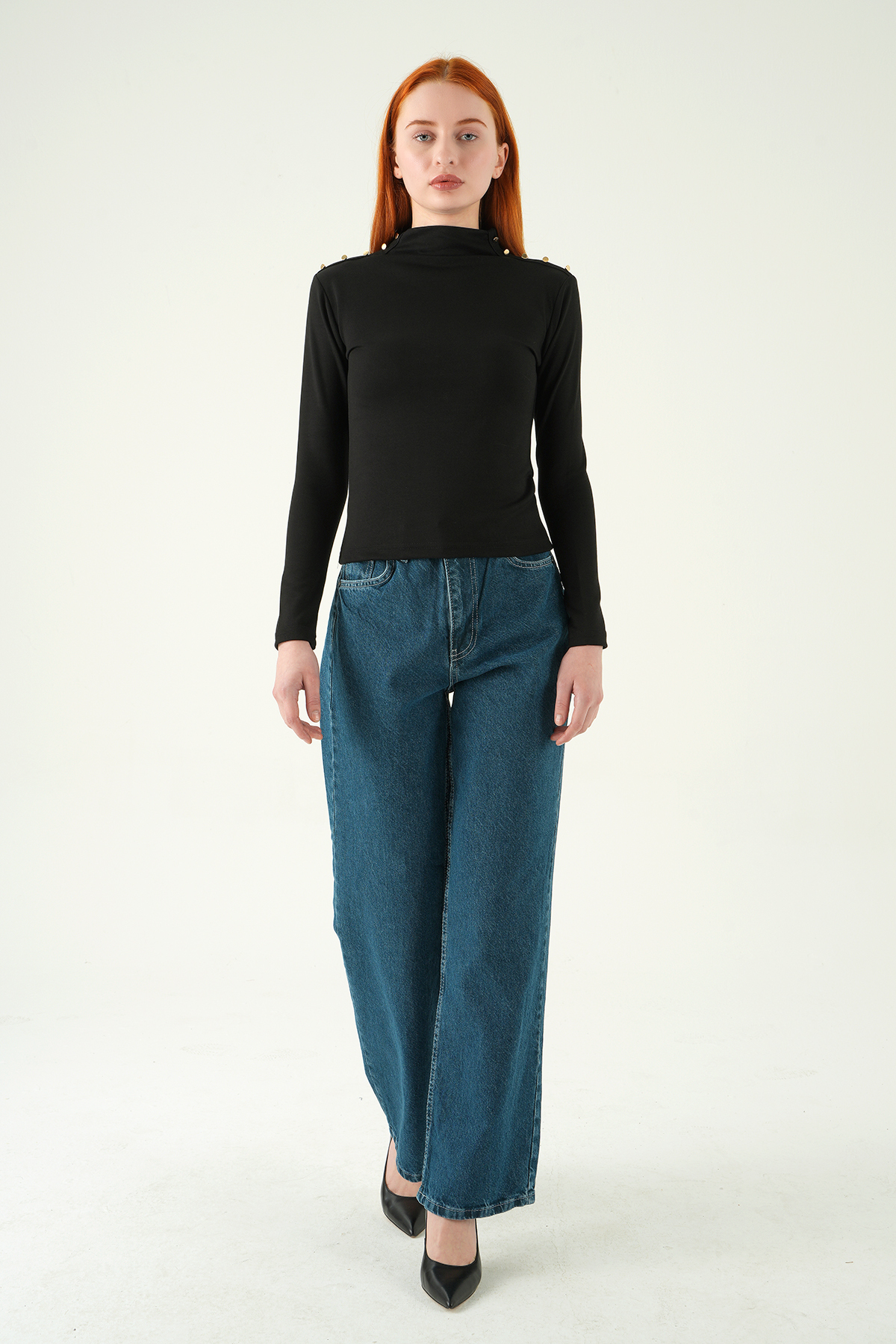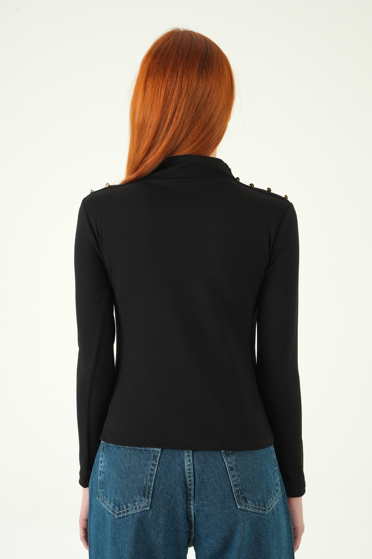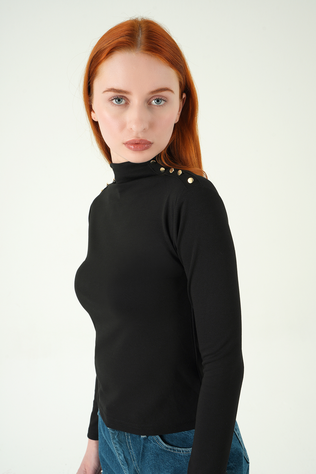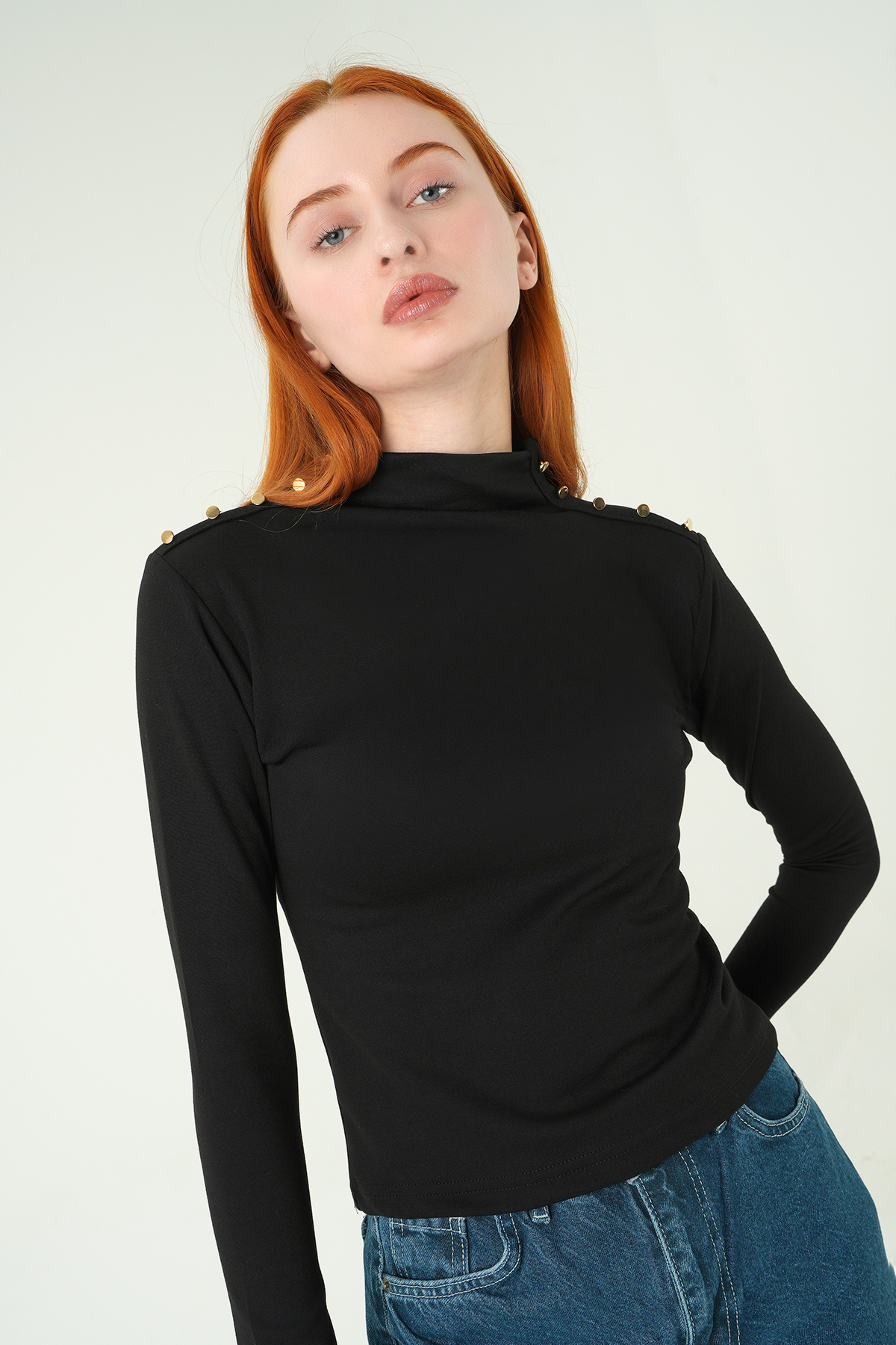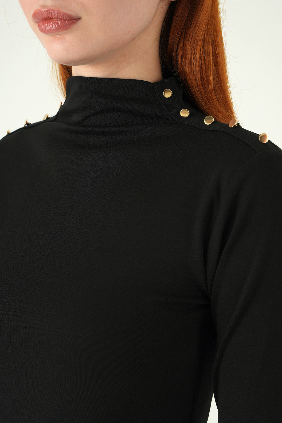 Siyah Omuz Düğmeli Bluz 8312A