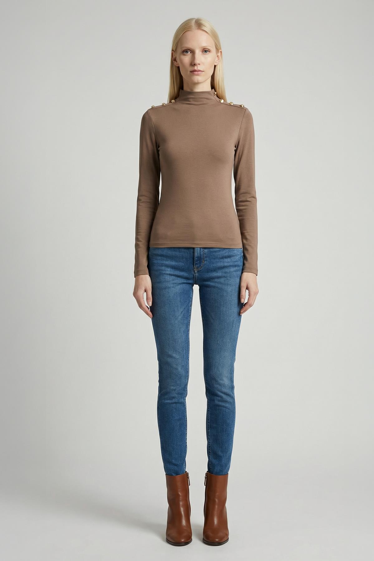 8312A Omuz Dümeli Bluz Vizon