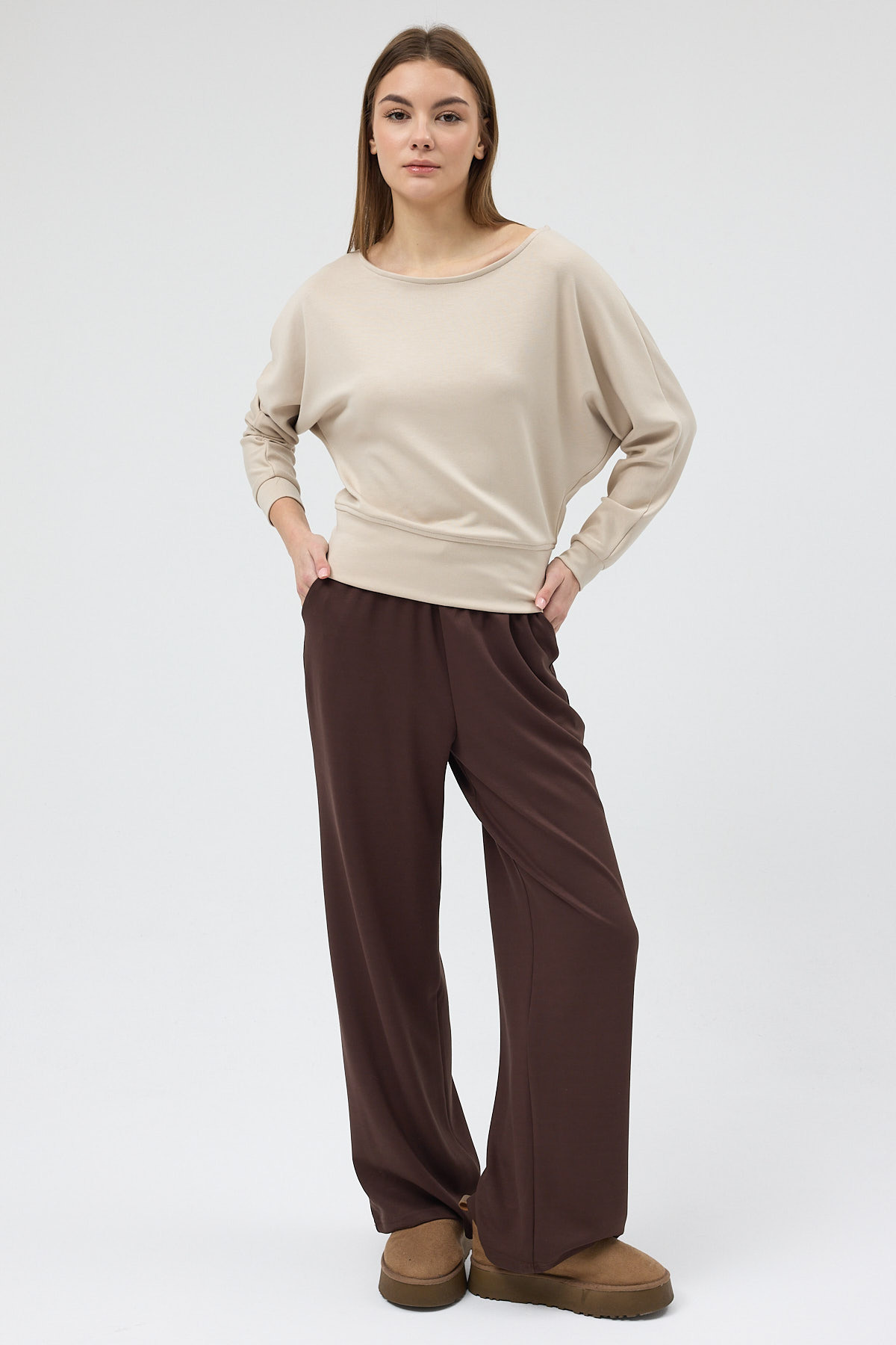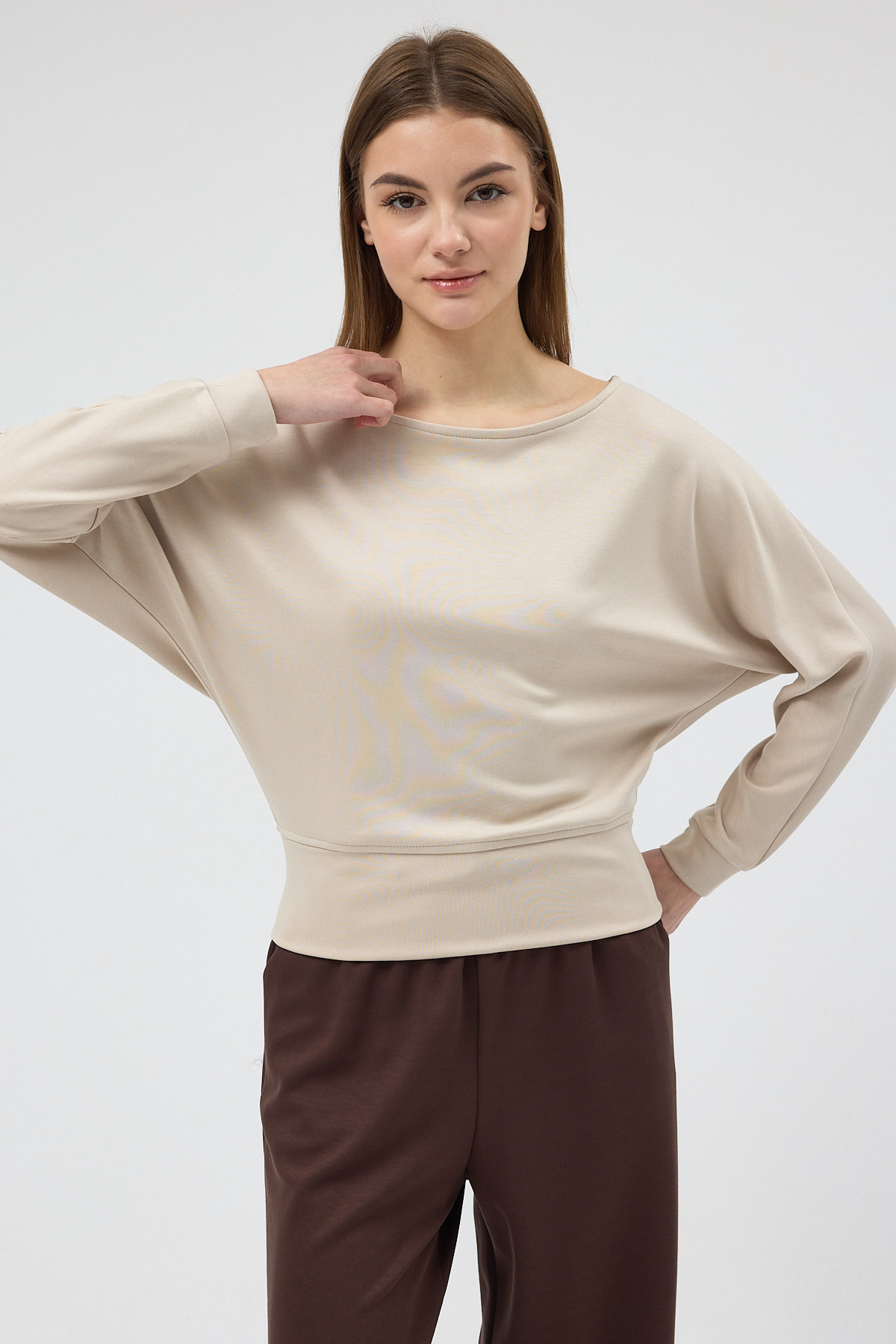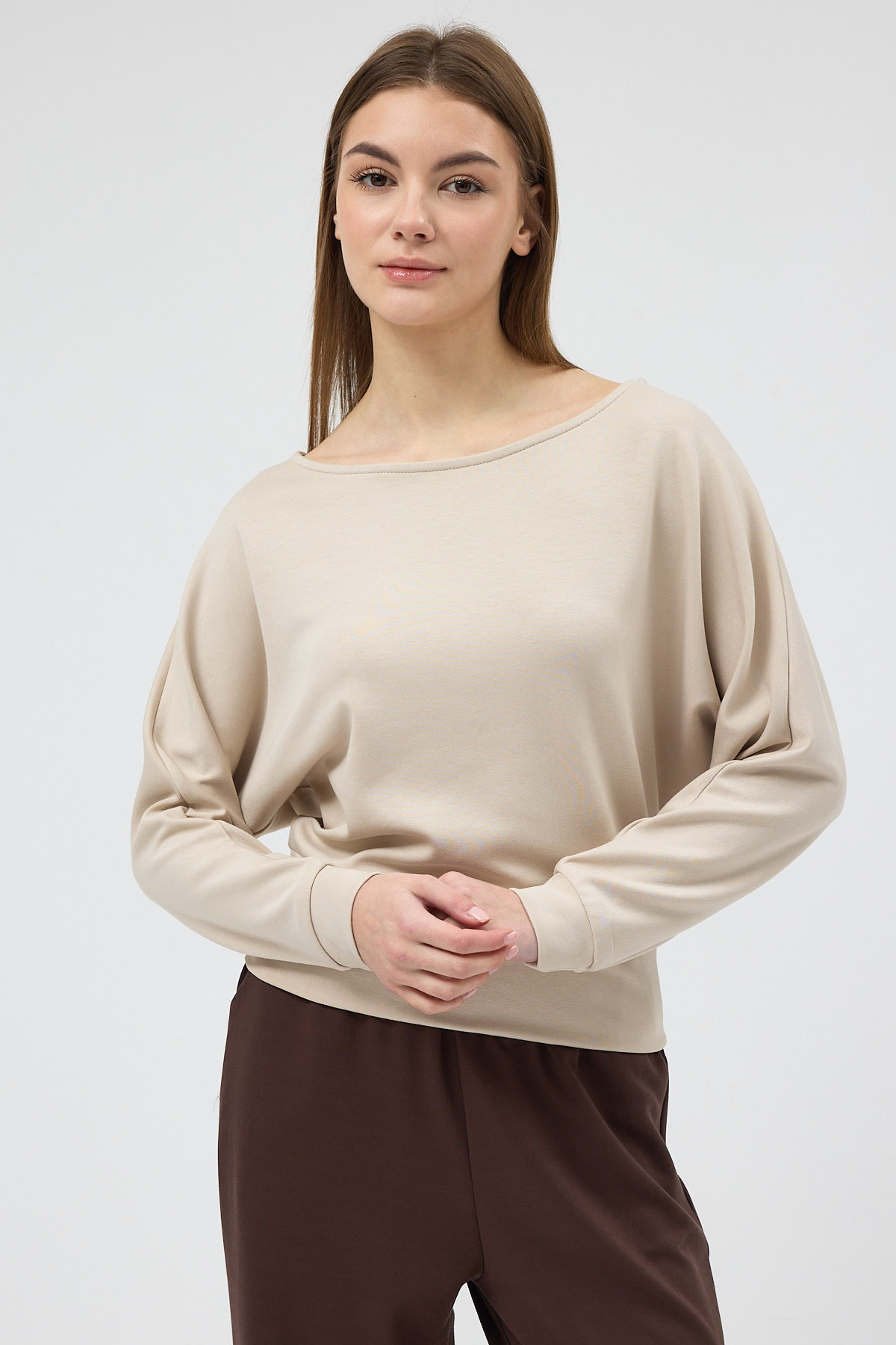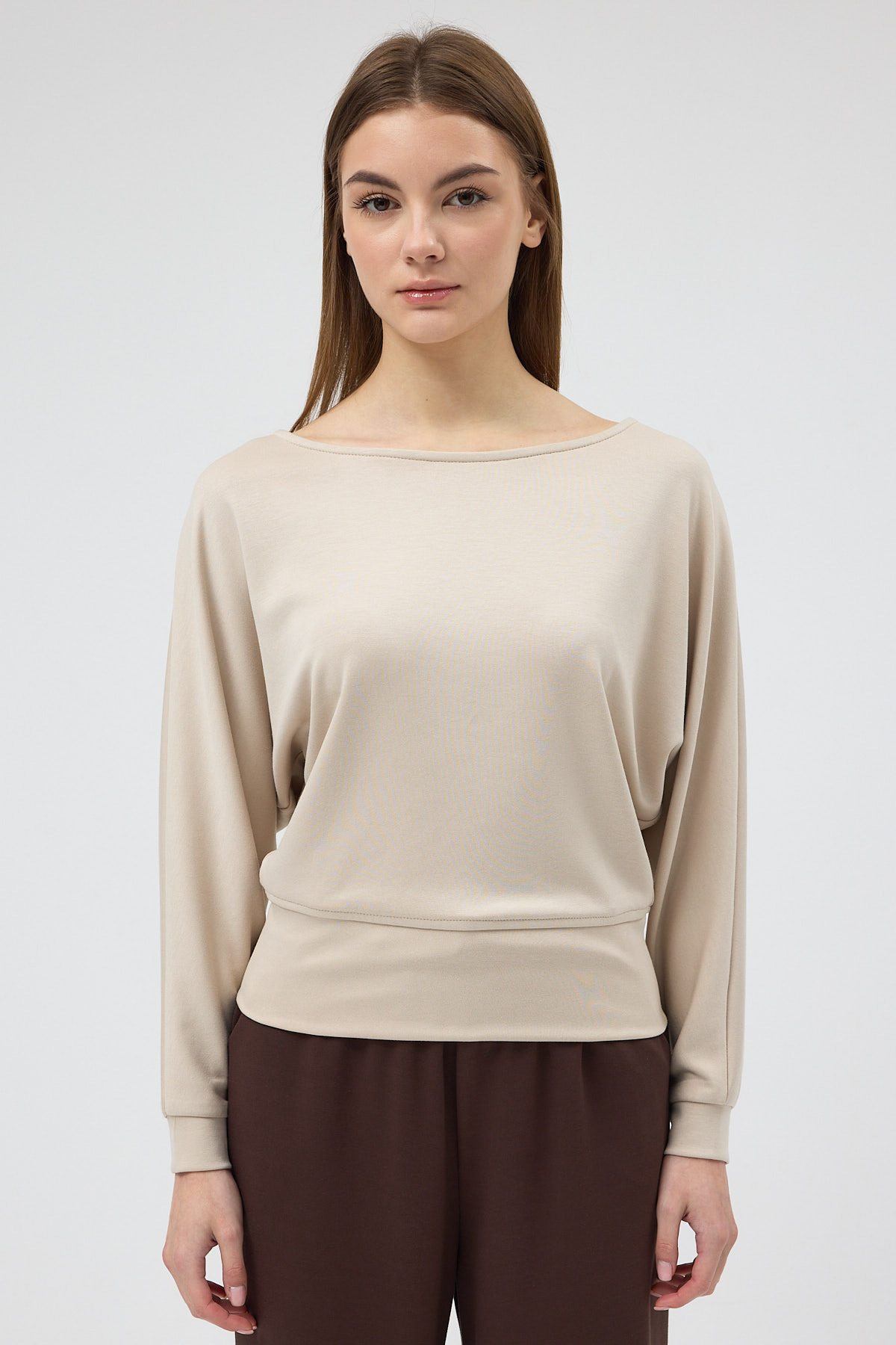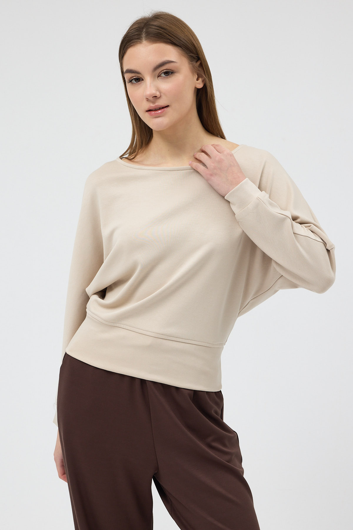 Bej Kayık Yaka Yarasa Kol Büzgülü Bluz 8316A