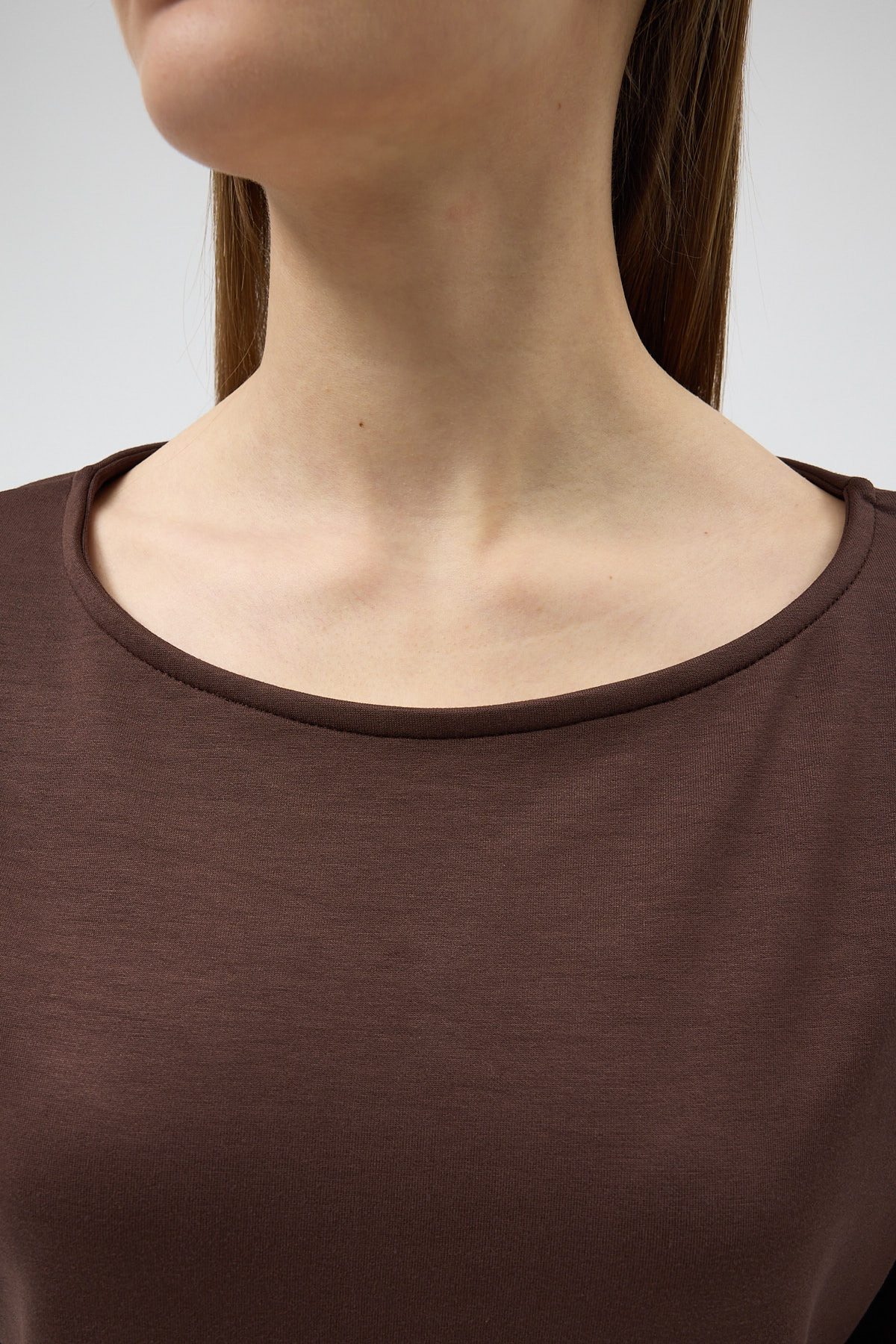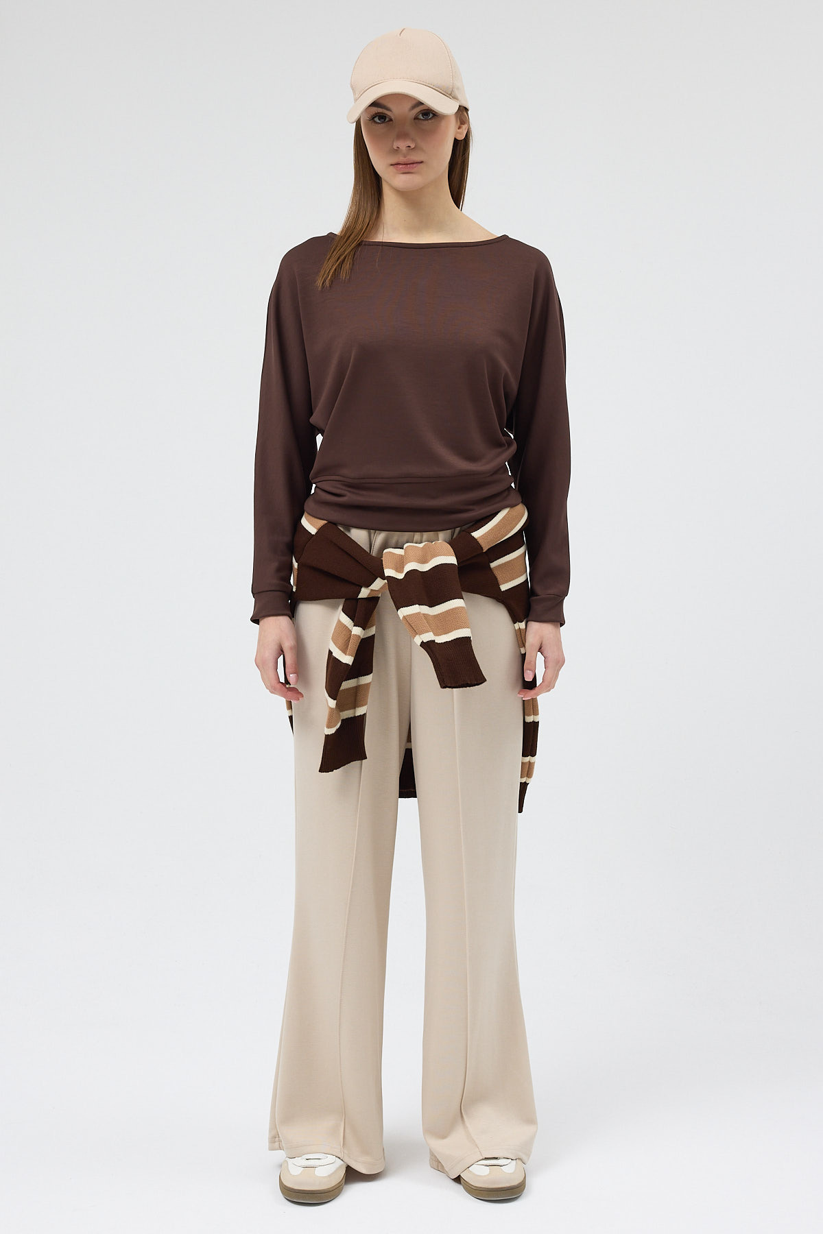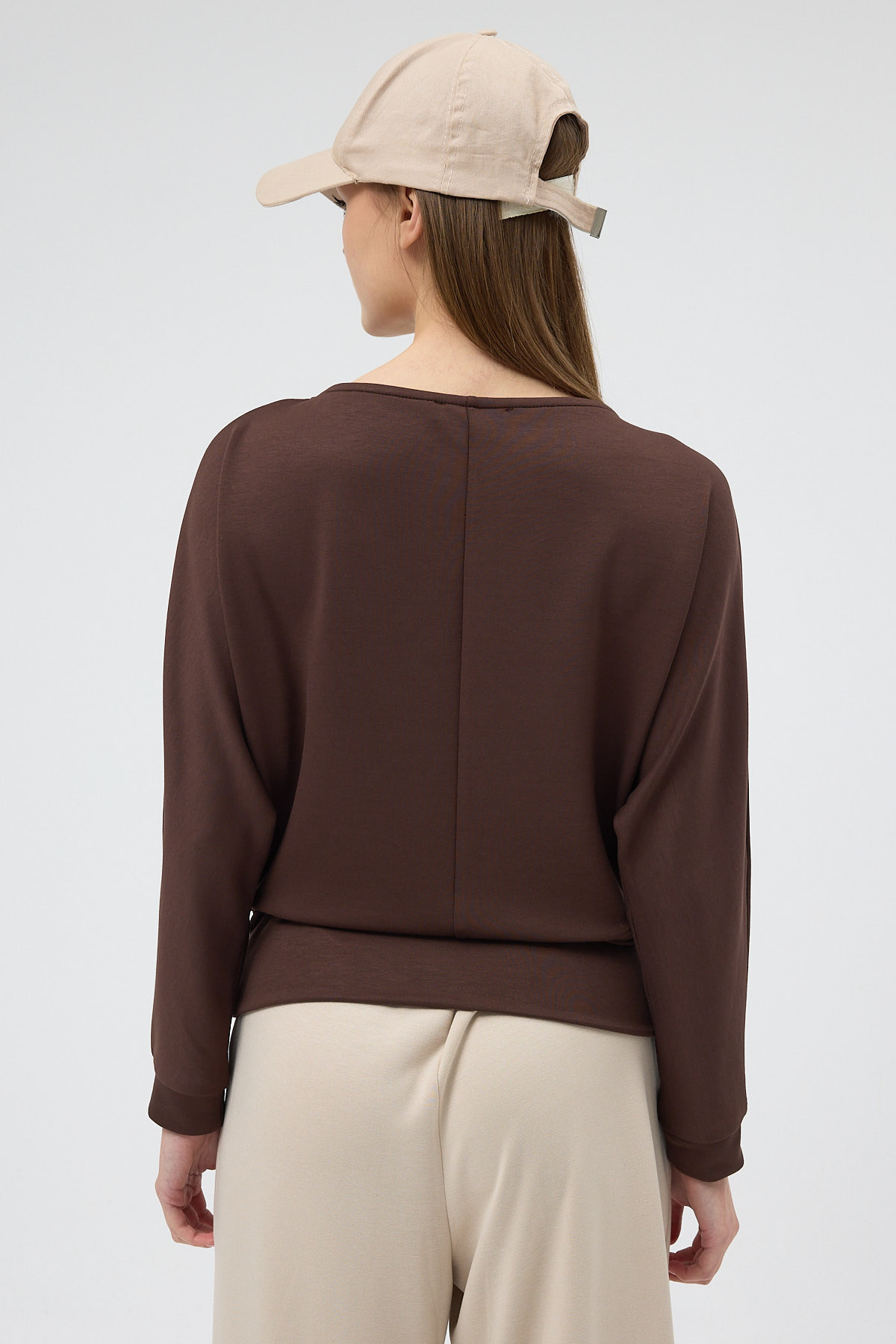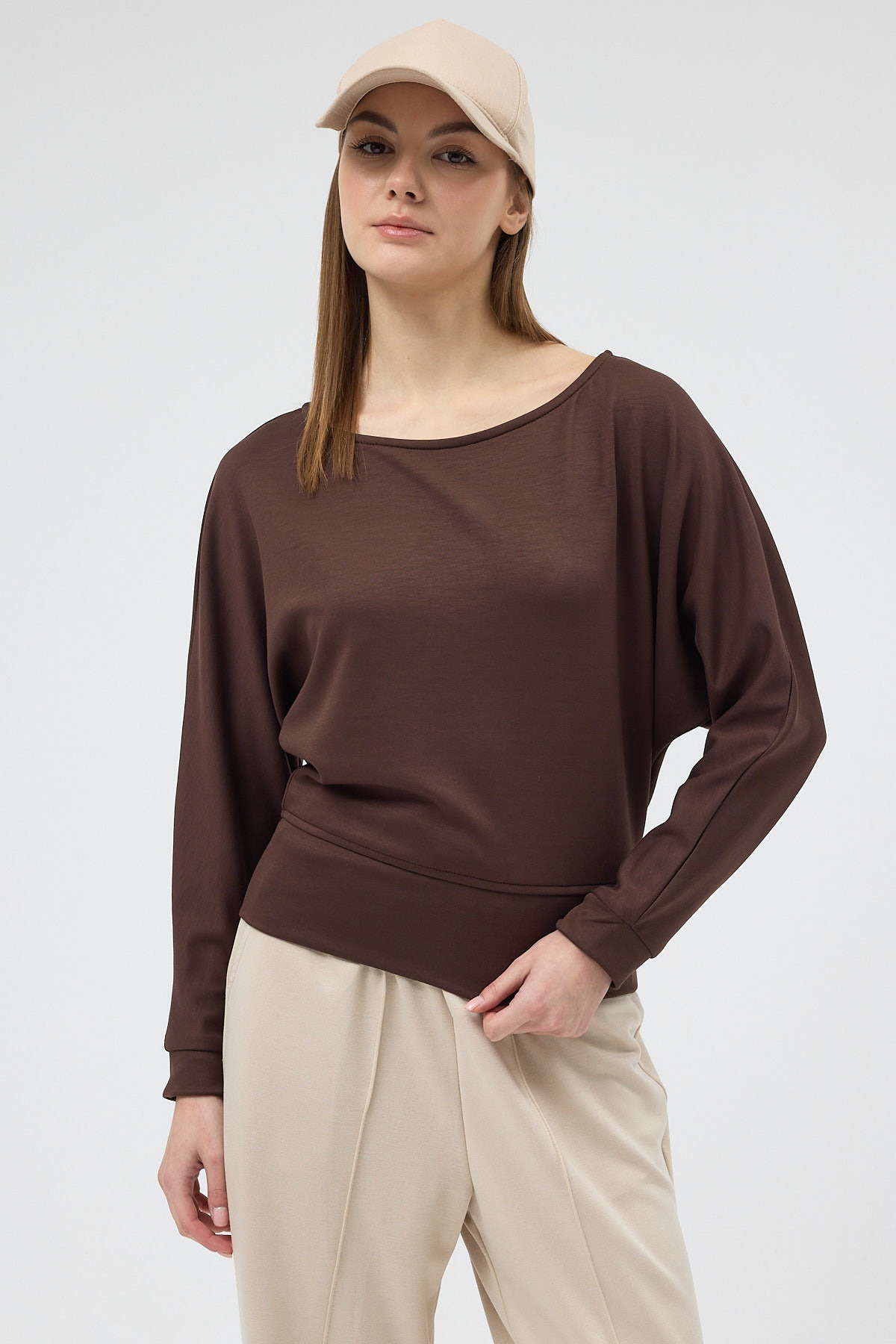 Kahverengi Kayık Yaka Yarasa Kol Büzgülü Bluz 8316A