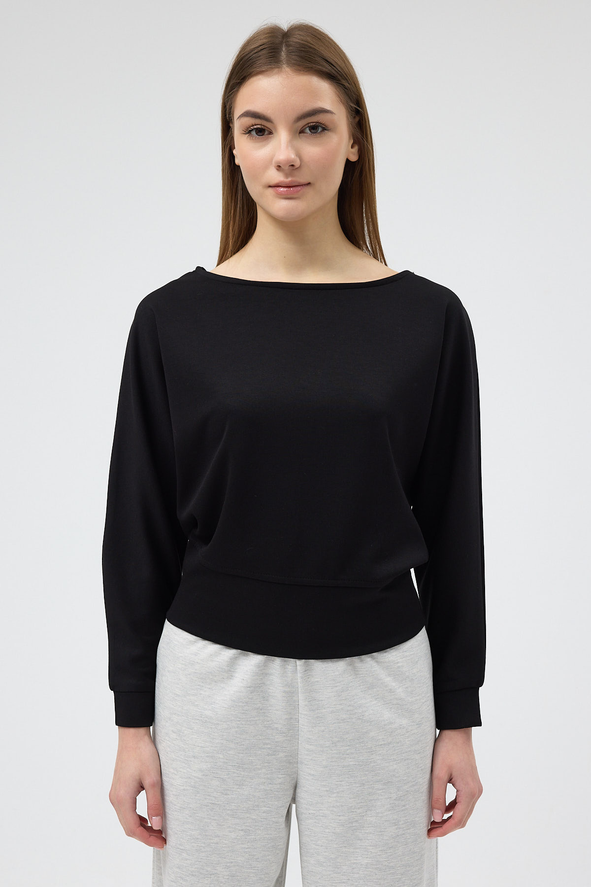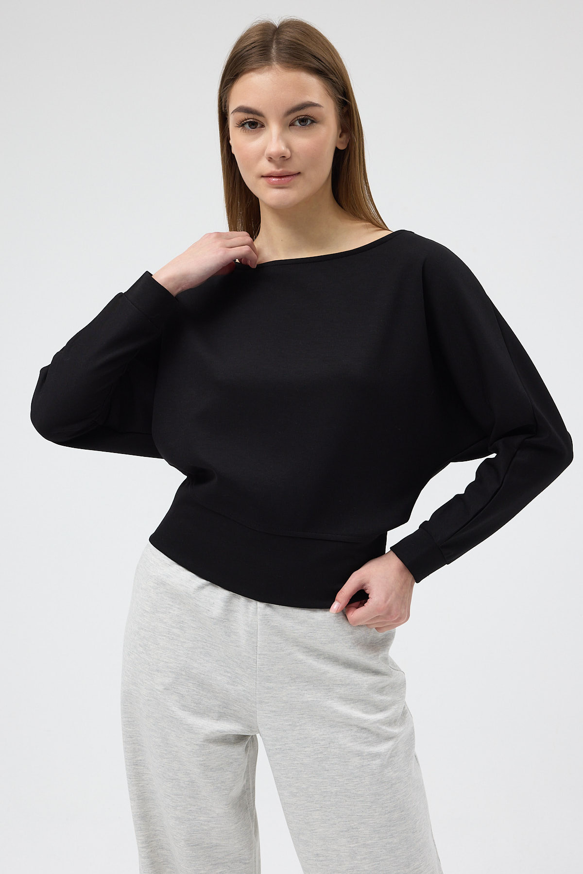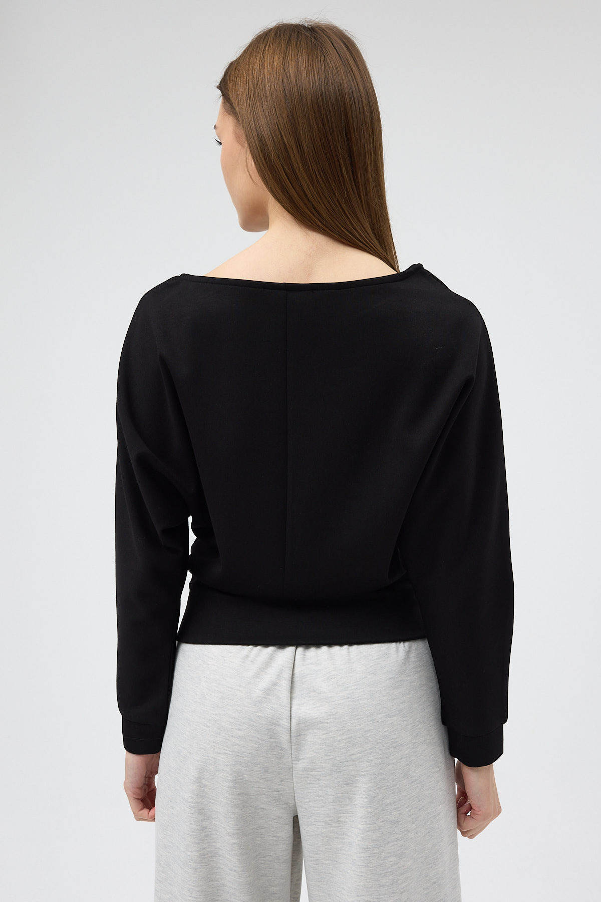 Siyah Kayık Yaka Yarasa Kol Büzgülü Bluz 8316A