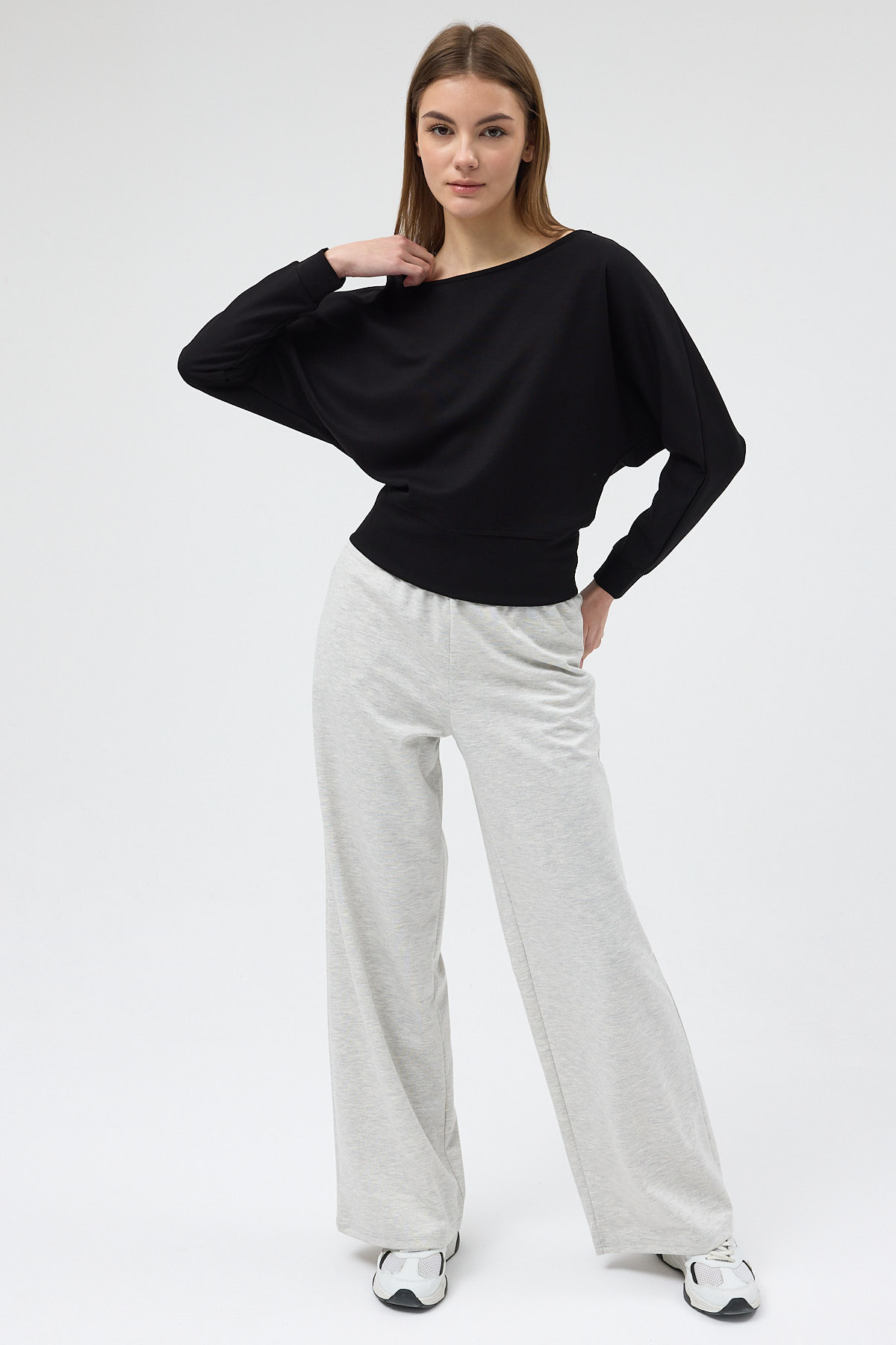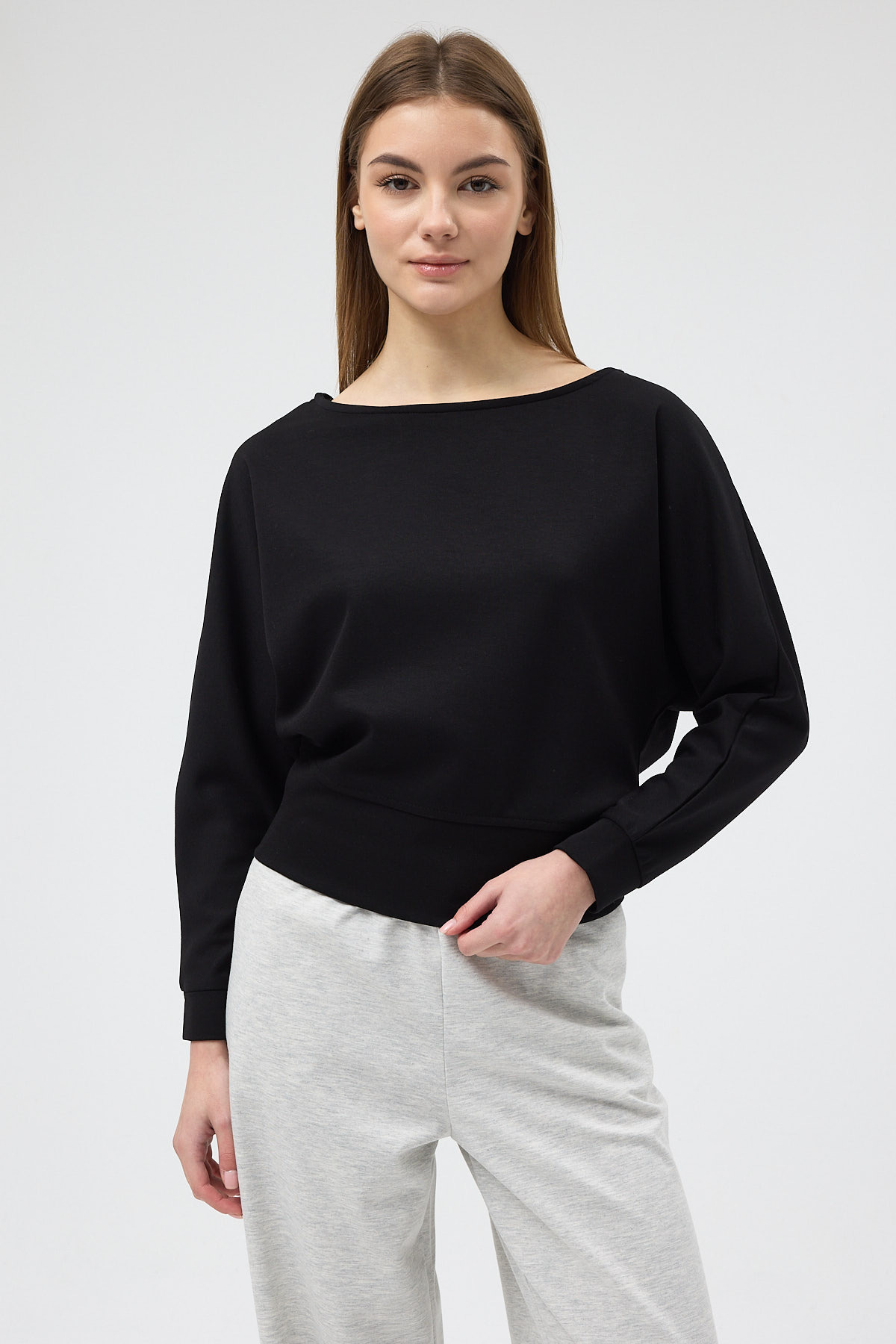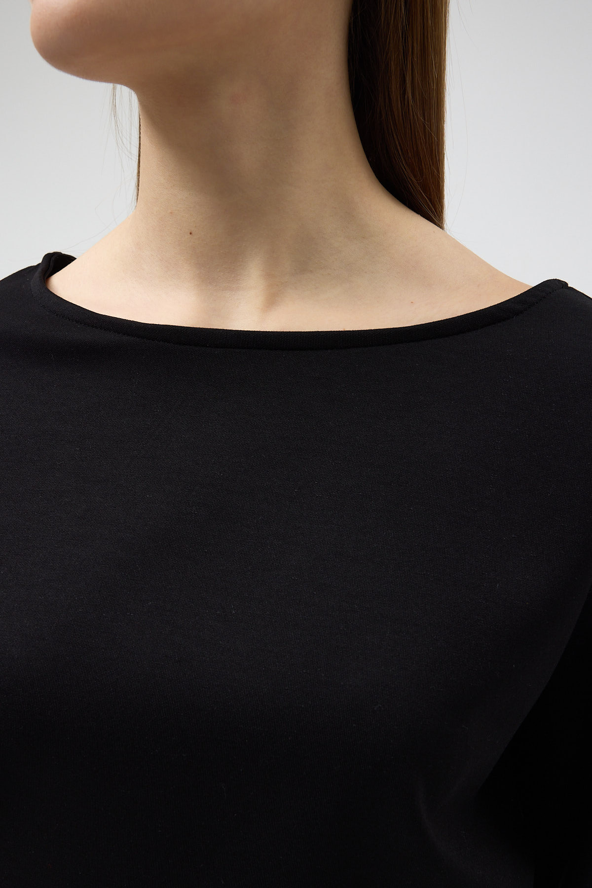 Siyah Kayık Yaka Yarasa Kol Büzgülü Bluz 8316A