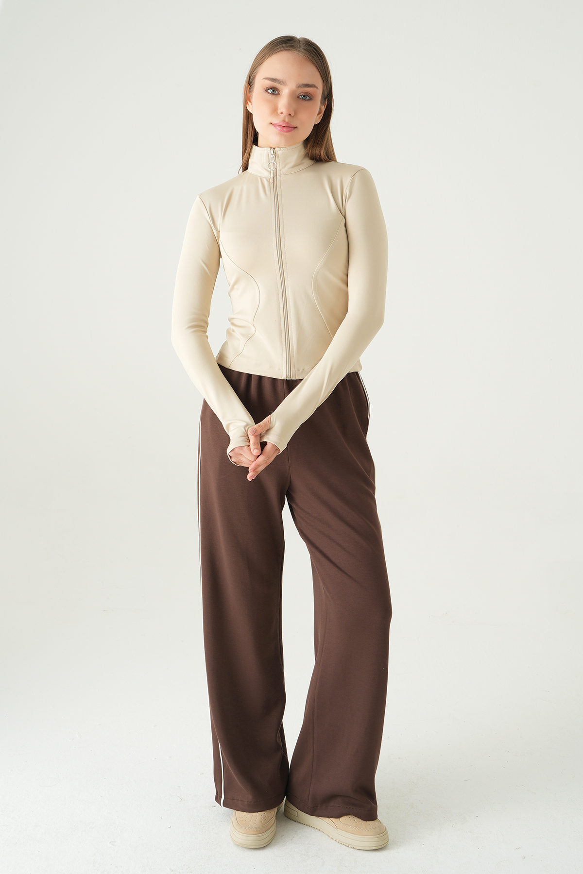 Bej Fermuarlı Hırka 8327A