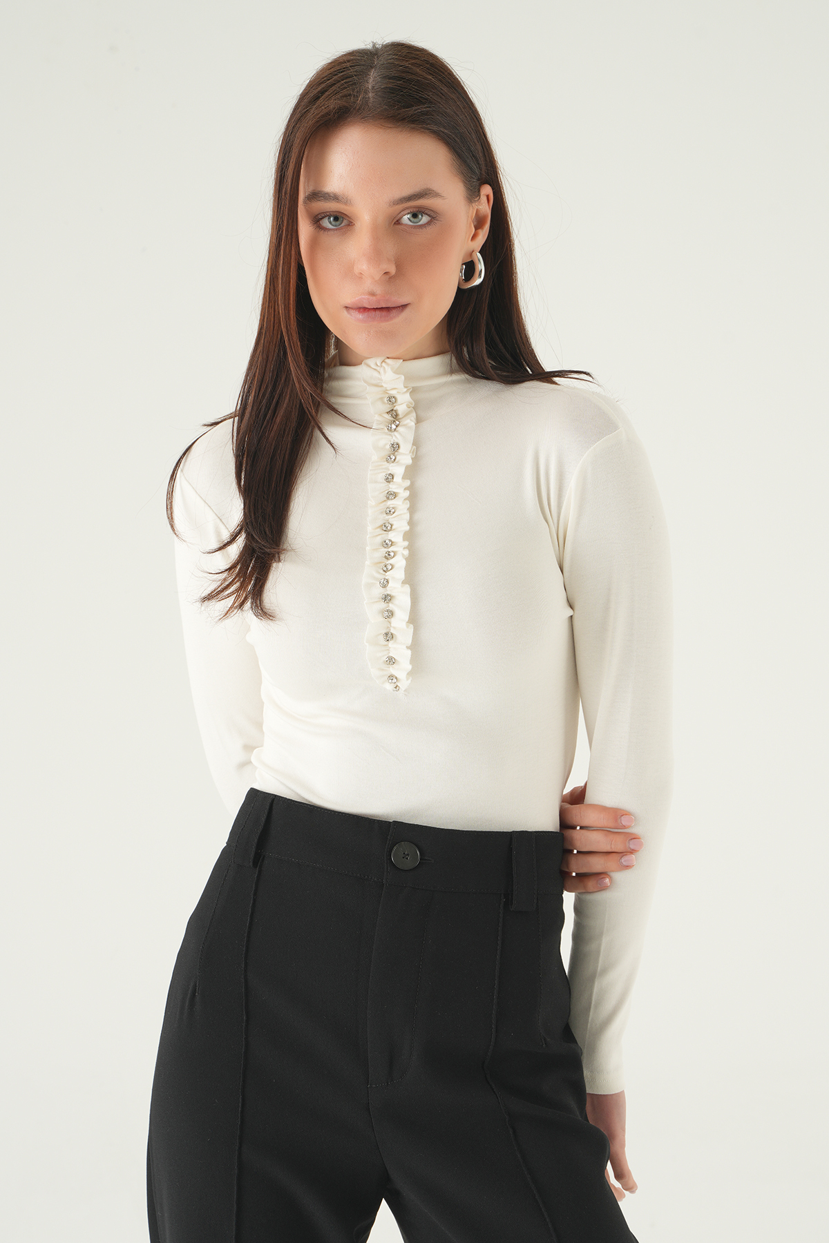 Ekru Yarım Boğaz Ön Çimalı Badi 8262A