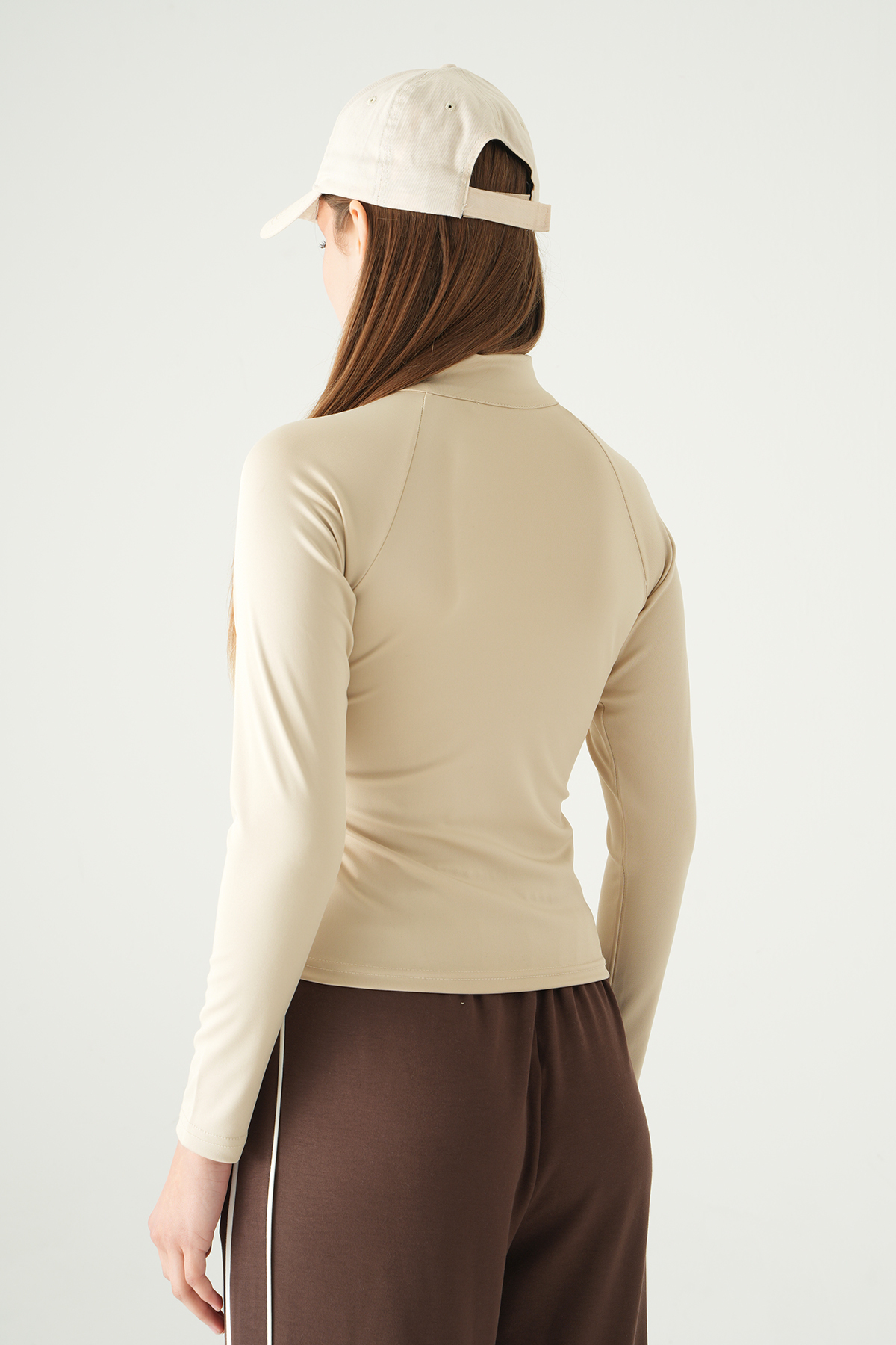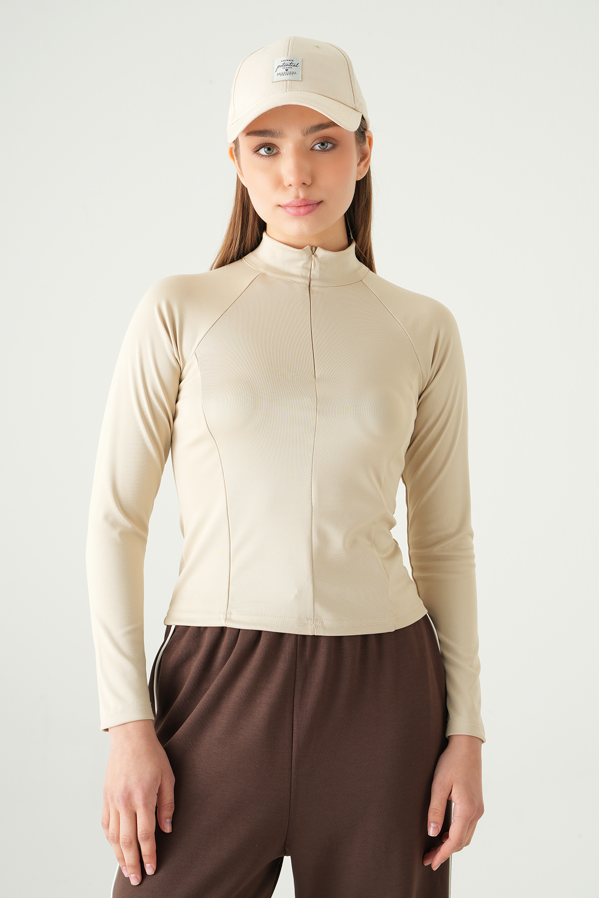 Bej Ön Fermuarlı Uzun Kol Sweat 8334A