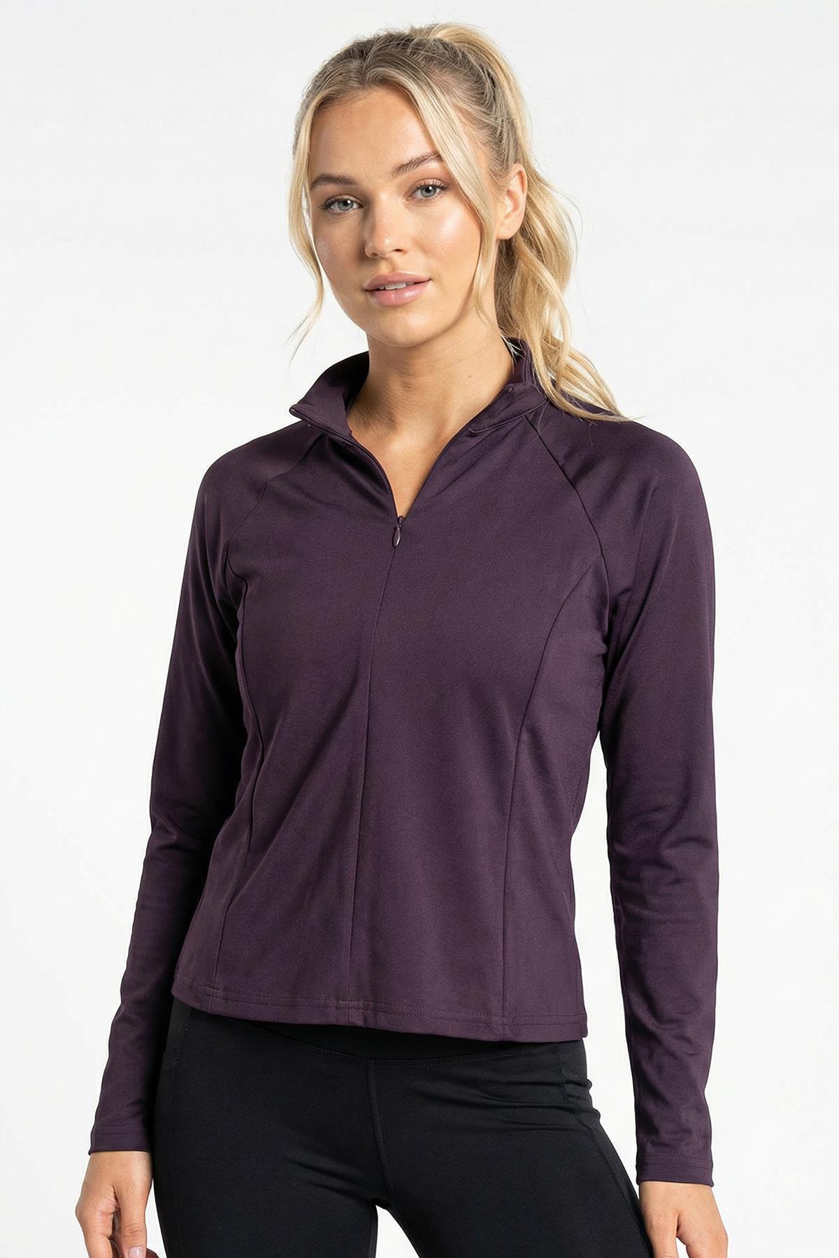 8334A Ön Fermuarlı Uzun Kol Bluz Mürdüm