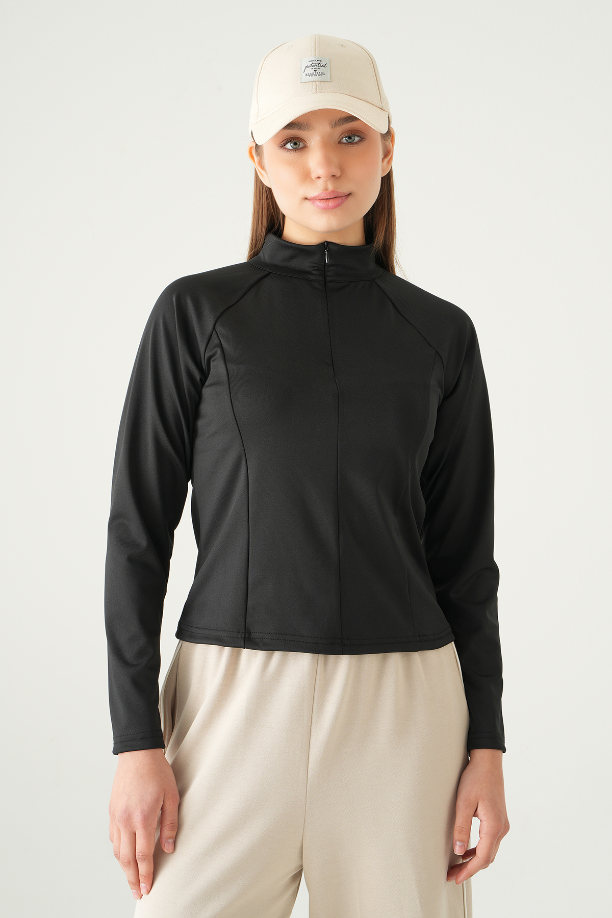 Siyah Ön Fermuarlı Uzun Kol Sweat 8334A