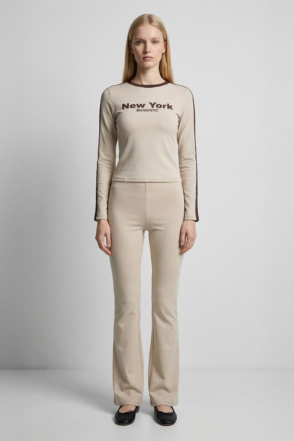 8342A Baskılı Şeritli Badi Bej
