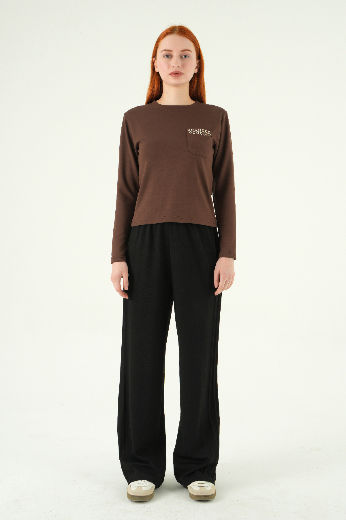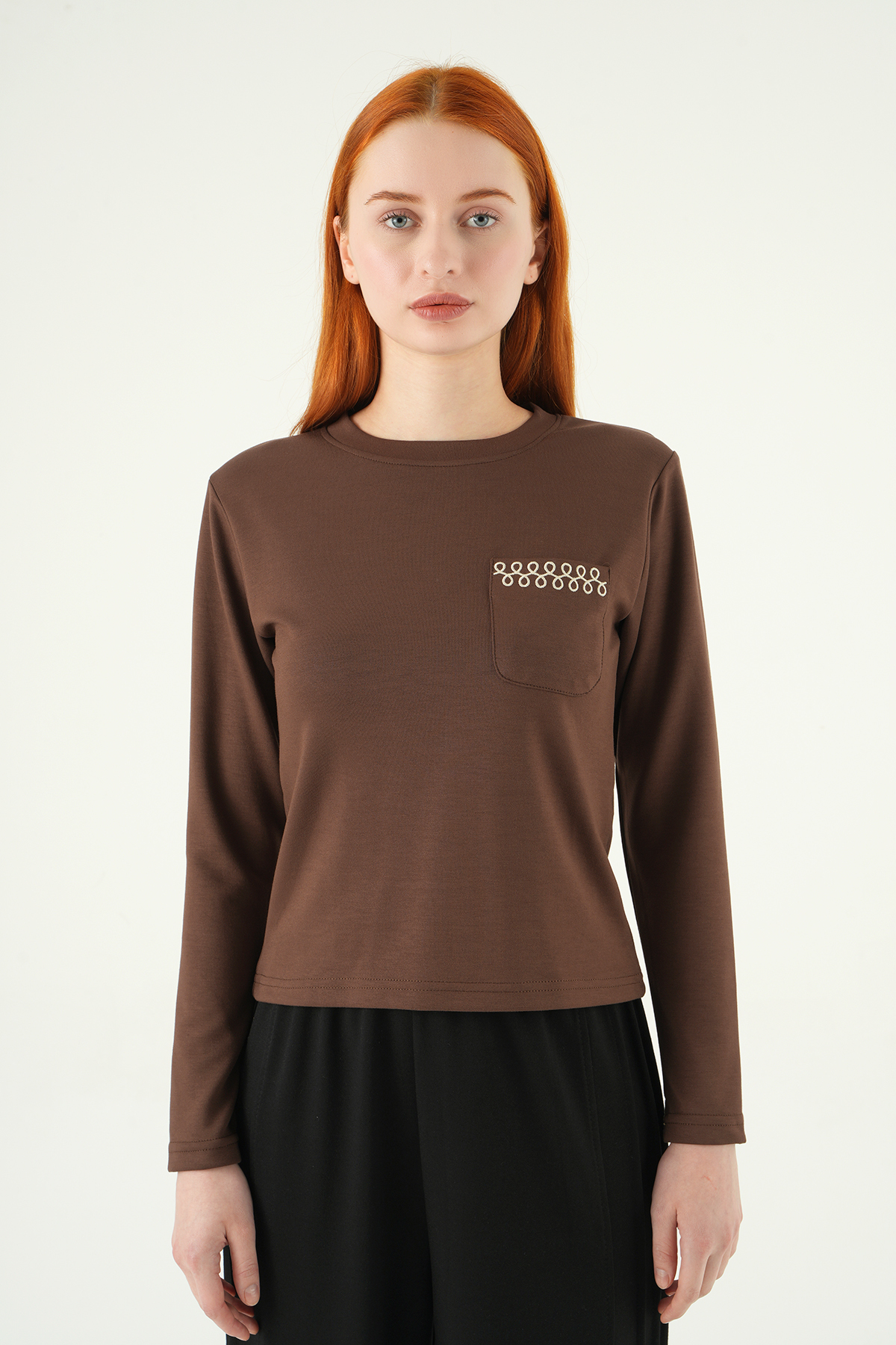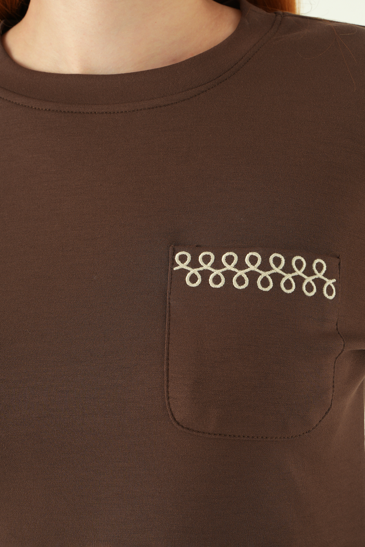 Kahve Bisiklet Yaka Cep Nakışlı Badi 8344A