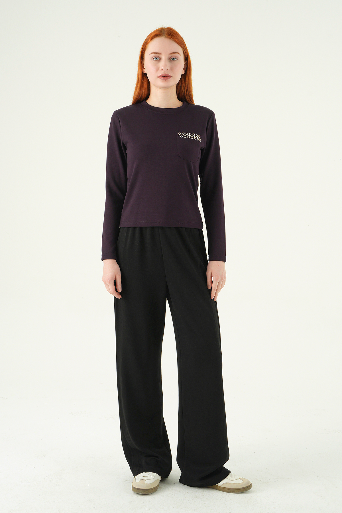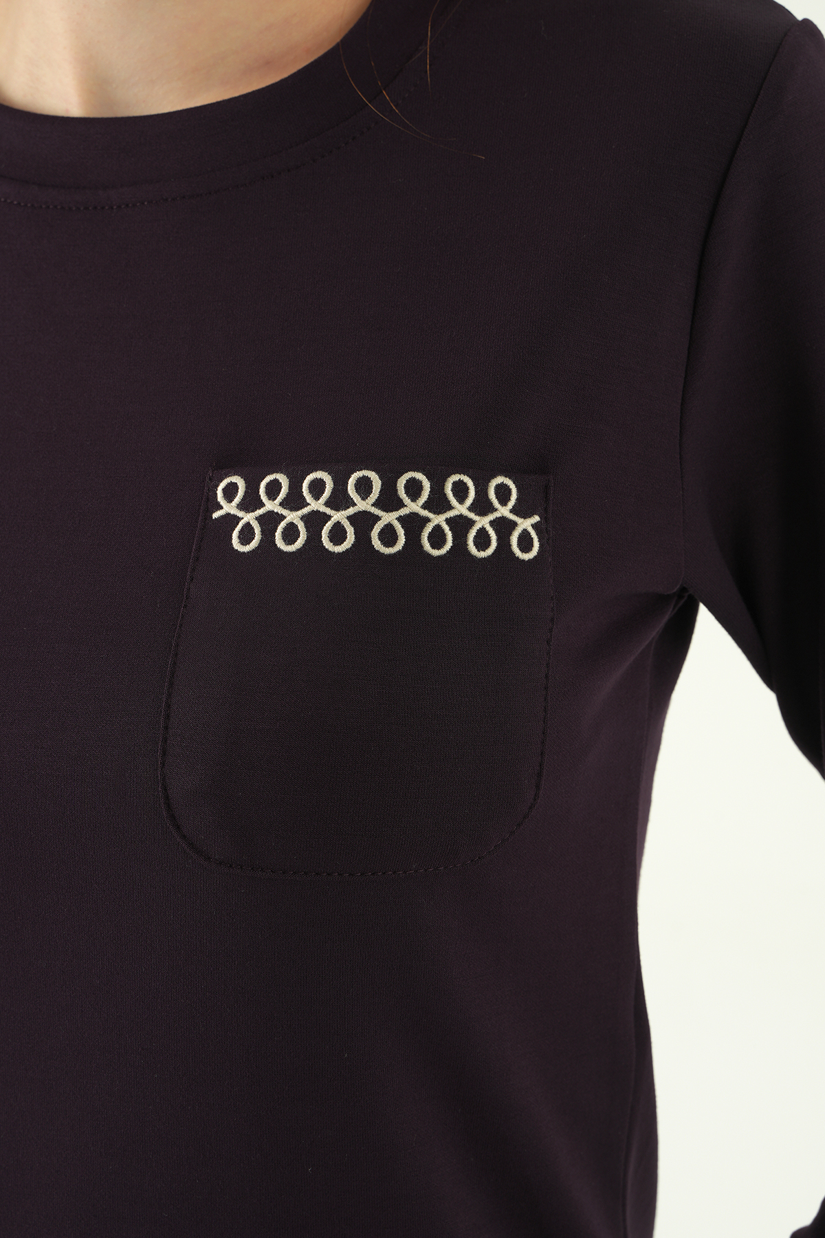 Mürdüm Bisiklet Yaka Cep Nakışlı Badi 8344A