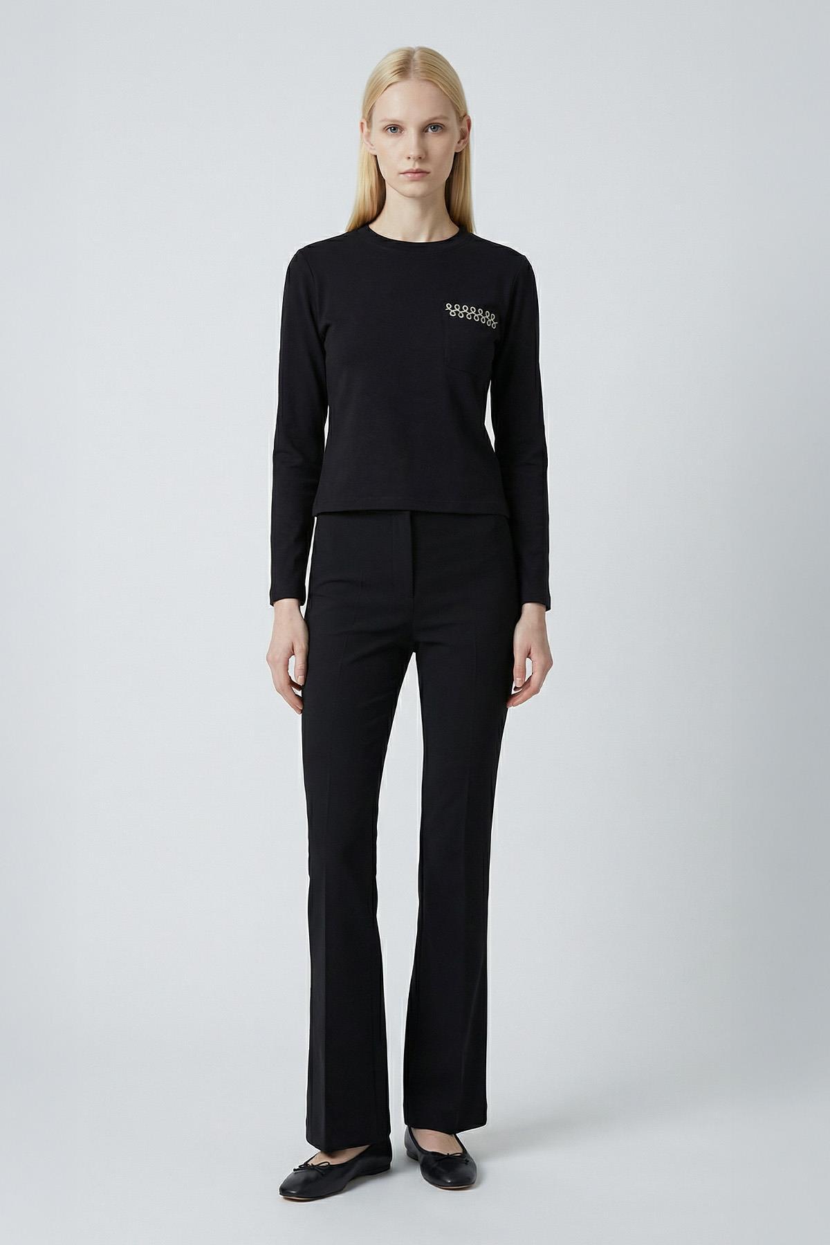 8344A Bisiklet Yaka Cep Nakışlı Badi Siyah