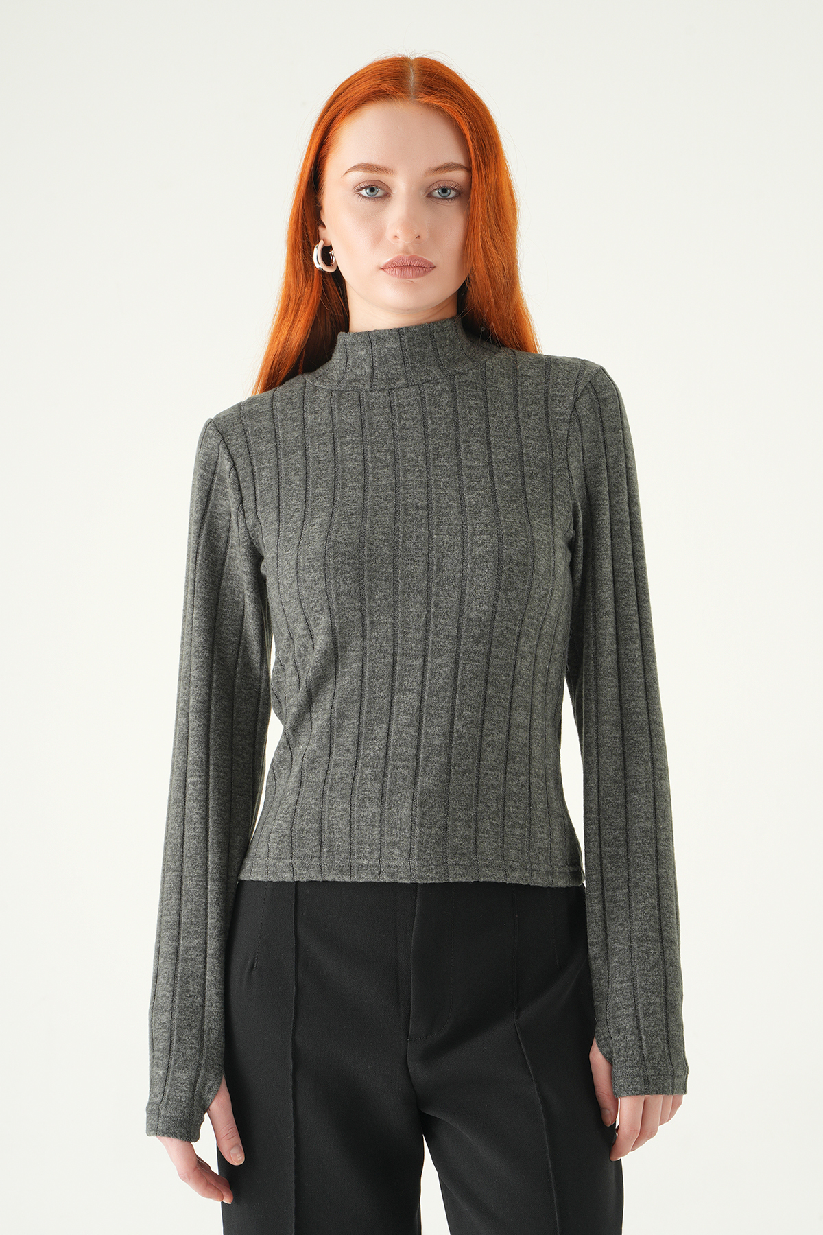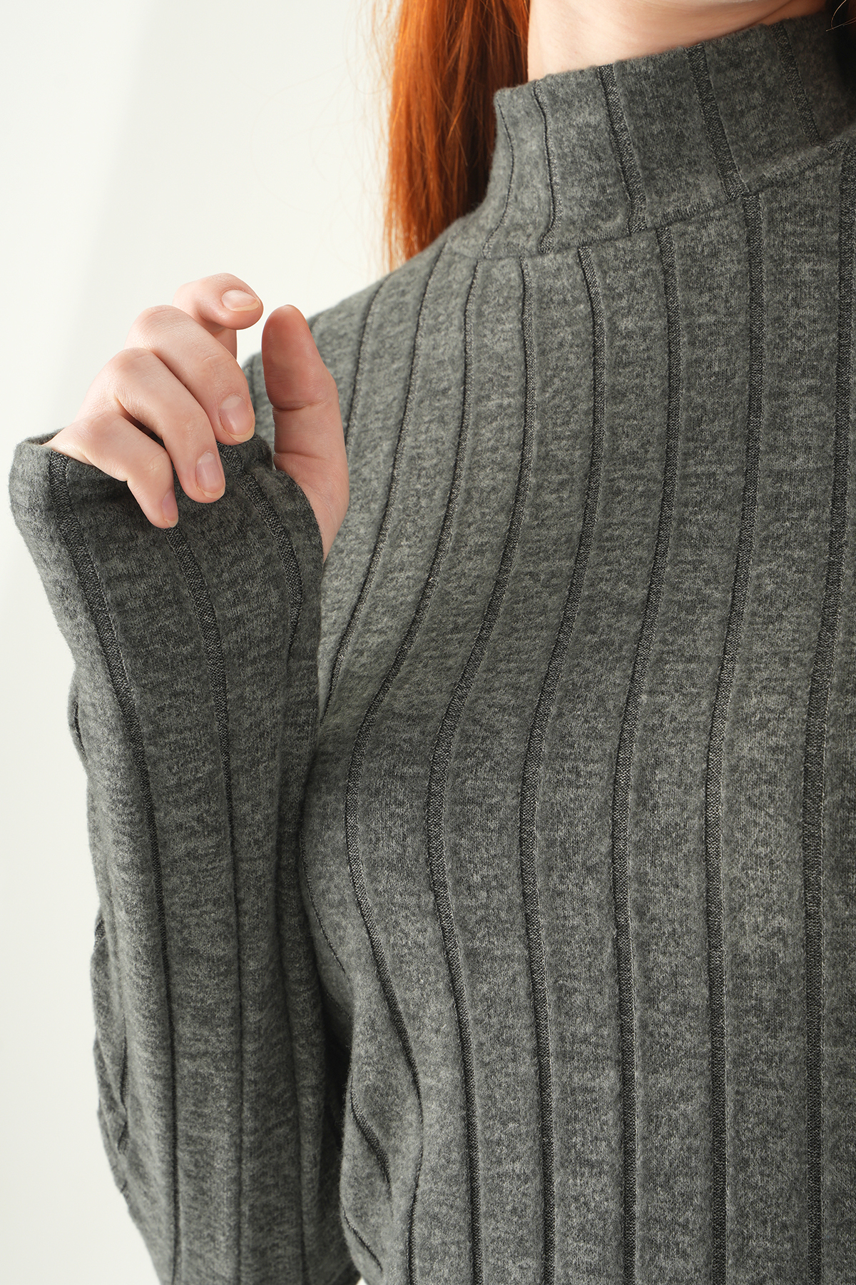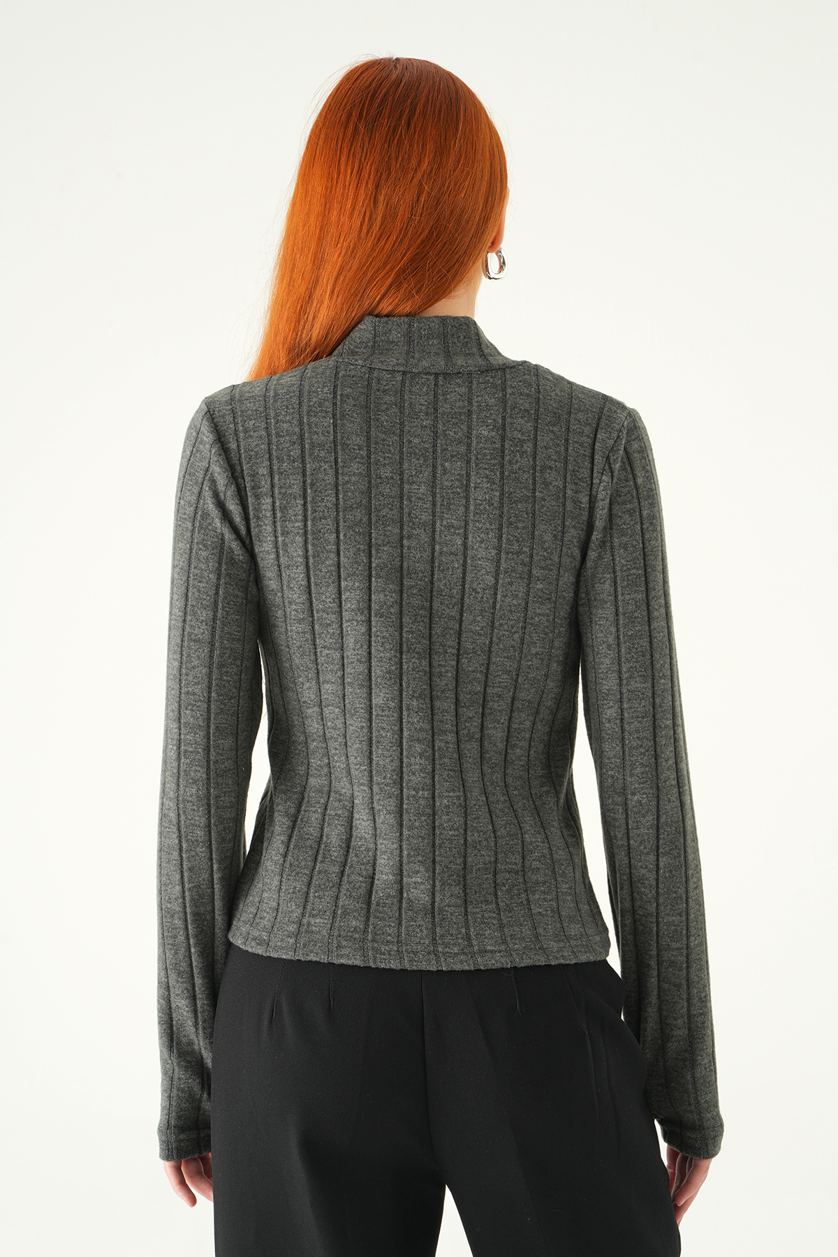 Antrasit Balıkçı Yaka Uzun Kol Bluz 8361A