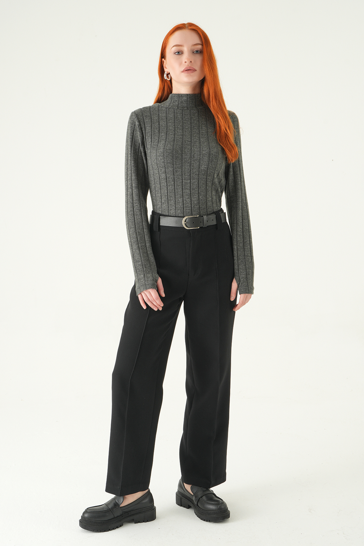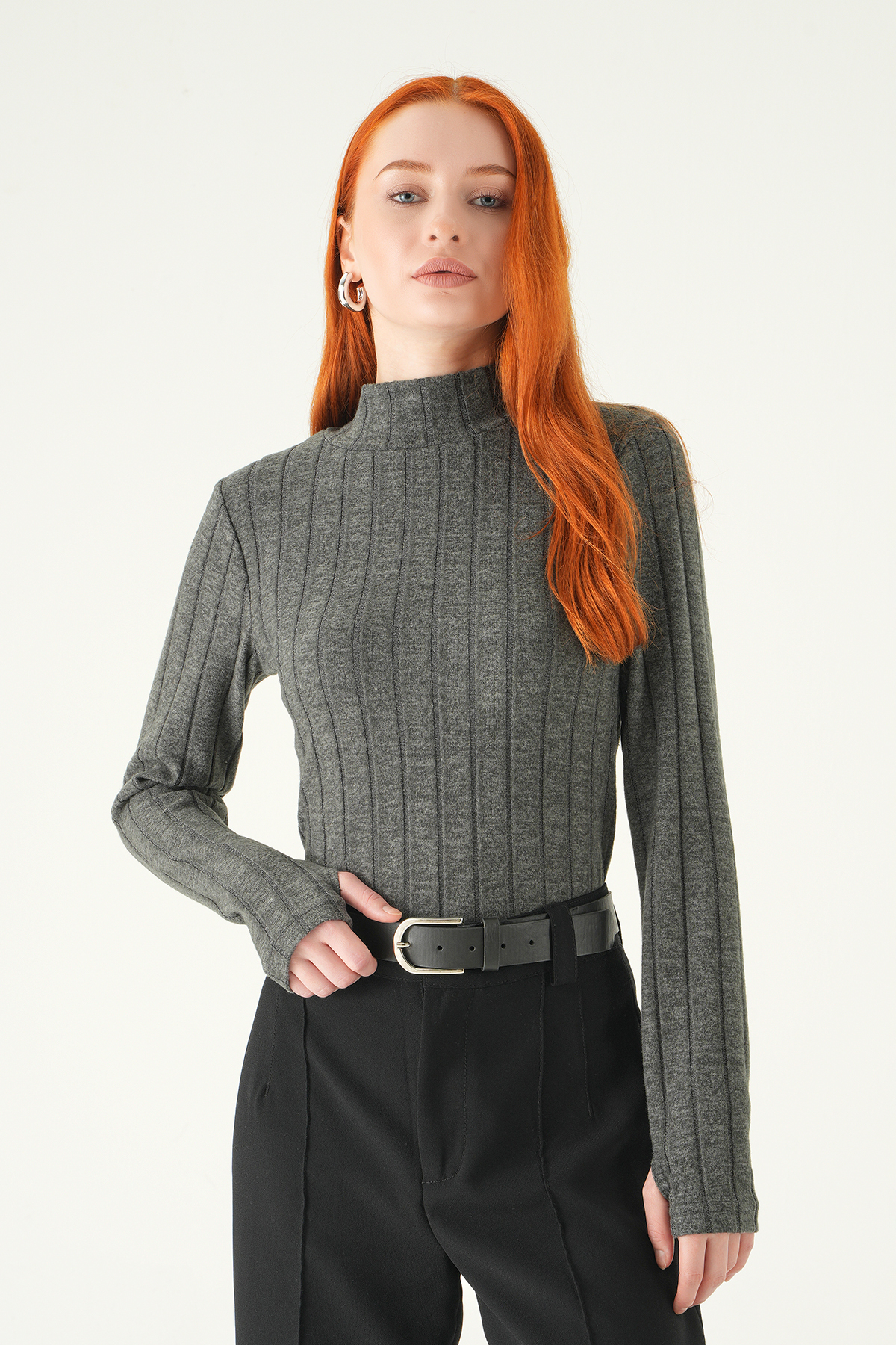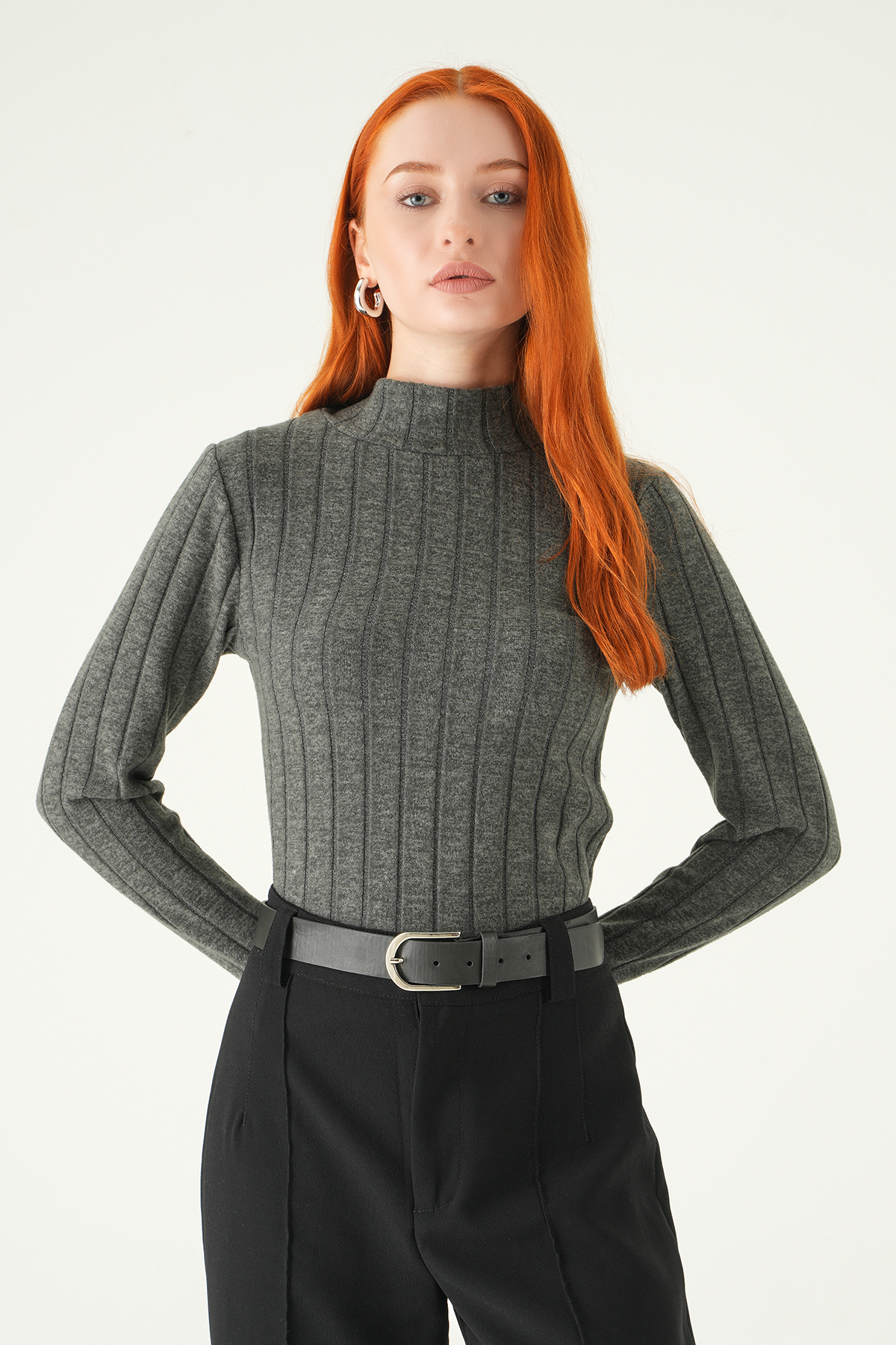 Antrasit Balıkçı Yaka Uzun Kol Bluz 8361A