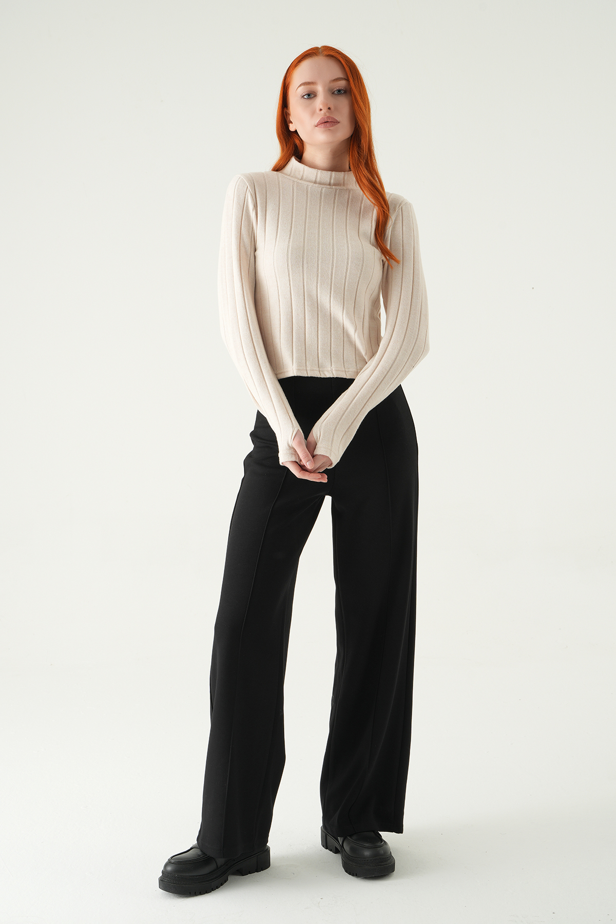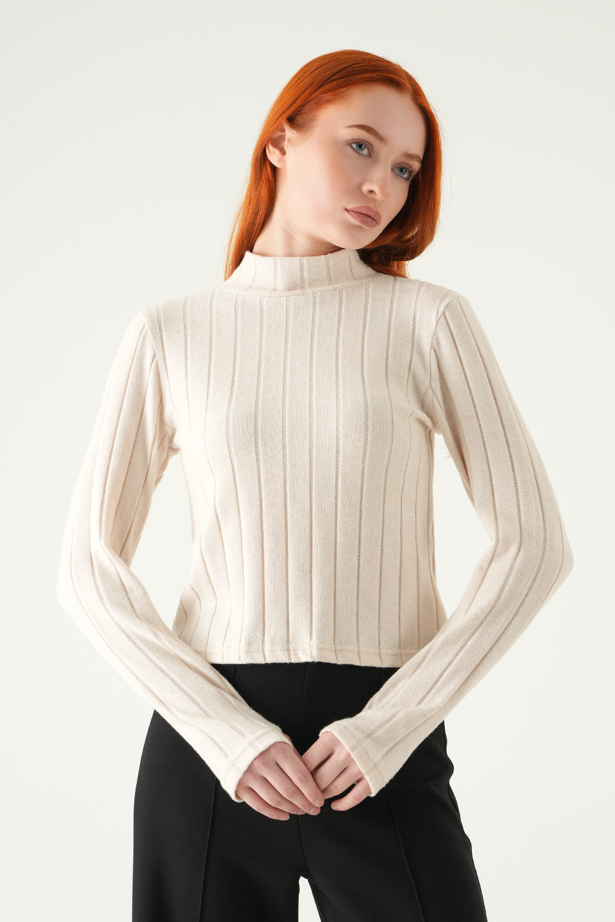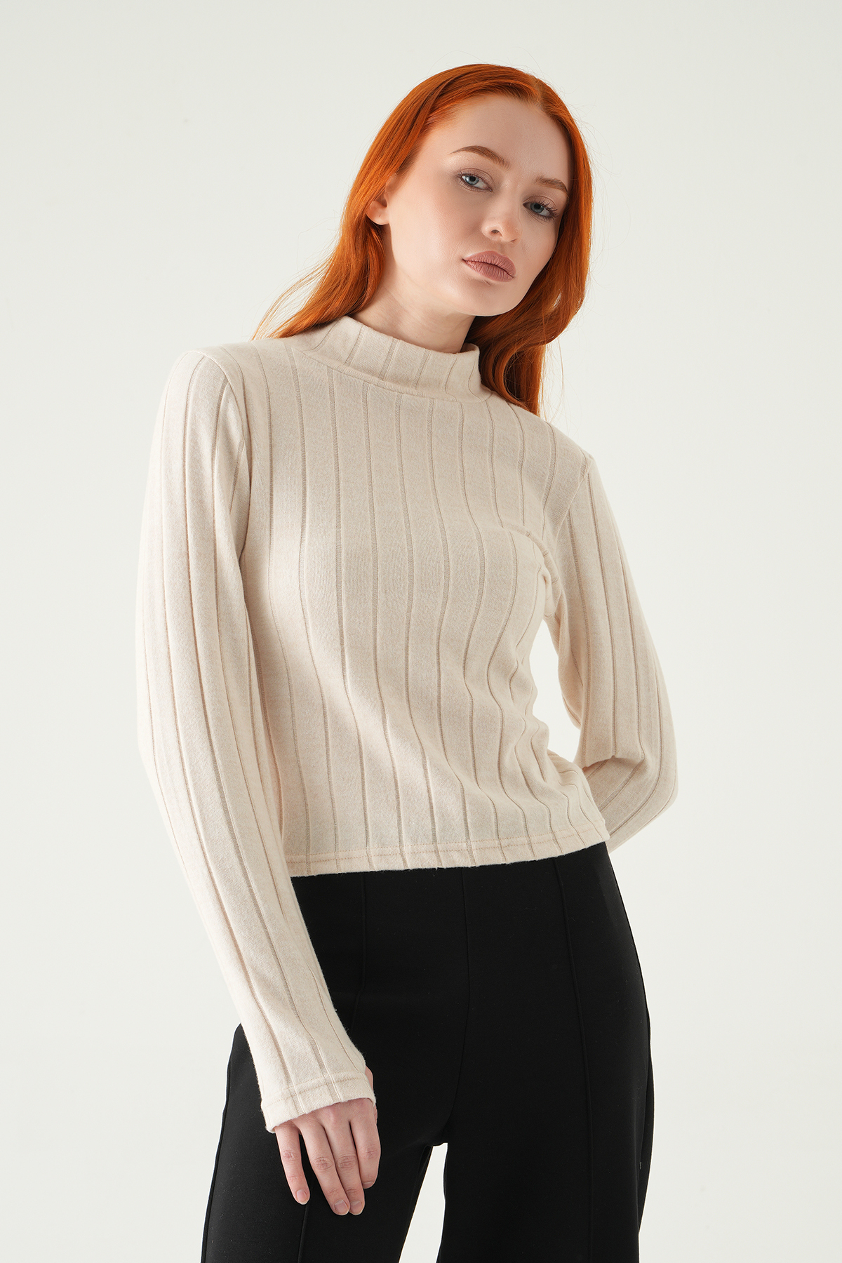 Bej Balıkçı Yaka Uzun Kol Bluz 8361A