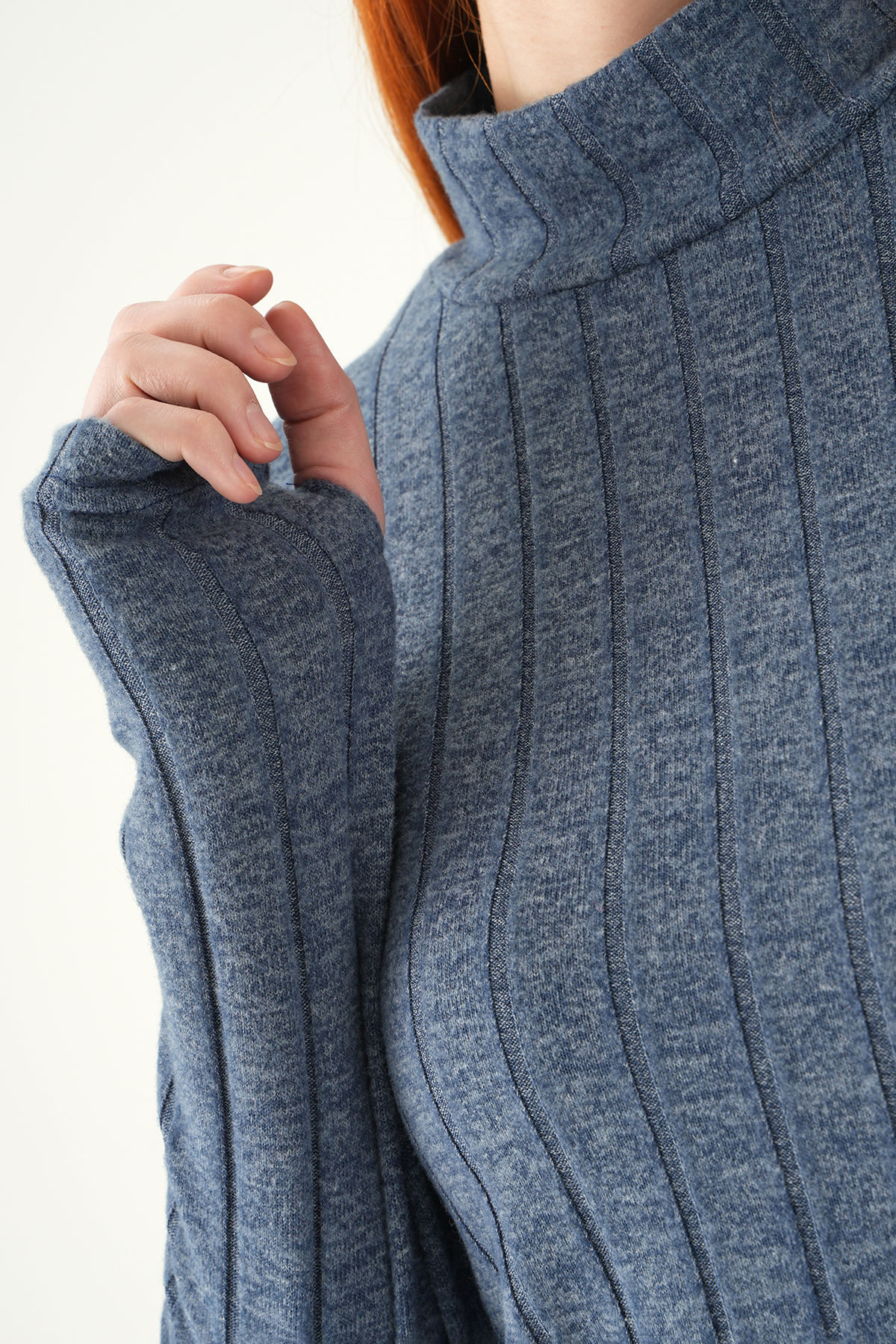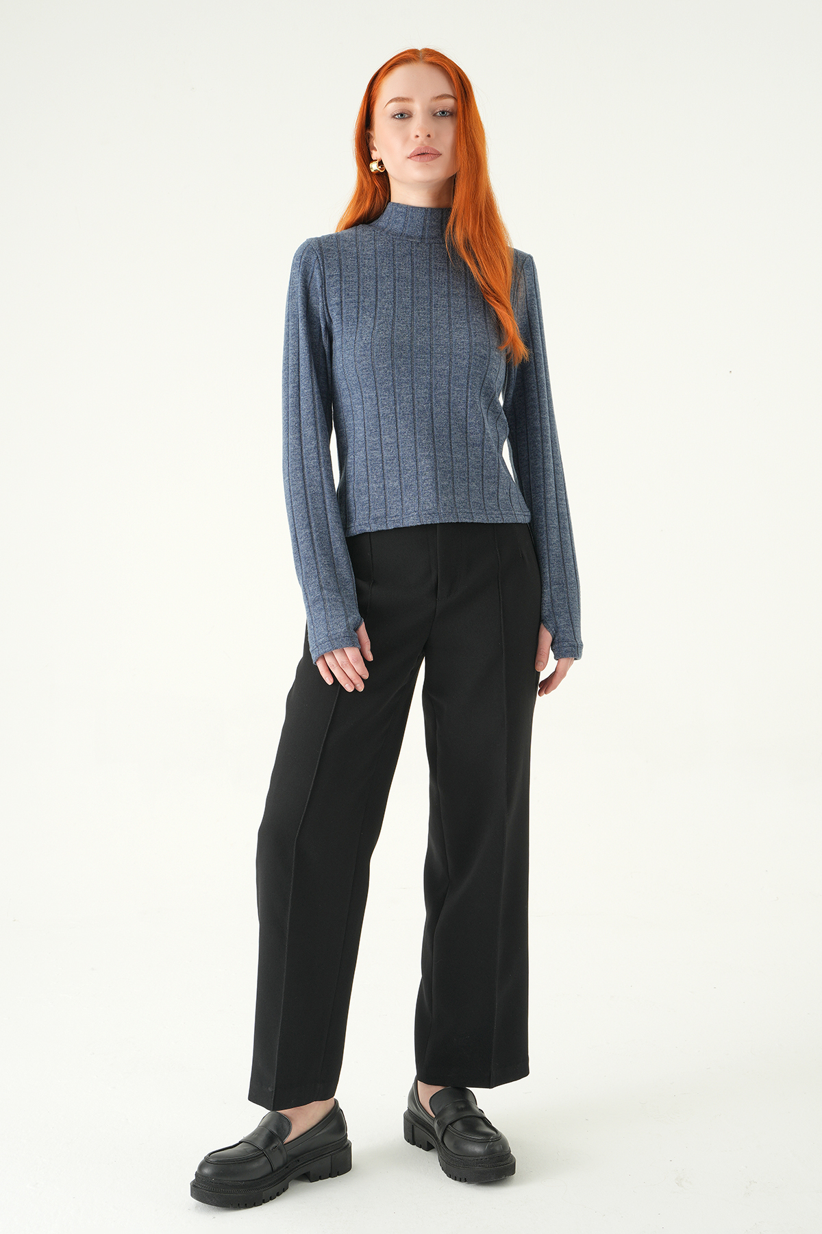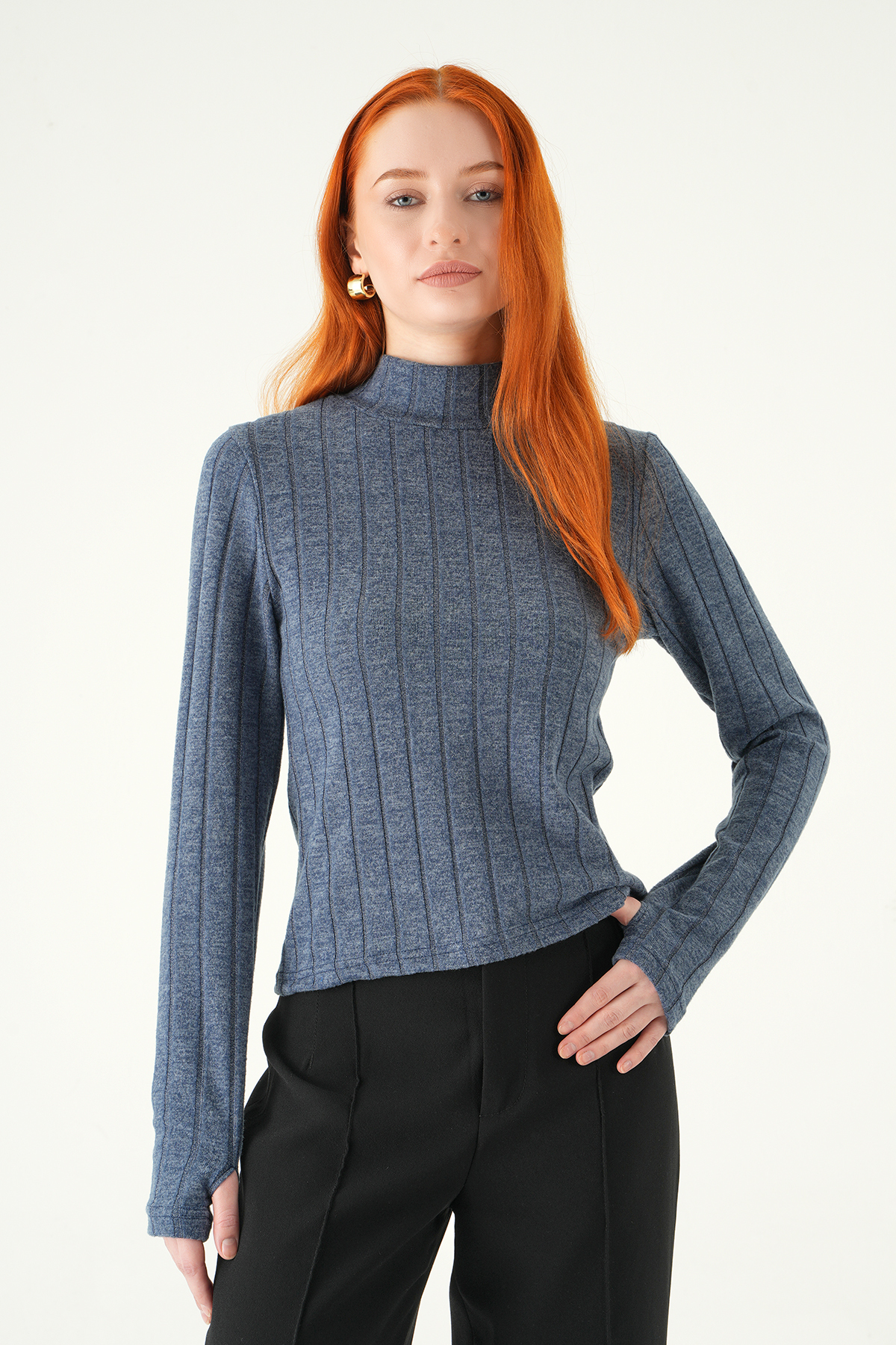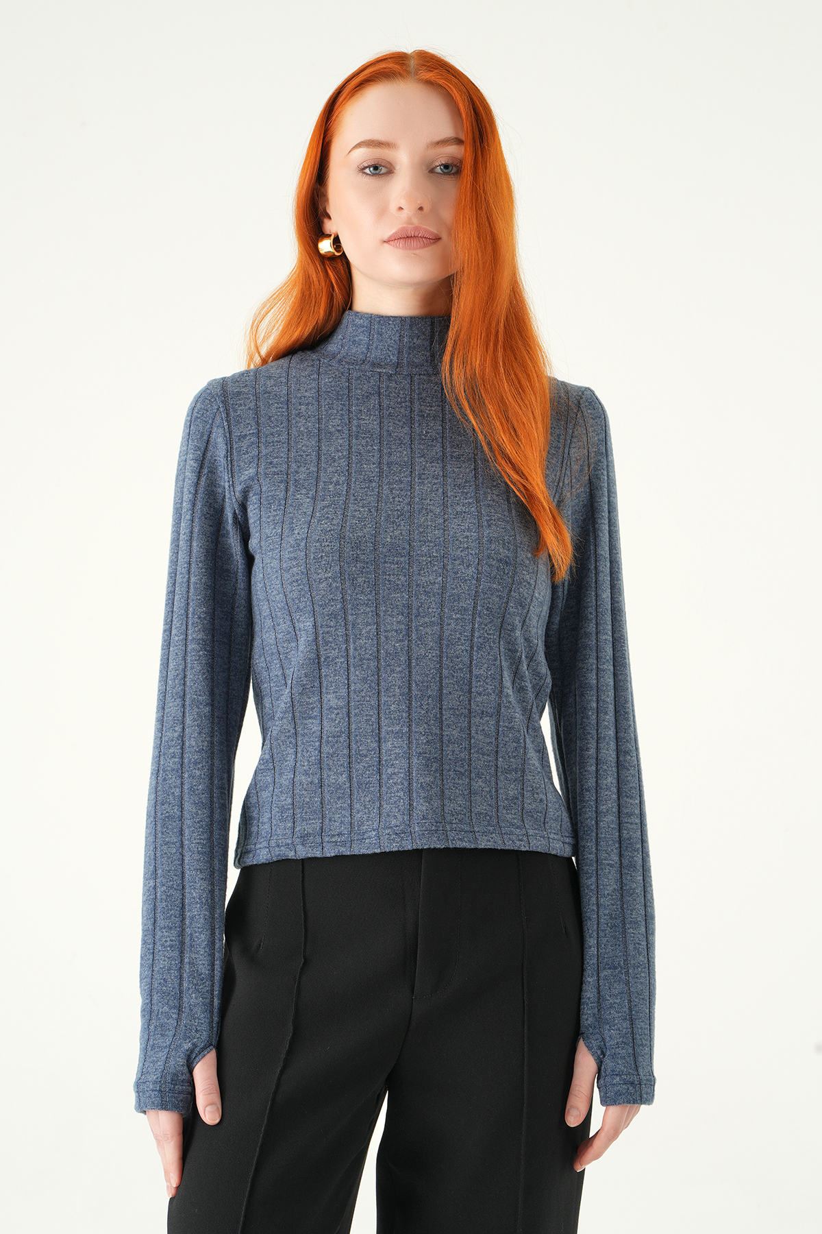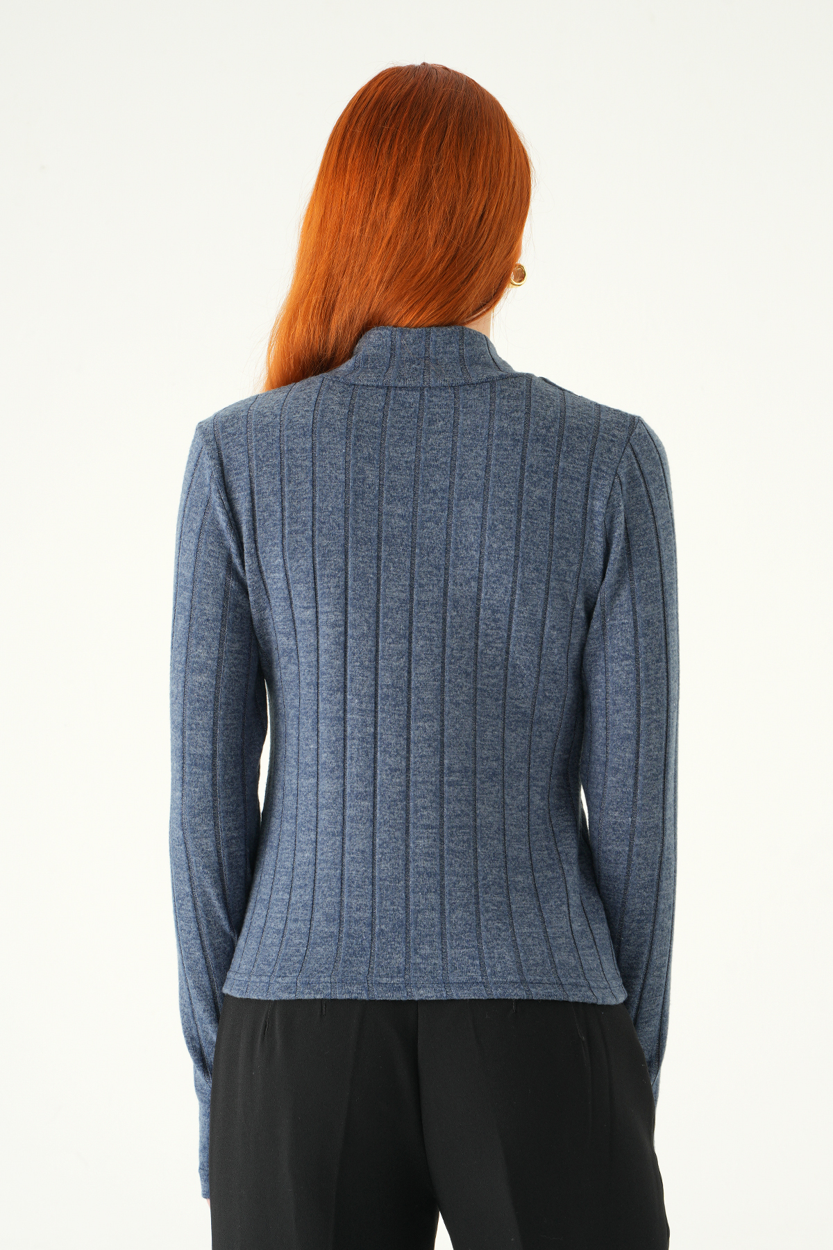 İndigo Balıkçı Yaka Uzun Kol Bluz 8361A