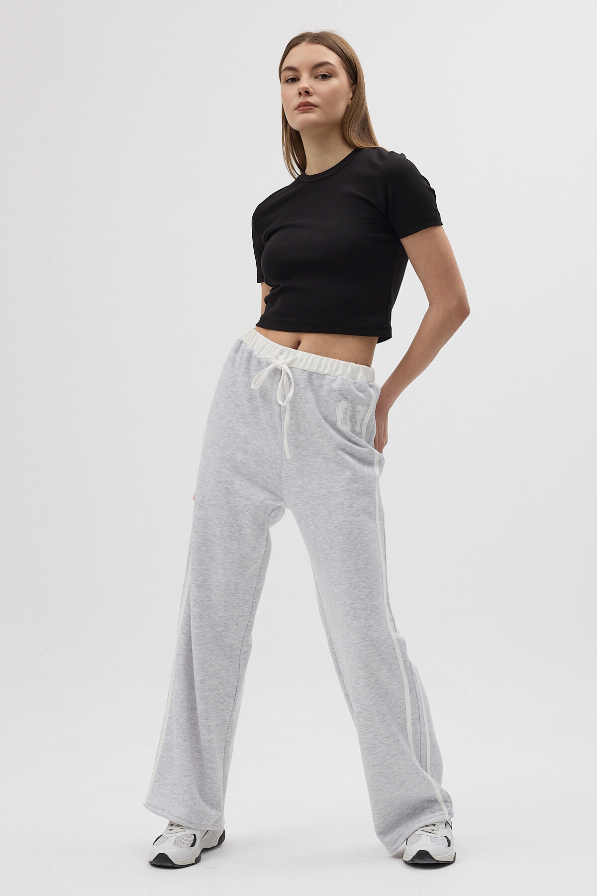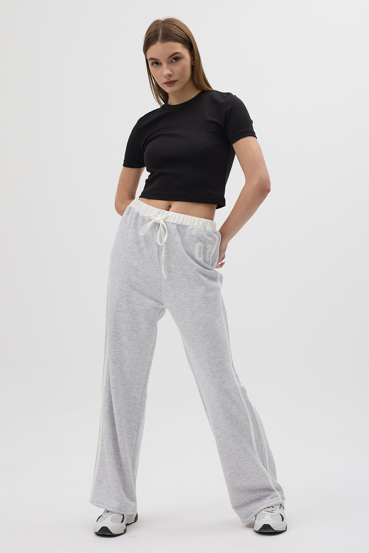 Gri Baskılı Bel Lastikli Eşofman 8367A