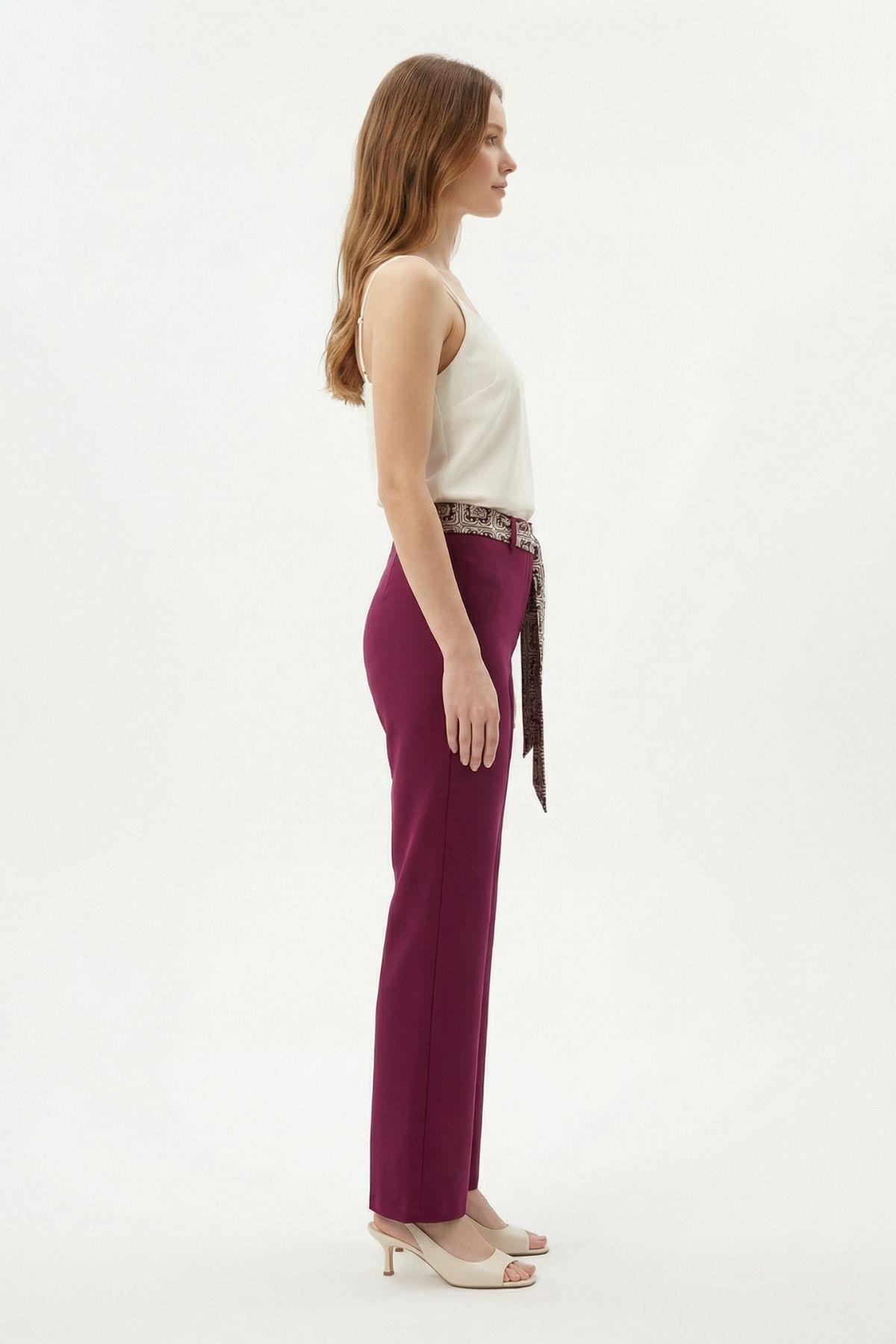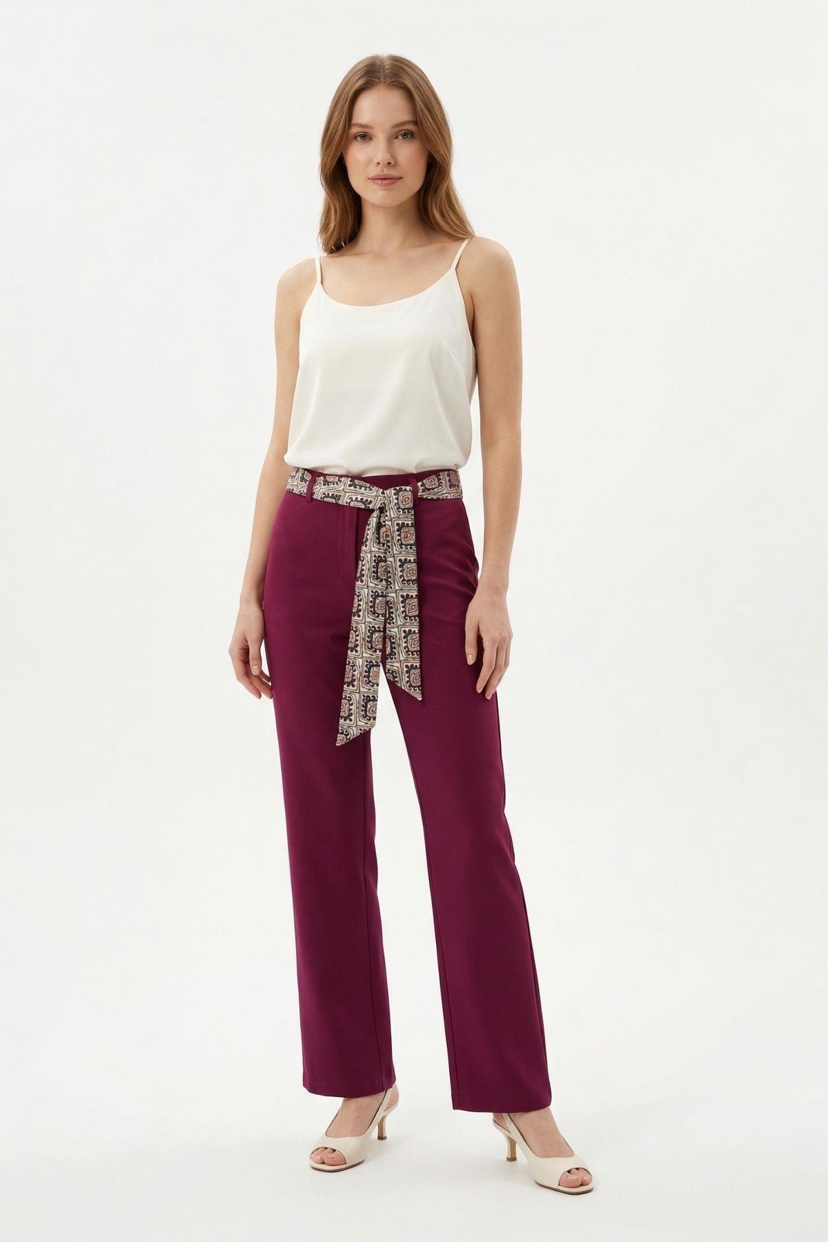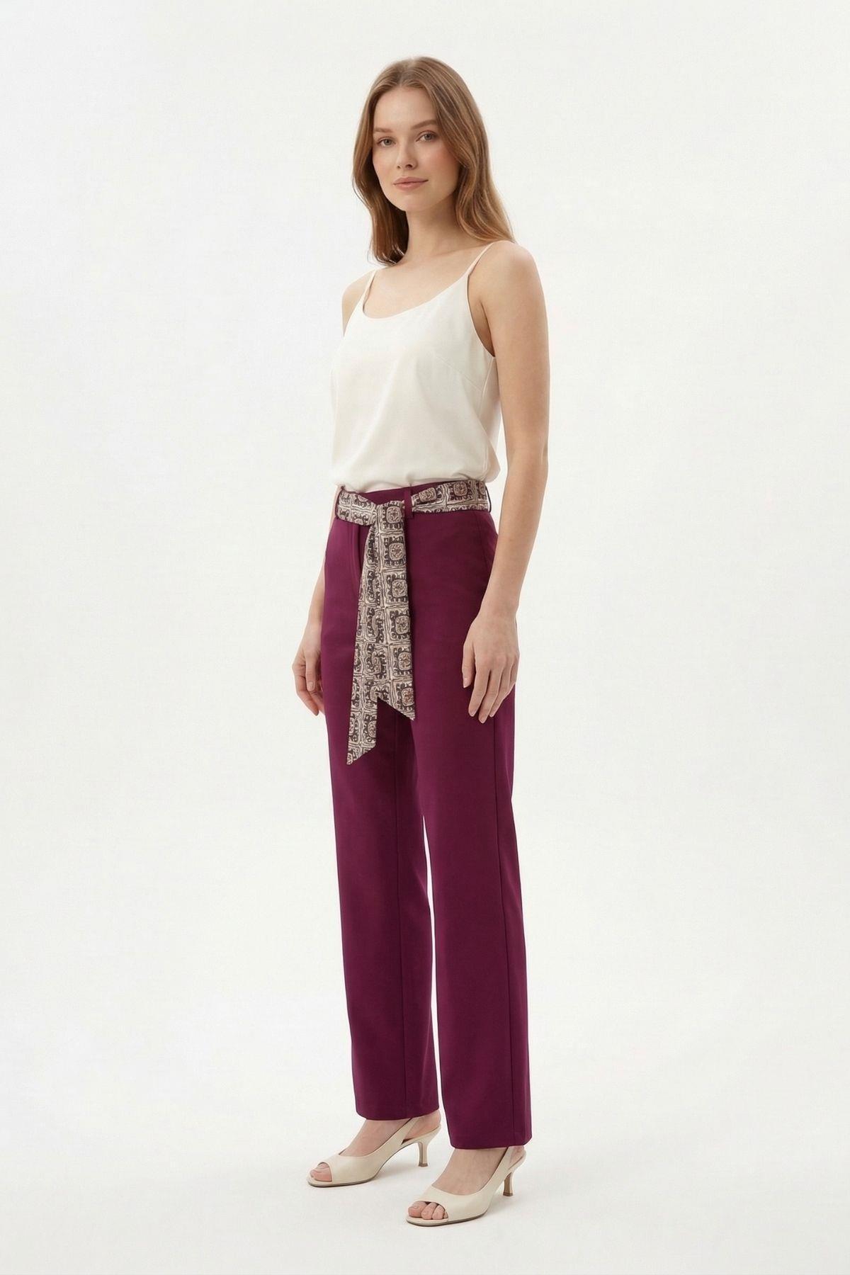 8372A Fular Detay Pantolon Mürdüm