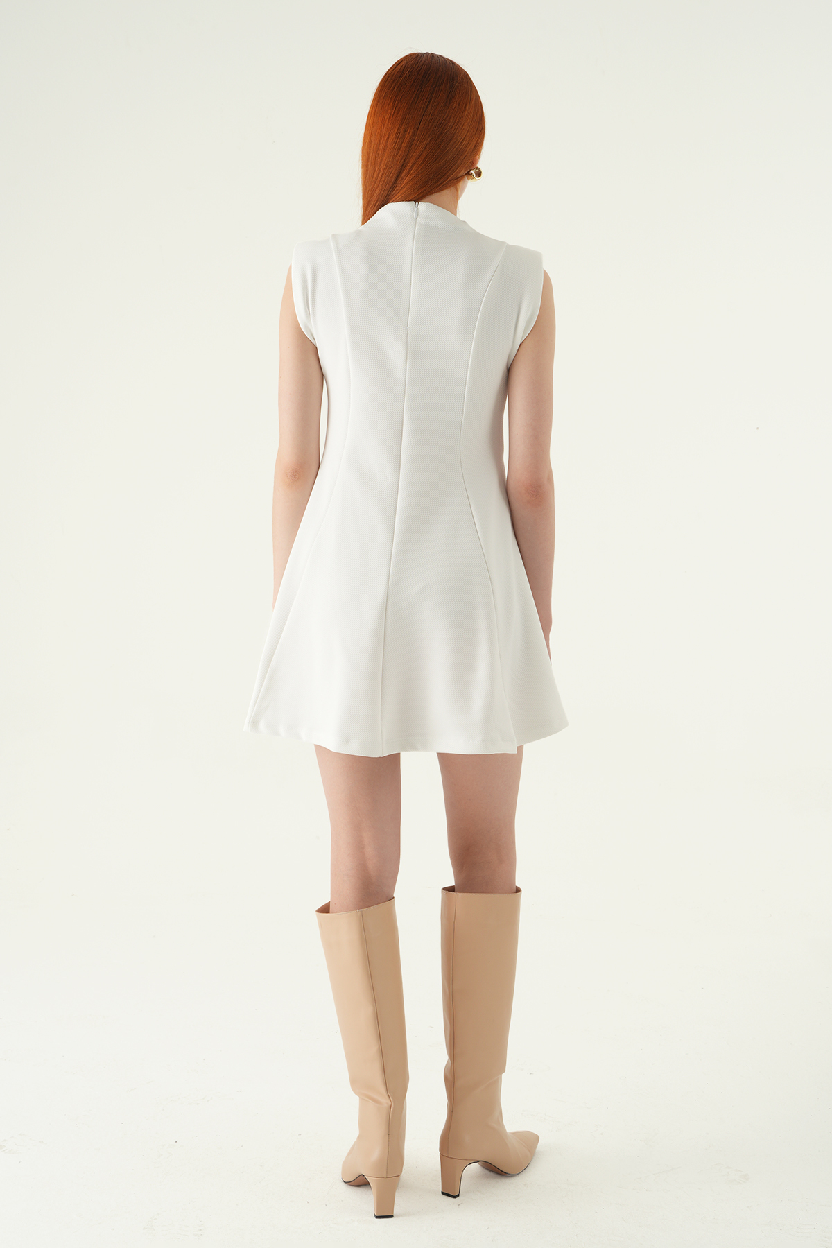Beyaz Kemerli Çiçek Desenli Elbise 35559 - RAYS Beyaz Kemerli Çiçek Desenli Elbise 35559 - RAYS (1)