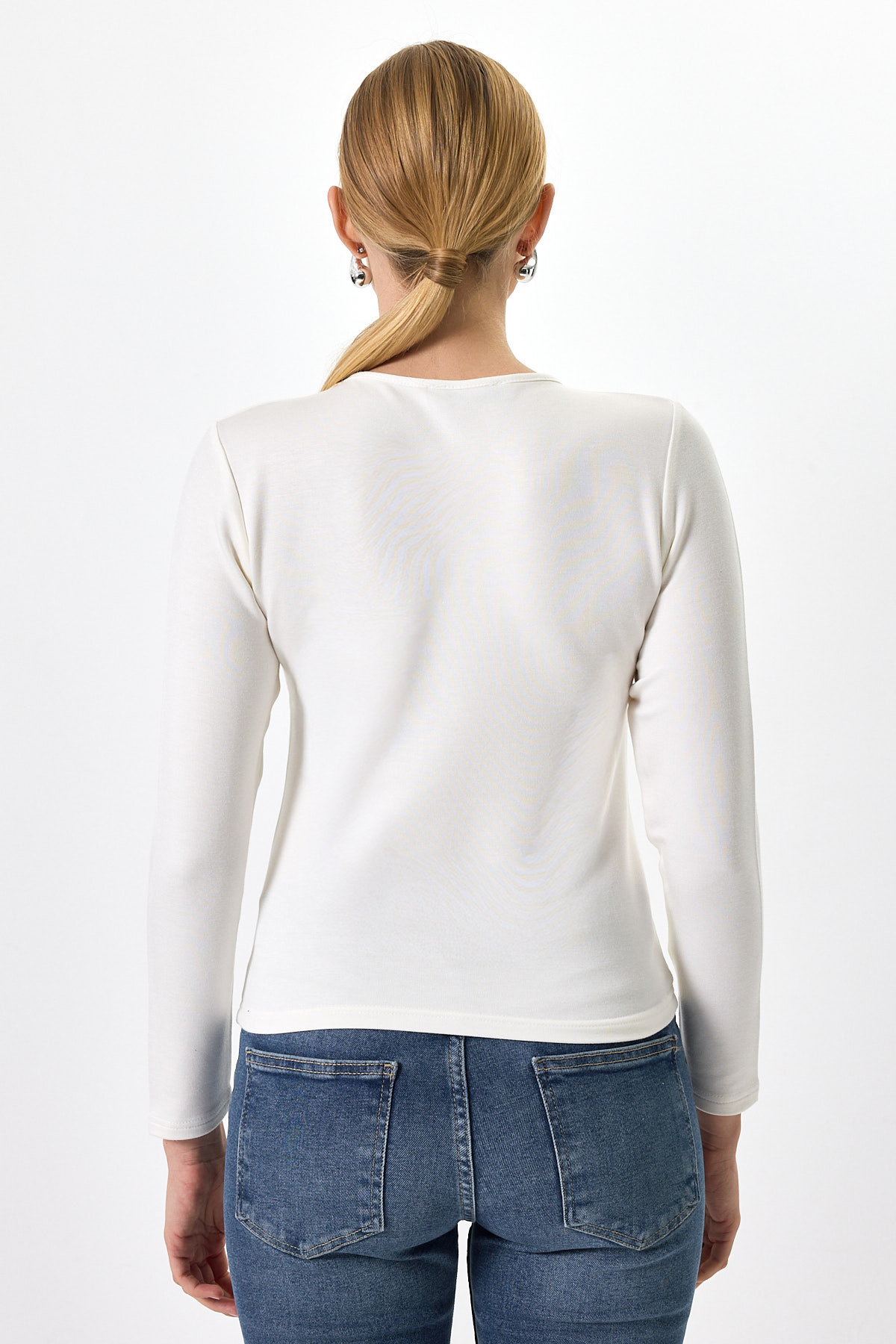 8256 Taşlı Uzun kol Bluz Ekru - RAYS
