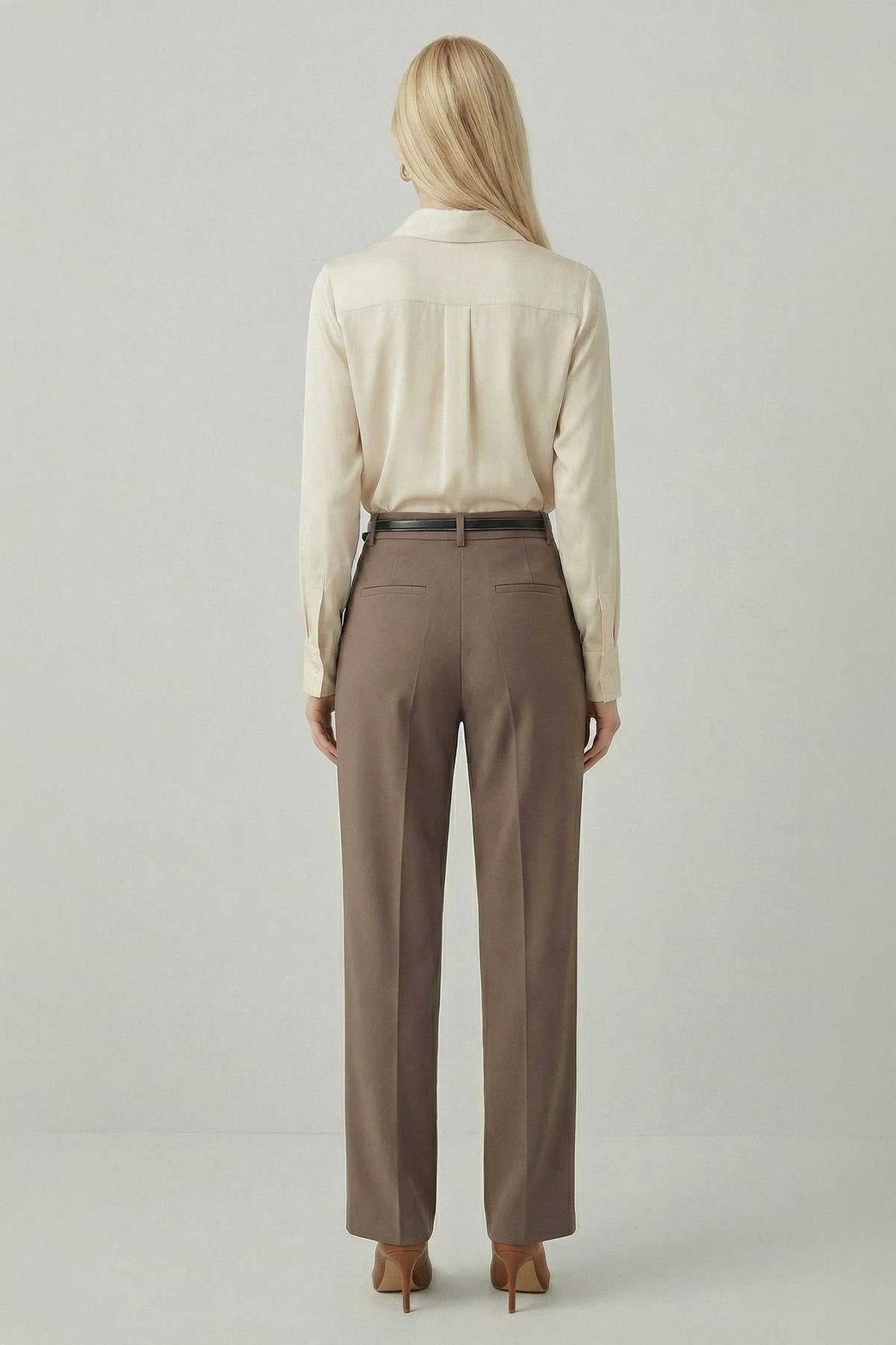 8399A Ön Pileli Kemerli Pantolon Vizon
