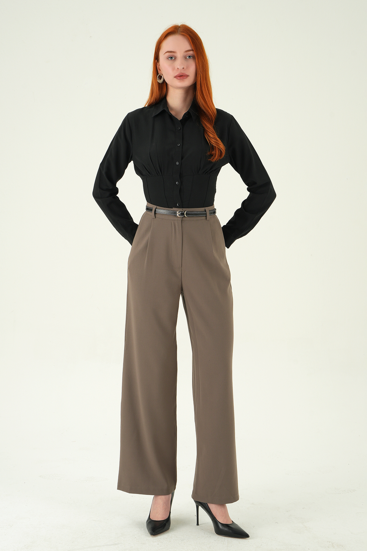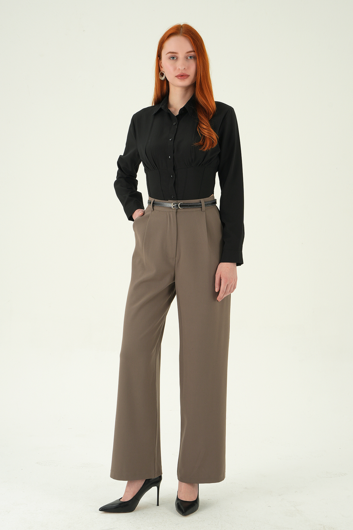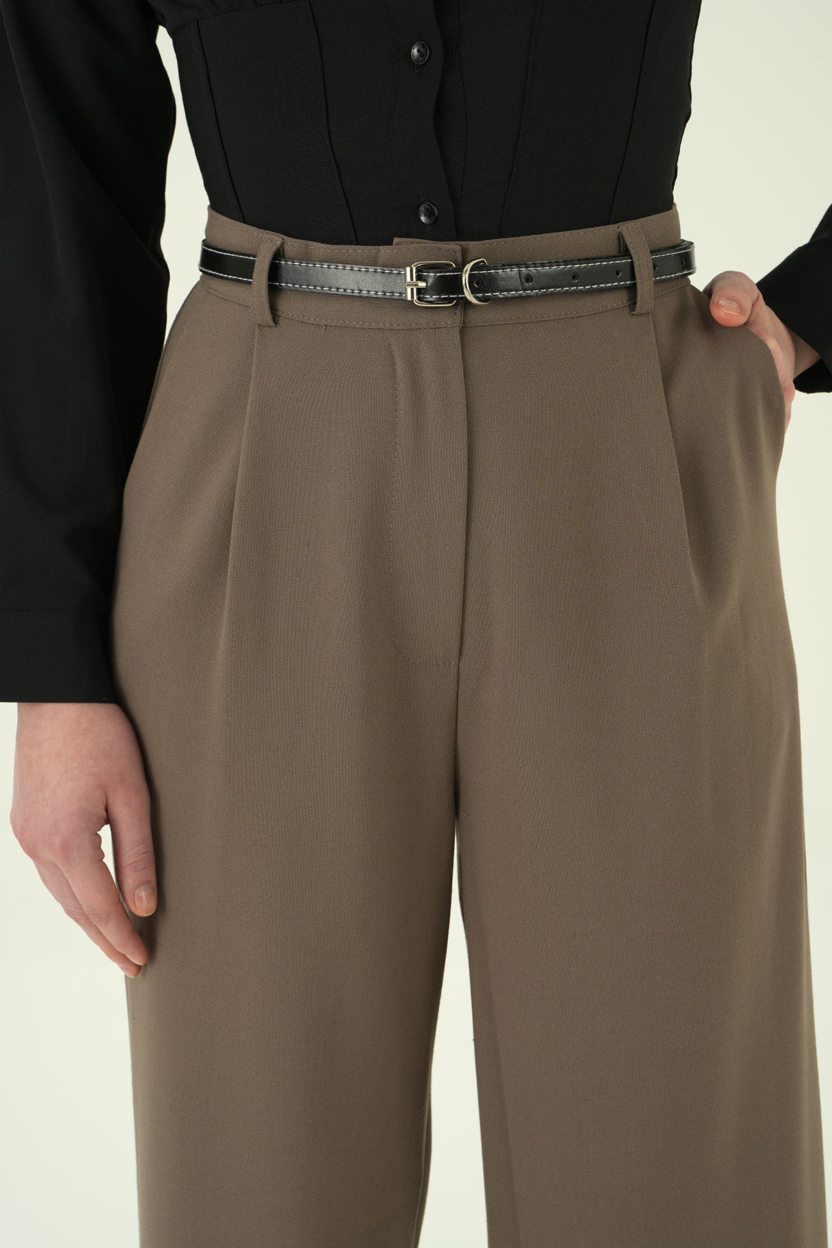 Kahve Kemer Detay Palazzo Pantolon 8421A - RAYS Kahve Kemer Detay Palazzo Pantolon 8421A - RAYS (1)
