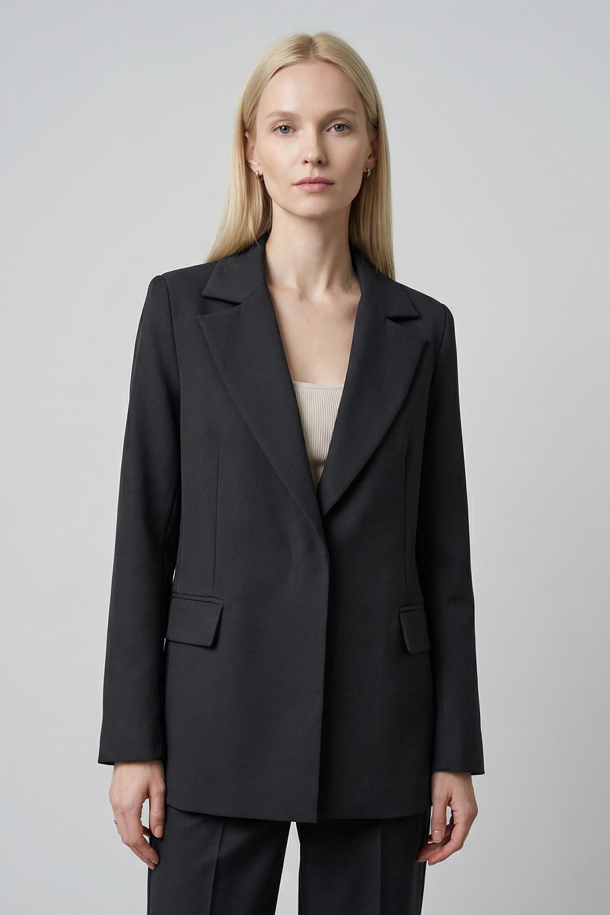8835 Kemer Detaylı Ceket Siyah