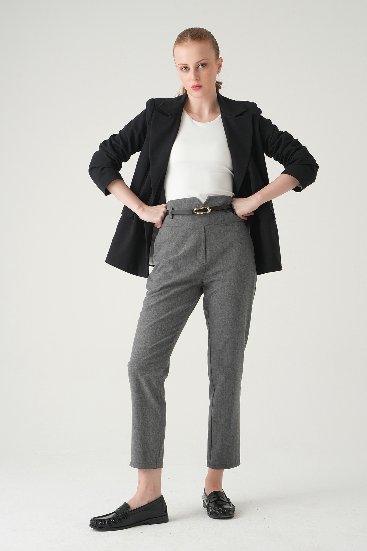 Gri Kemer Detay Palazzo Pantolon 8421A - RAYS Gri Kemer Detay Palazzo Pantolon 8421A - RAYS (1)