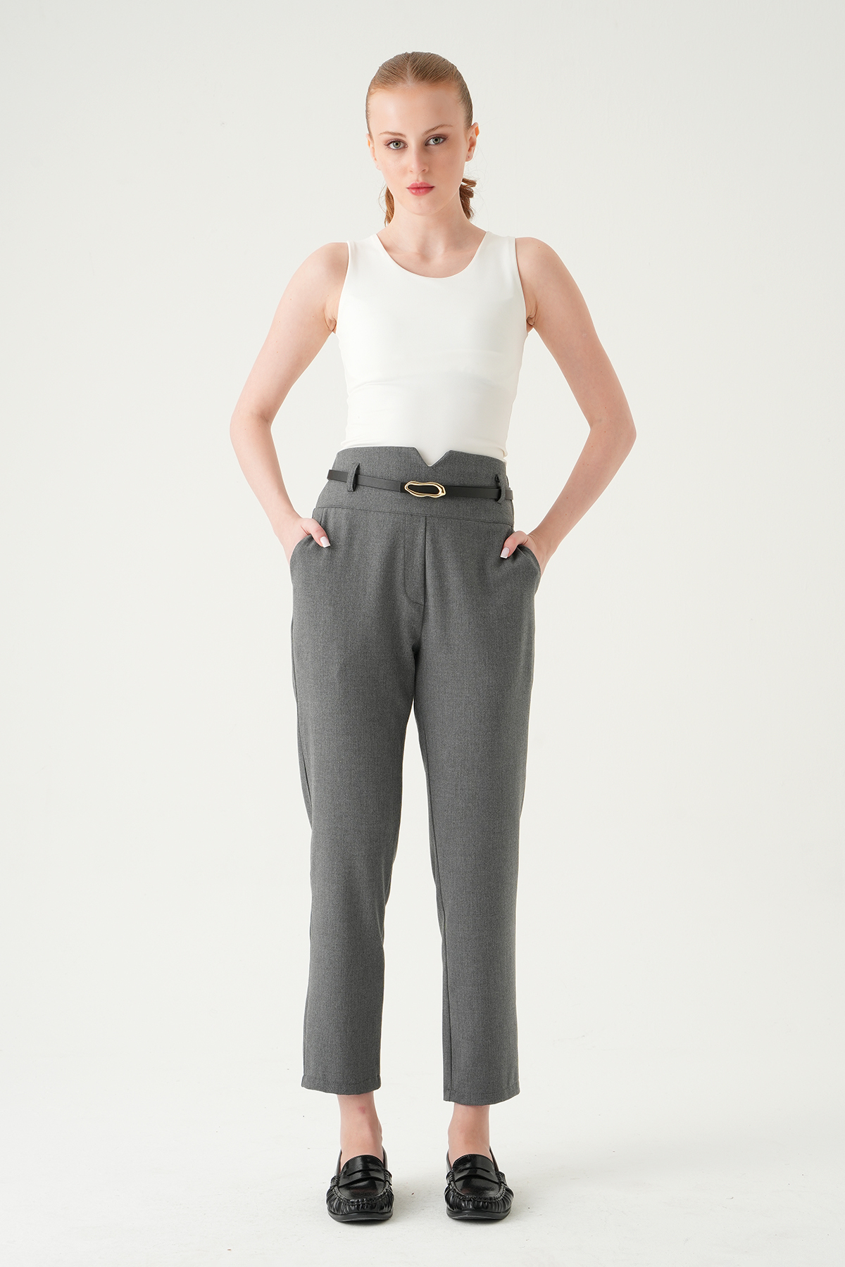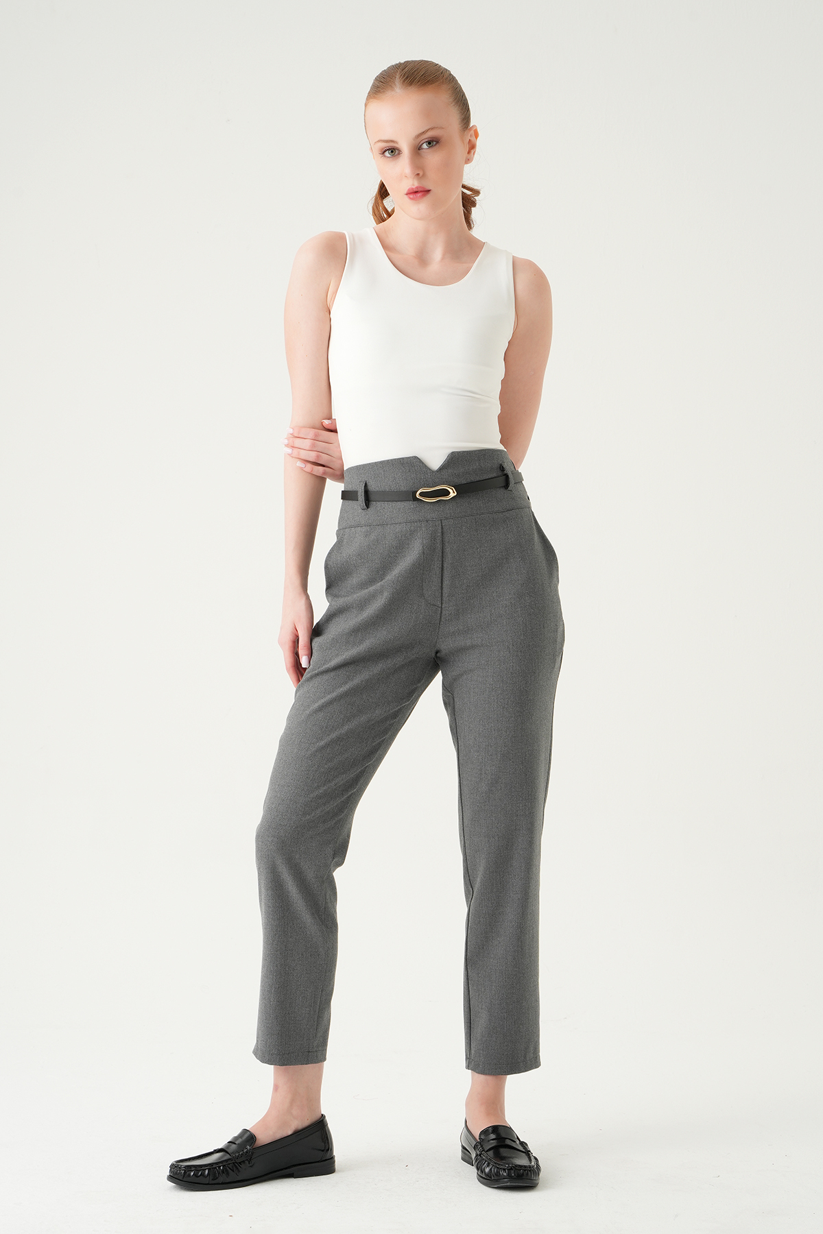 Antrasit Bel V Kesim Kemerli Pantolon 8404A