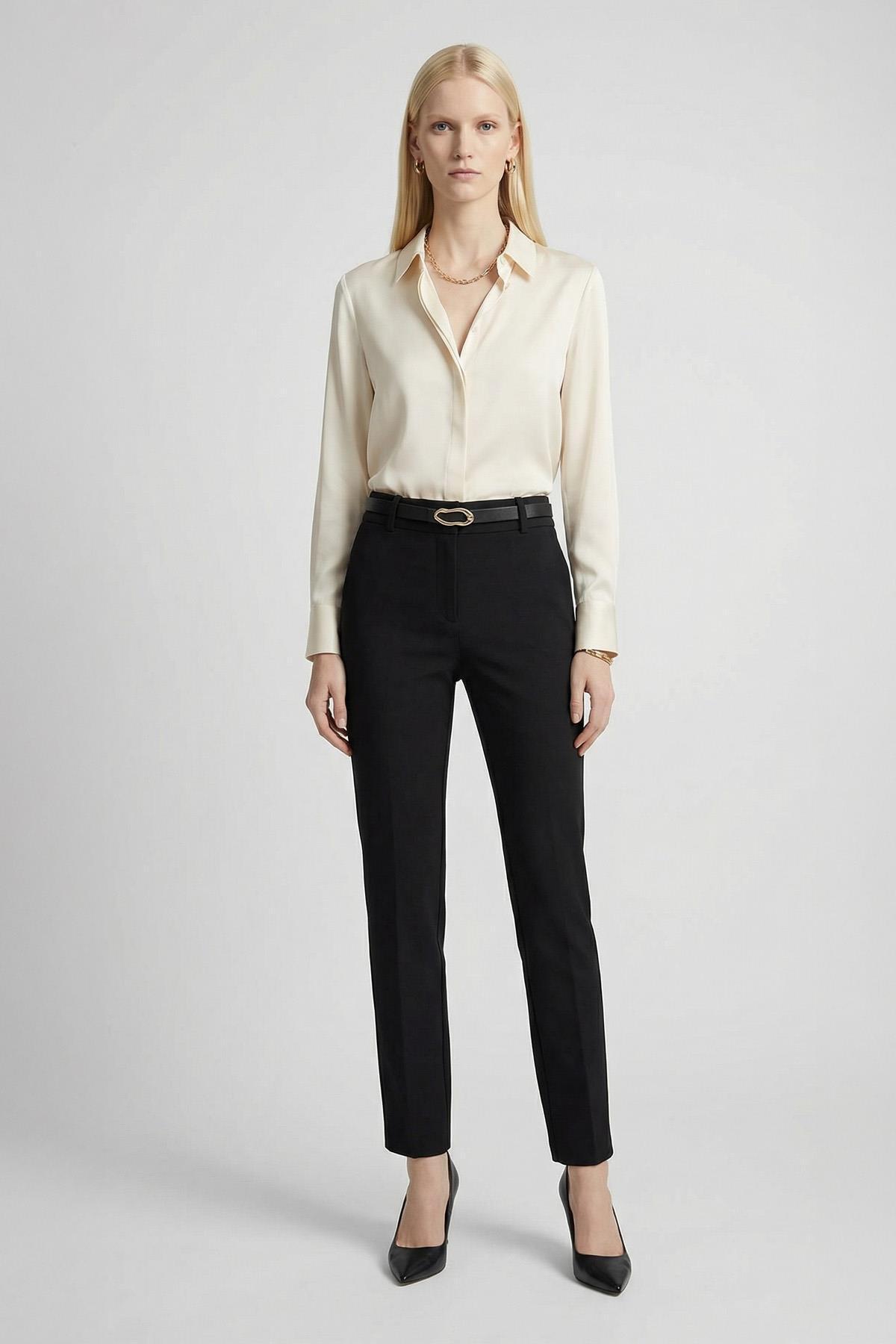 8404A Bel V Kesim Kemerli Pantolon Siyah
