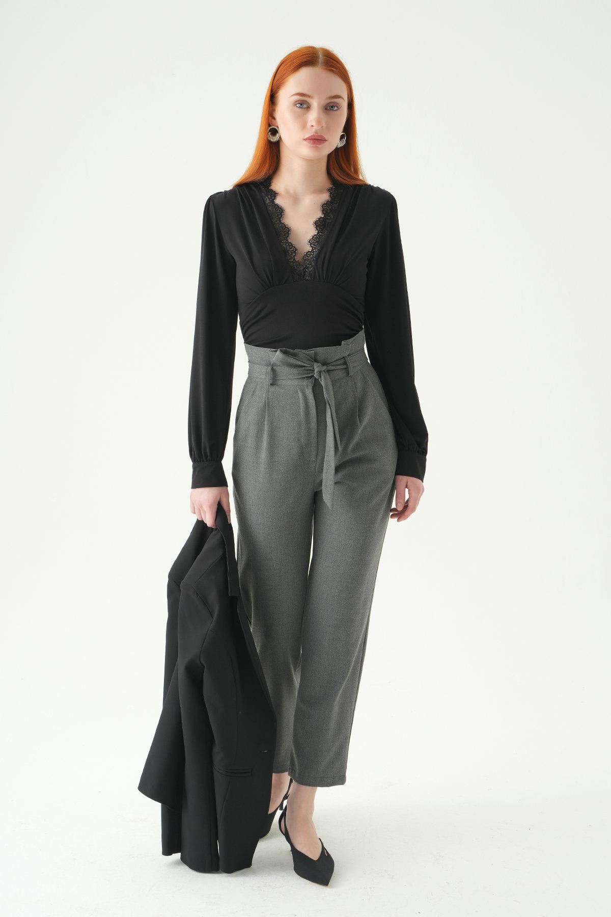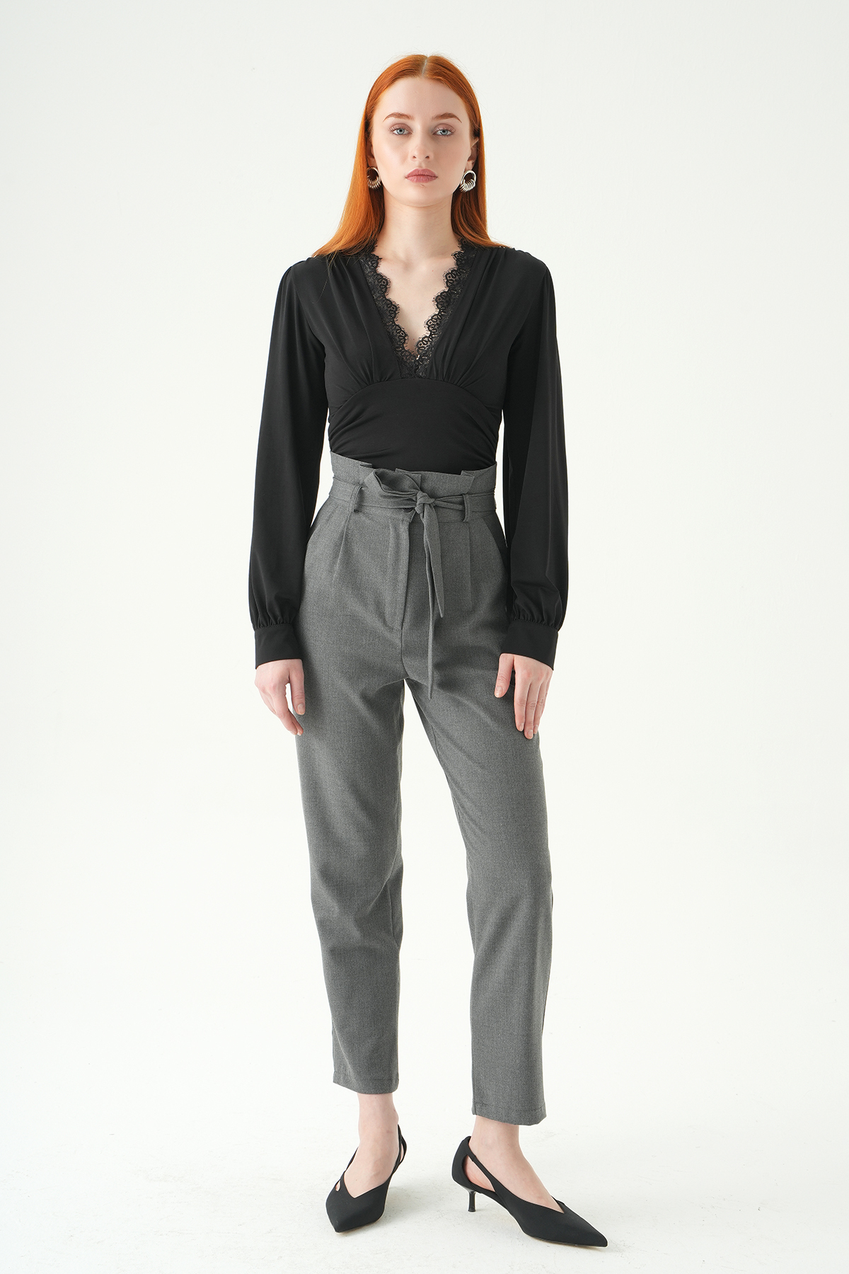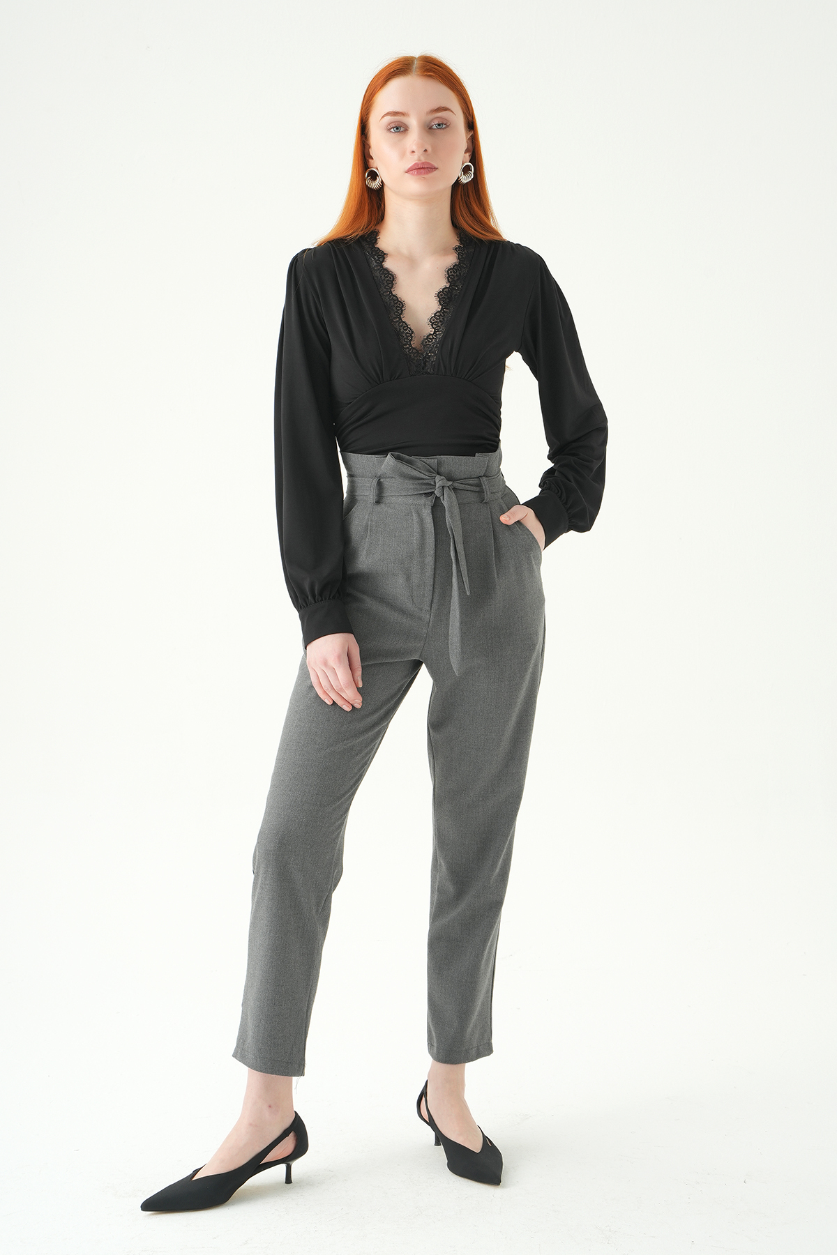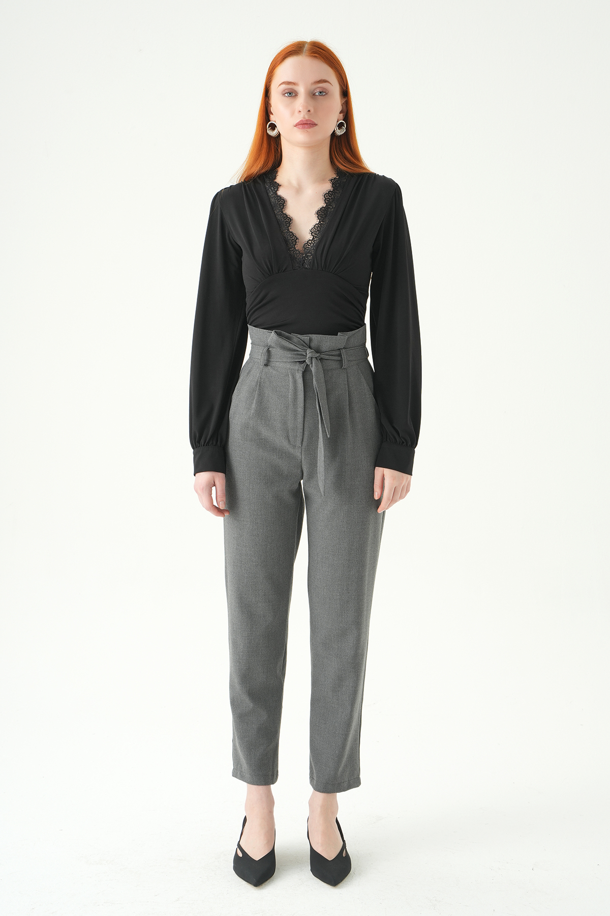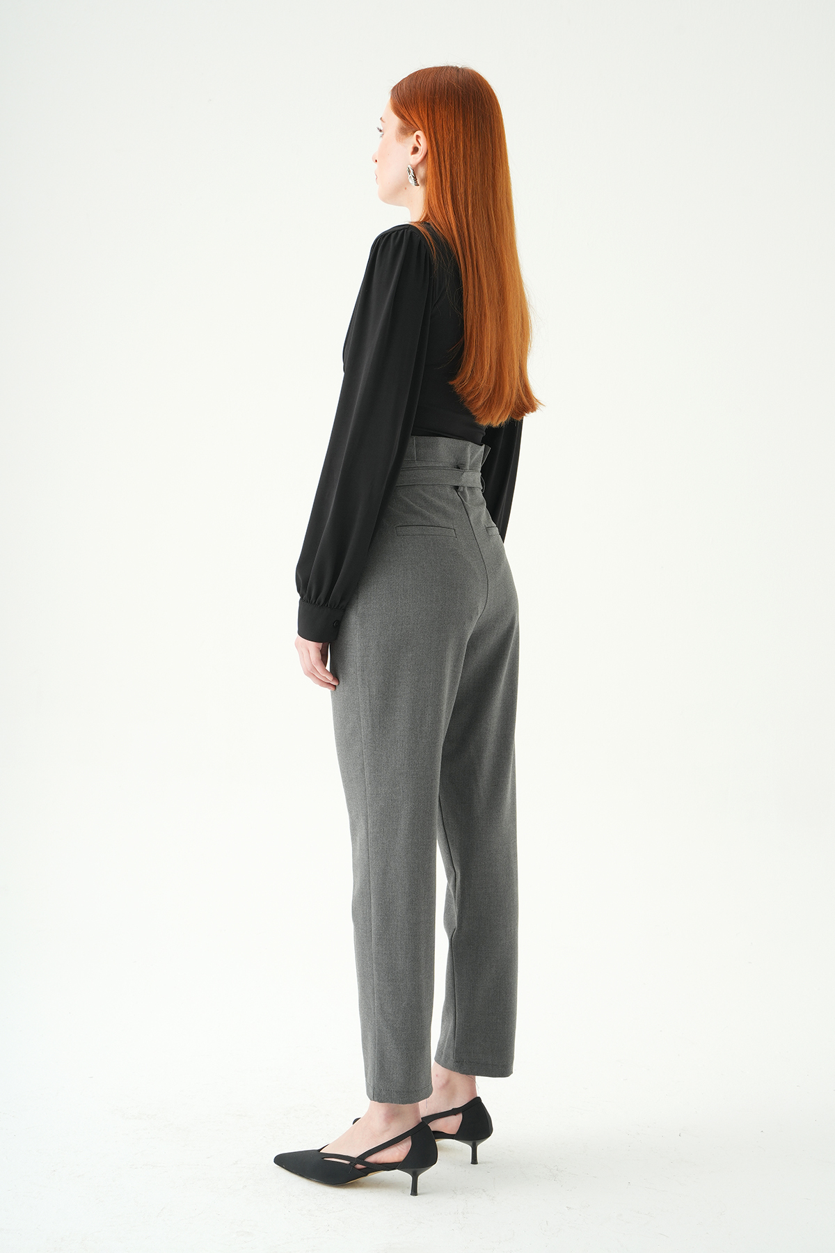 Antrasit Çift Düğmeli Kuşaklı Pantolon 8407A