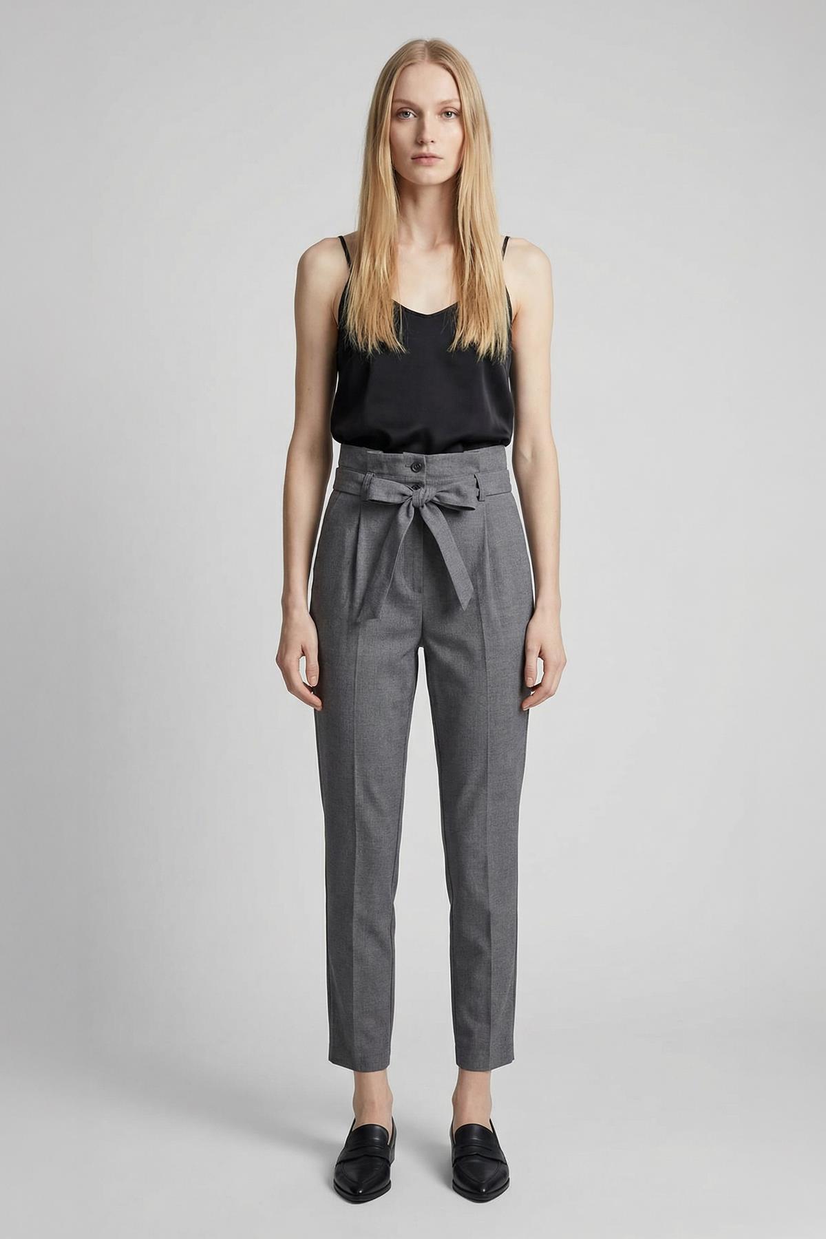 8407A Çift Düğmeli Kuşaklı Pantolon Gri