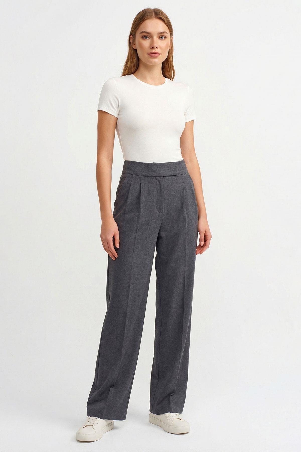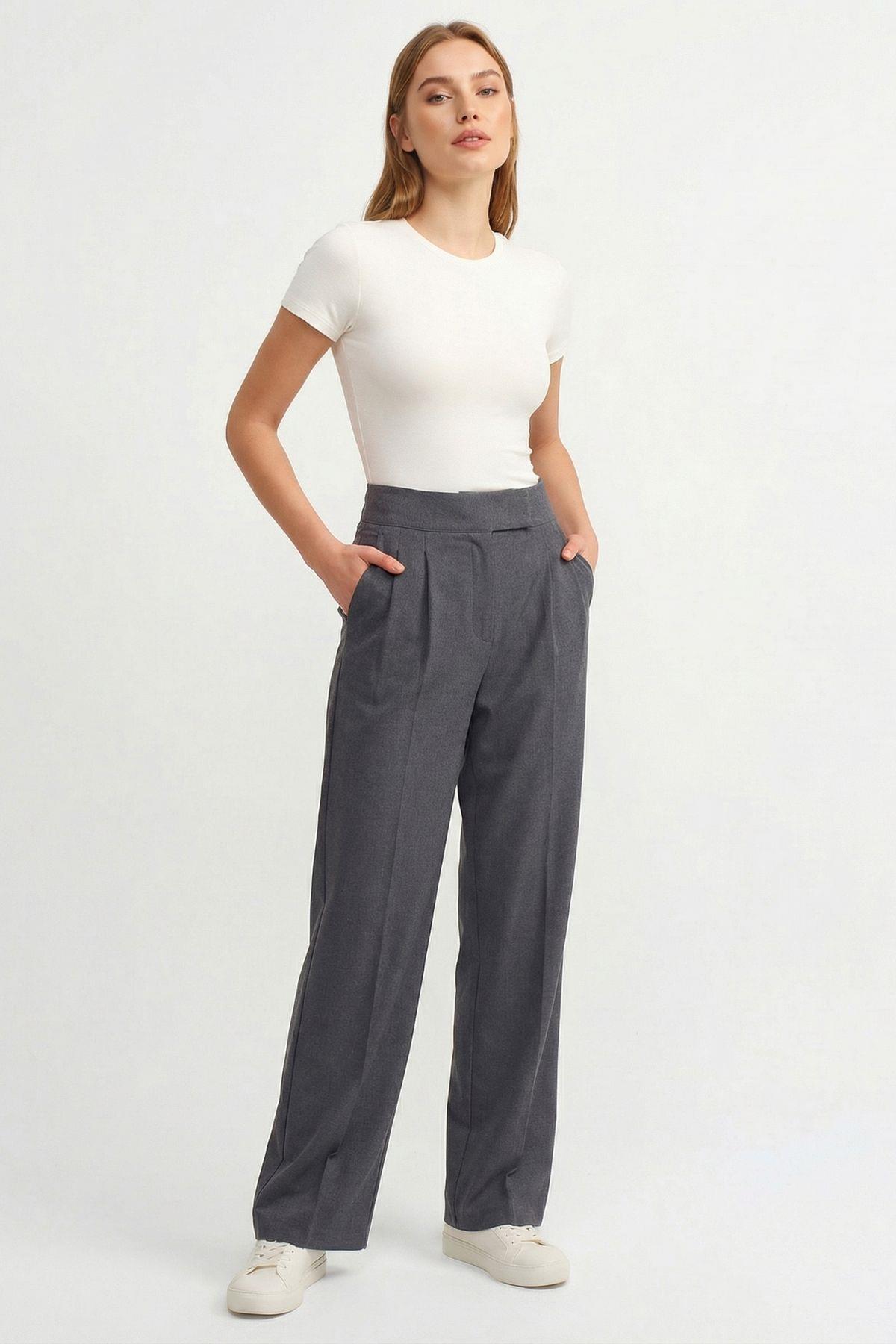 8421A Kemer Detay Palazzo Pantolon Gri - RAYS 8421A Kemer Detay Palazzo Pantolon Gri - RAYS (1)