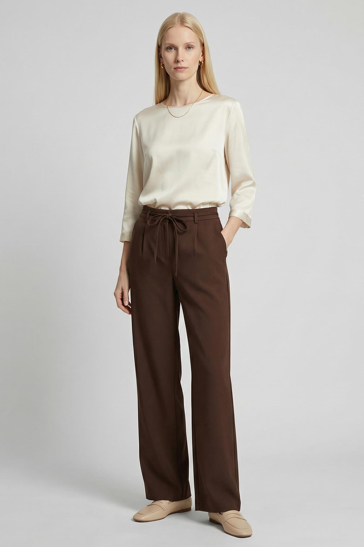 8411A Bağcıklı Palazzo Pantolon Acı Kahve