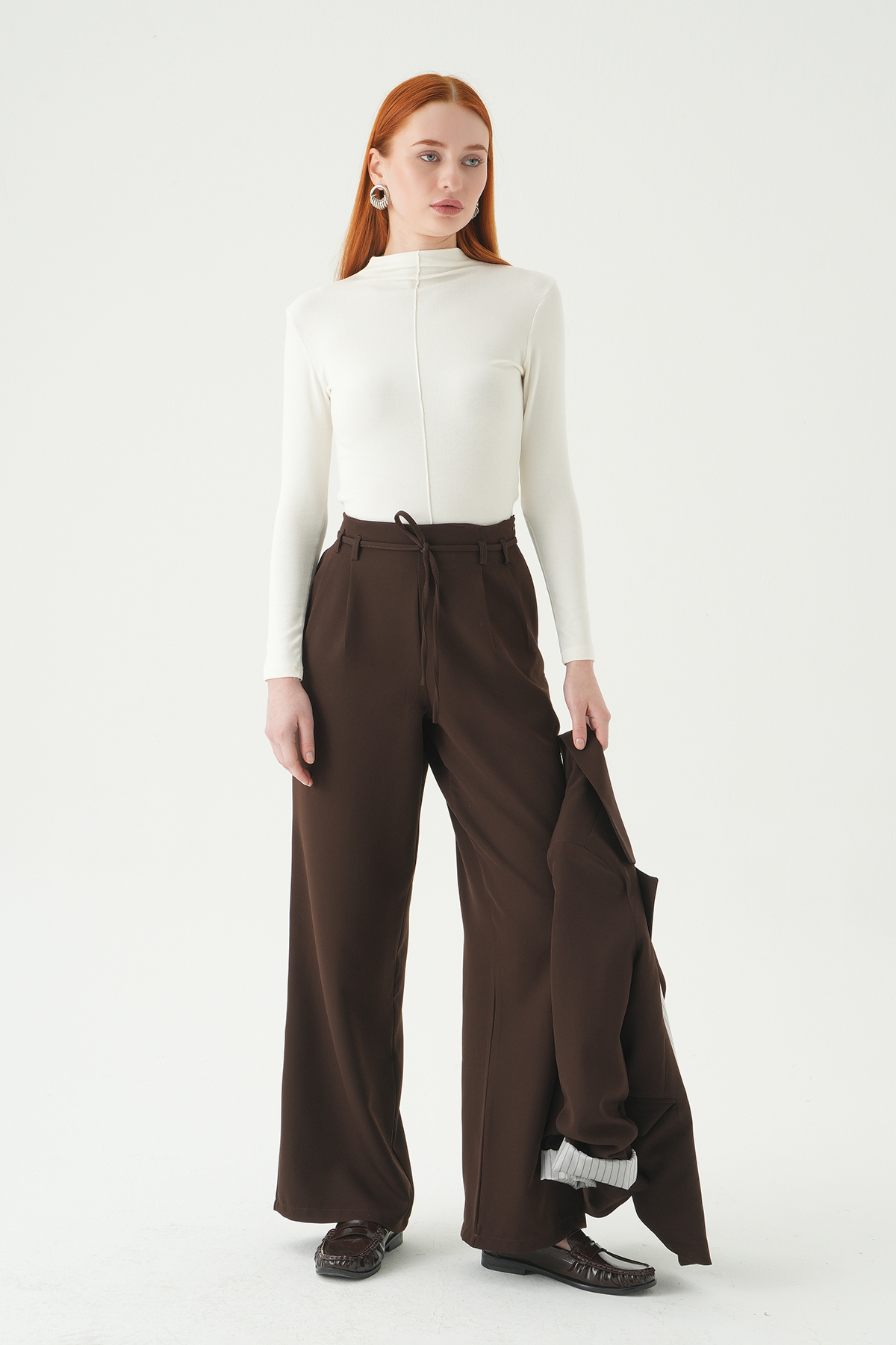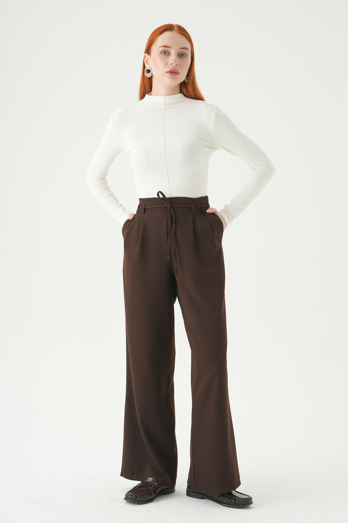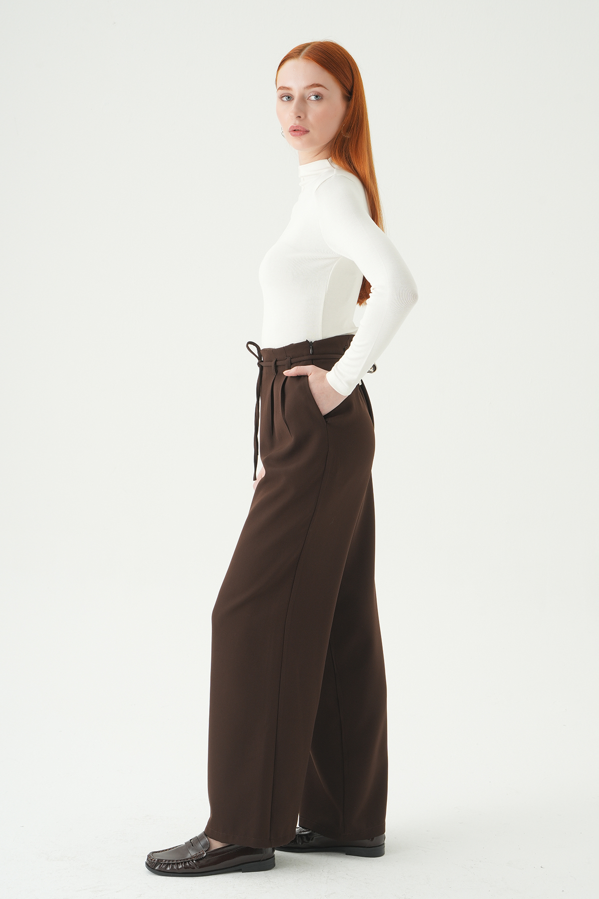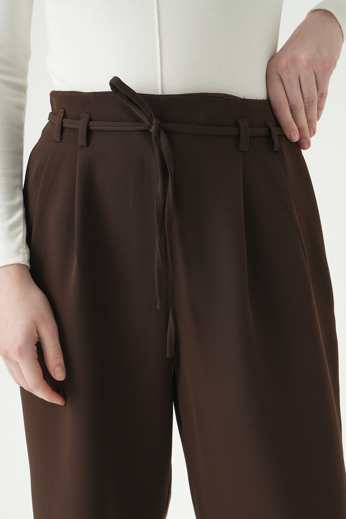 Acı Kahve Bağcıklı Palazzo Pantolon 8411A