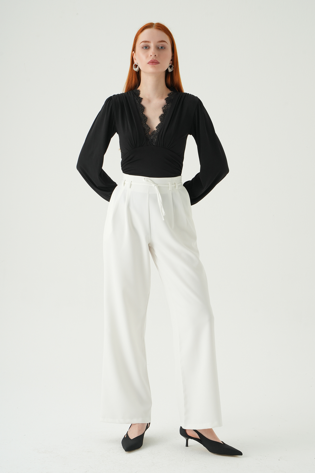 Ekru Bağcıklı Palazzo Pantolon 8411A
