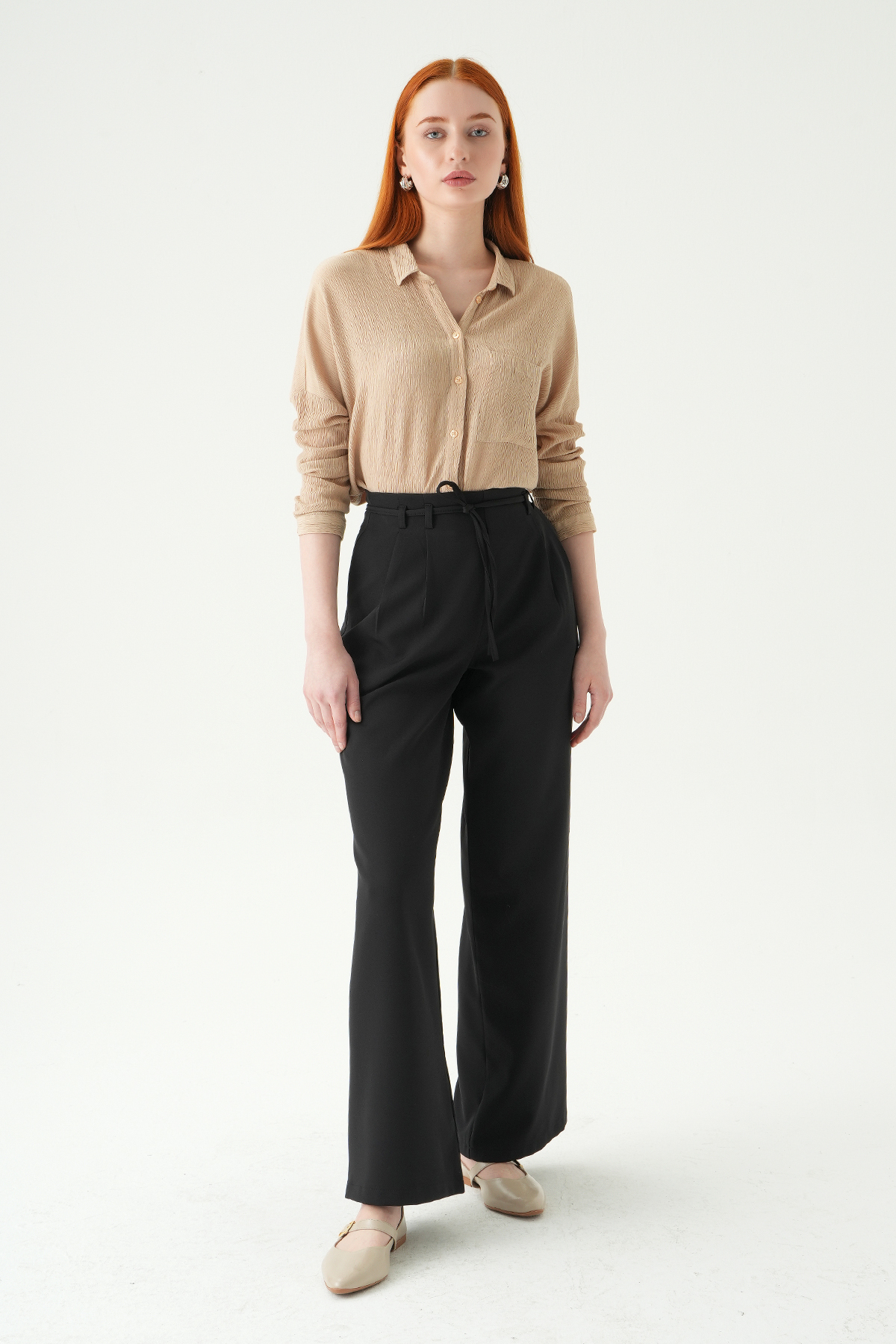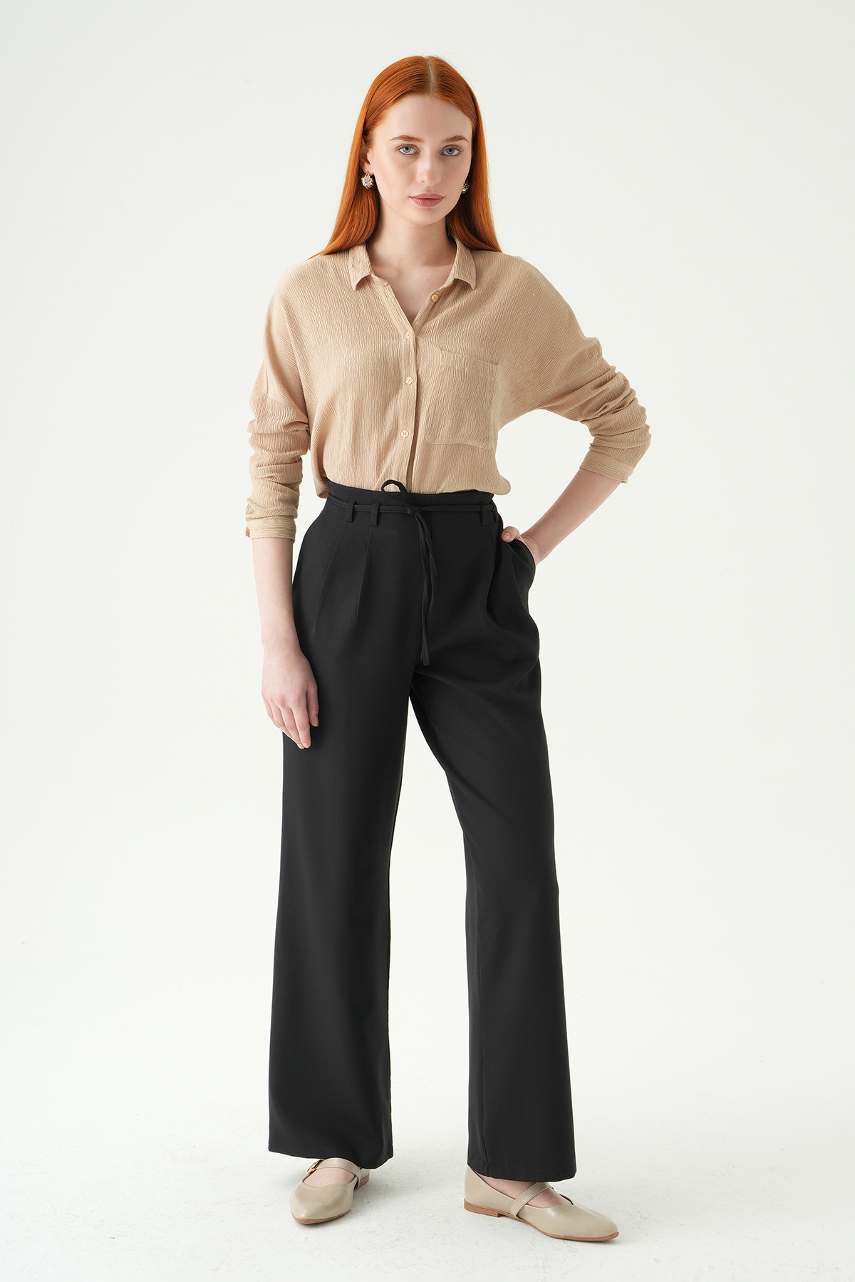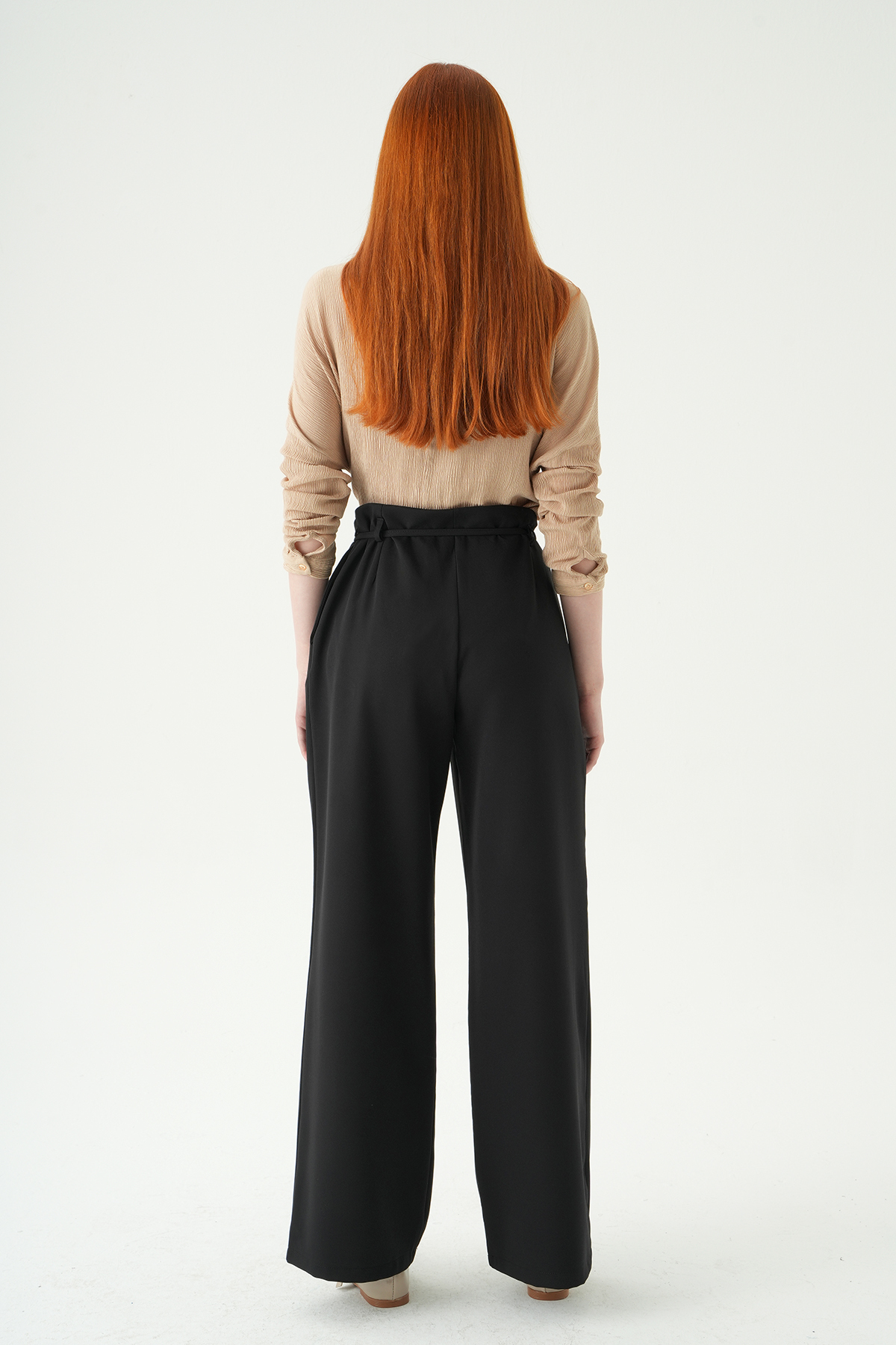 Siyah Bağcıklı Palazzo Pantolon 8411A