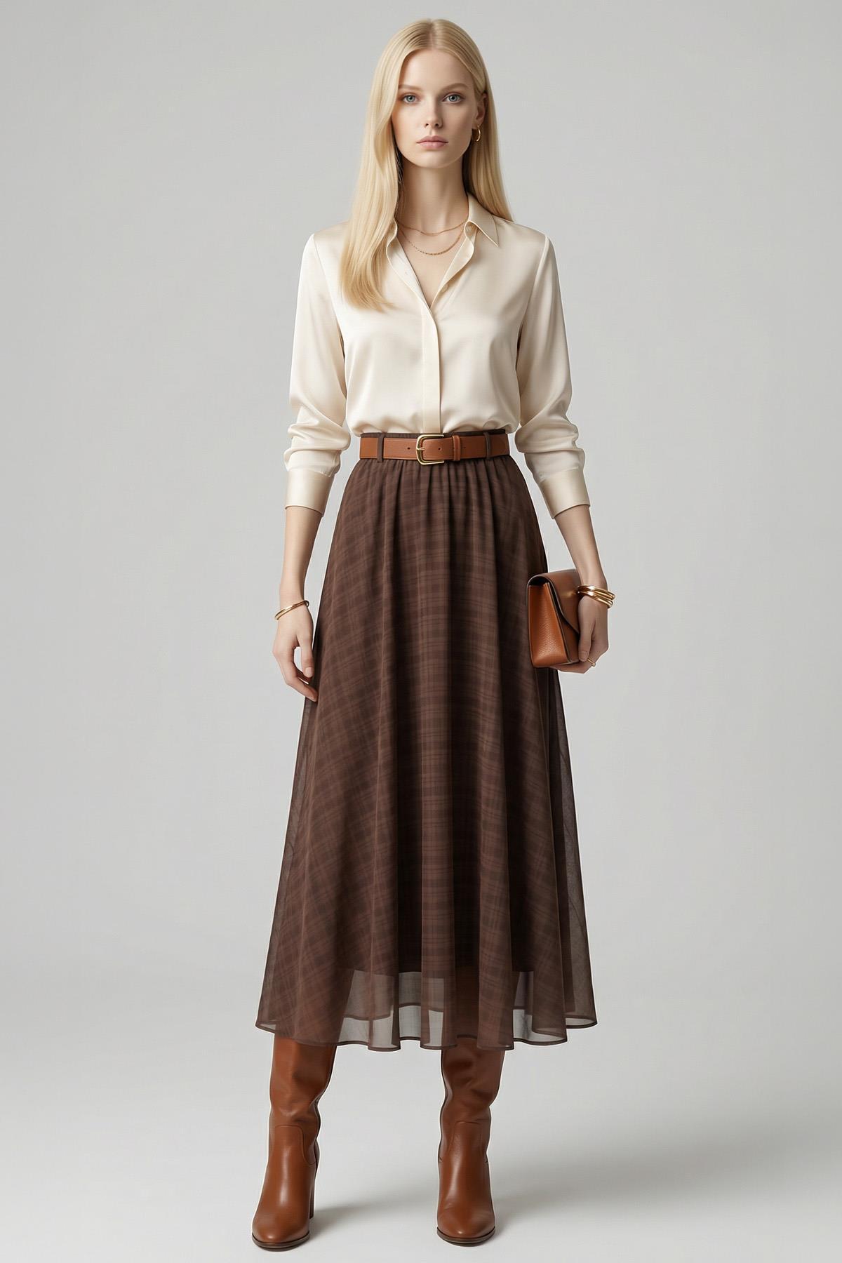 8468A Ecose Desen Tüllü Etek Kahve - RAYS 8468A Ecose Desen Tüllü Etek Kahve - RAYS (1)