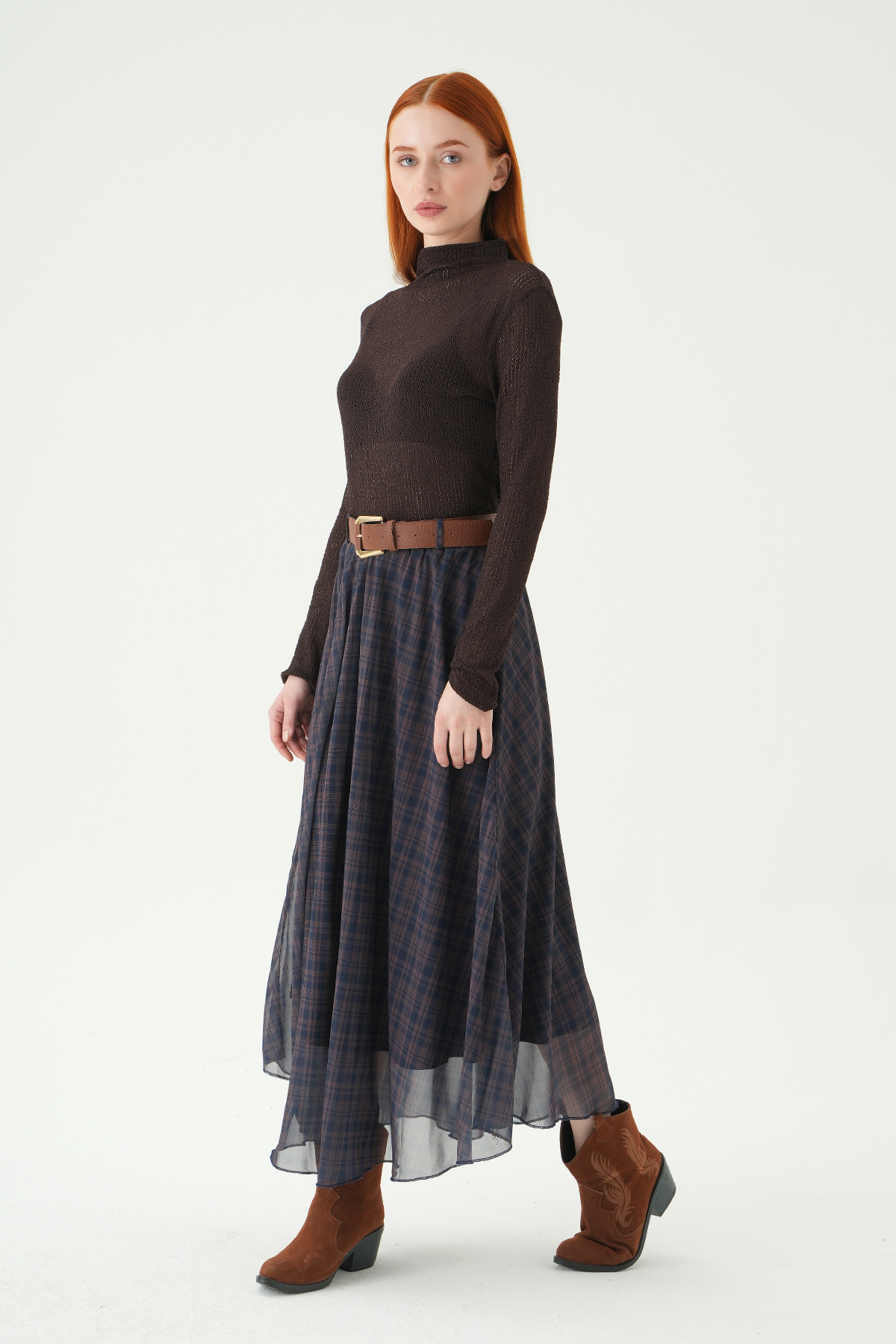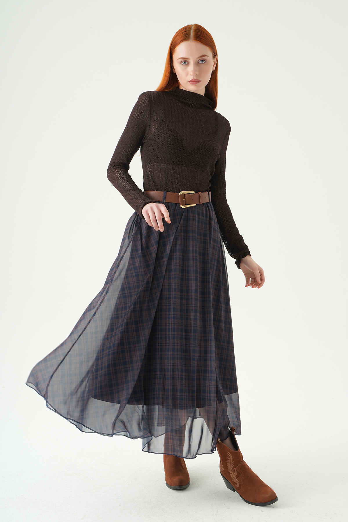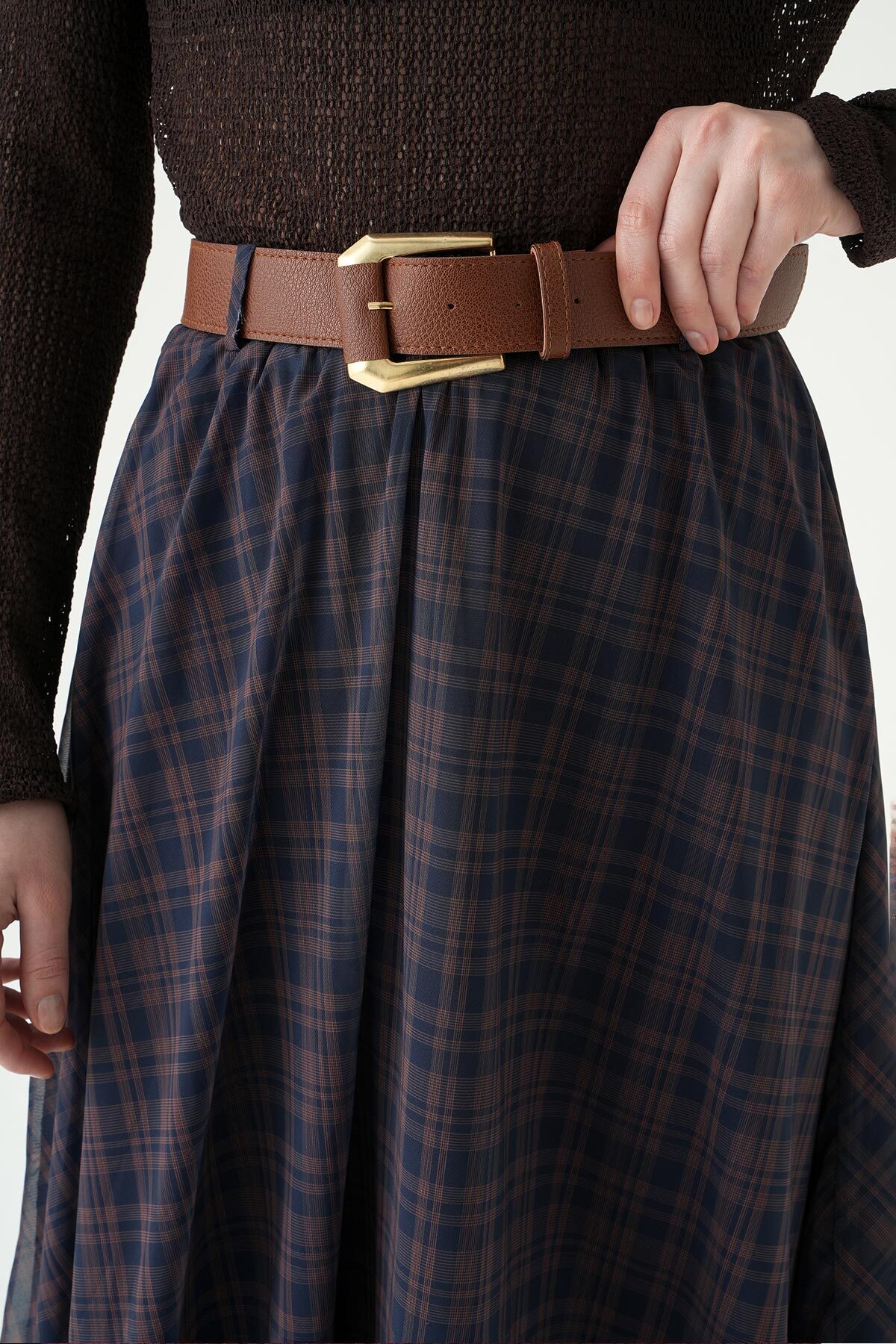 Acı Kahve Desenli Kemerli Etek 1344 - RAYS
