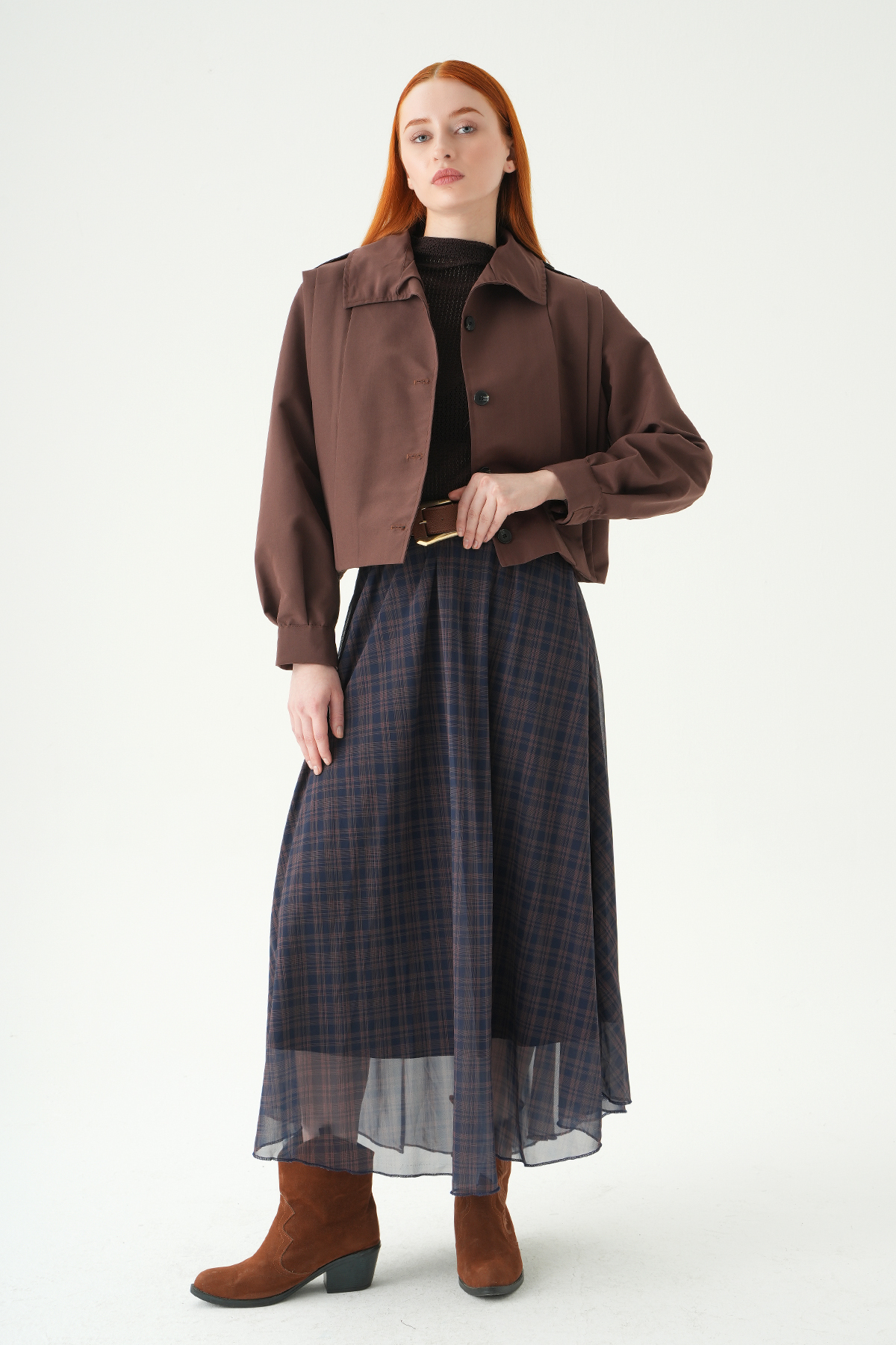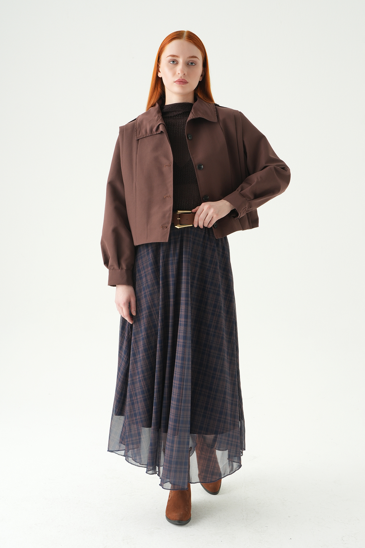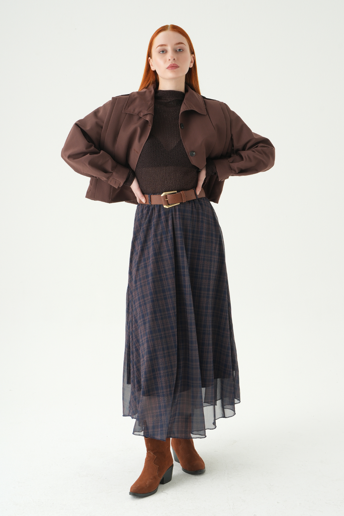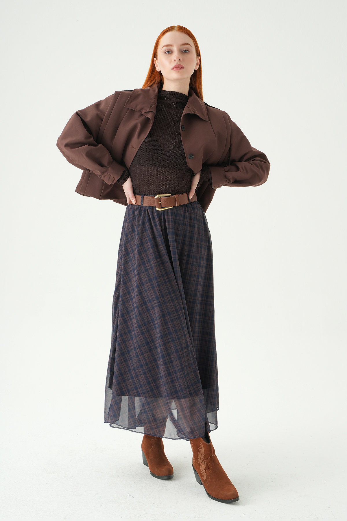 Acı Kahve Desenli Kemerli Etek 1344 - RAYS